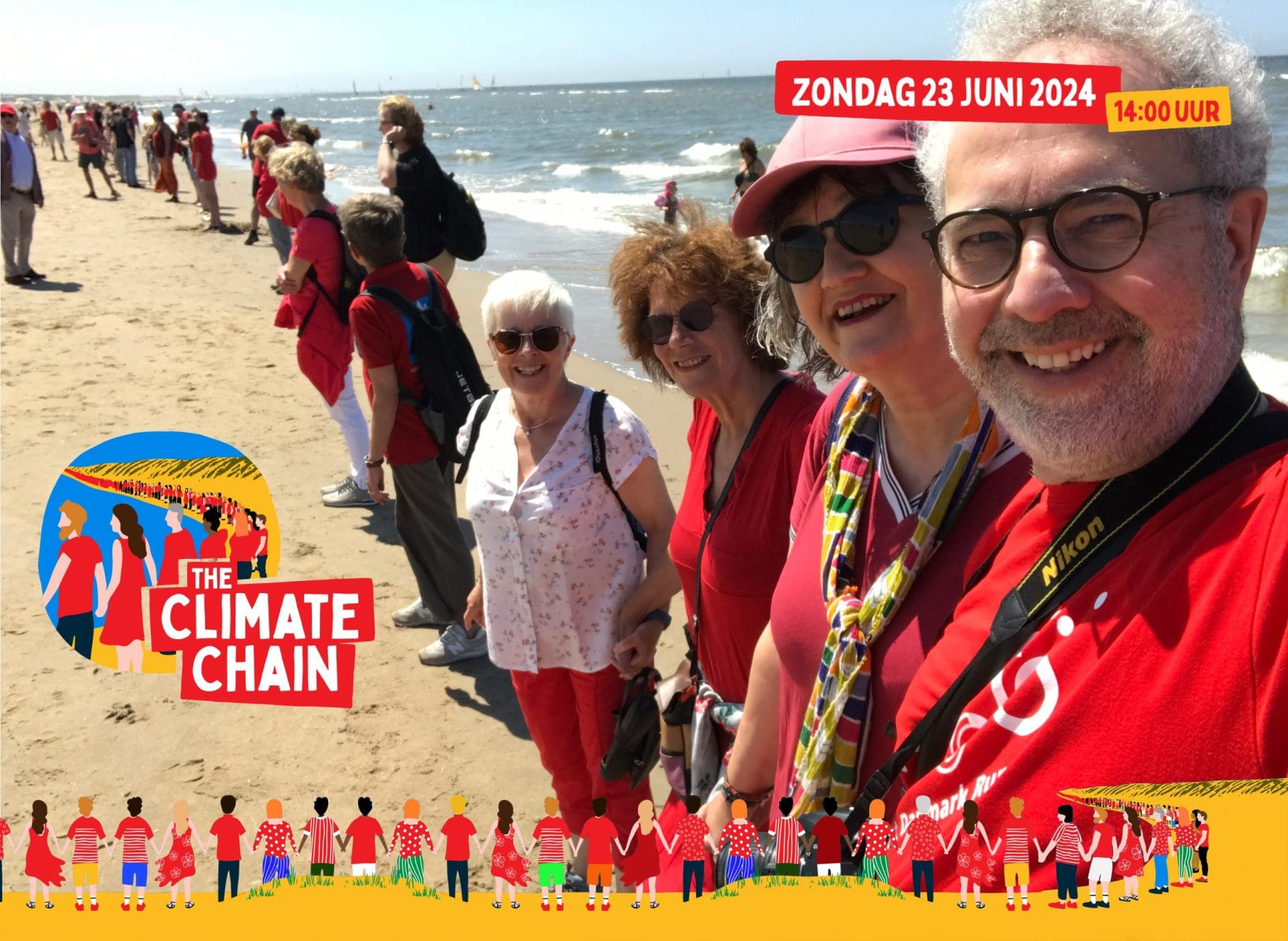 De Climate Chain is symbolisch roodgekleurd. Hiermee geven de deelnemers de rode lijn aan ‘tot hier en niet verder’. Verslaggever Nick Vink ging langs bij de klimaatactie en sprak met badgasten en deelnemers: