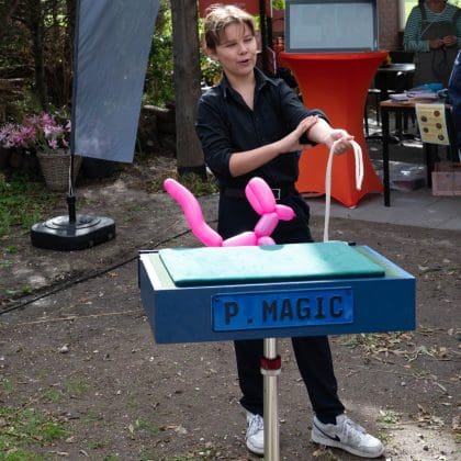 De sfeer werd versterkt door acts als Thea en Theo, die optraden met hun wandelende schilderijlijst en de Live Fruitmachine.