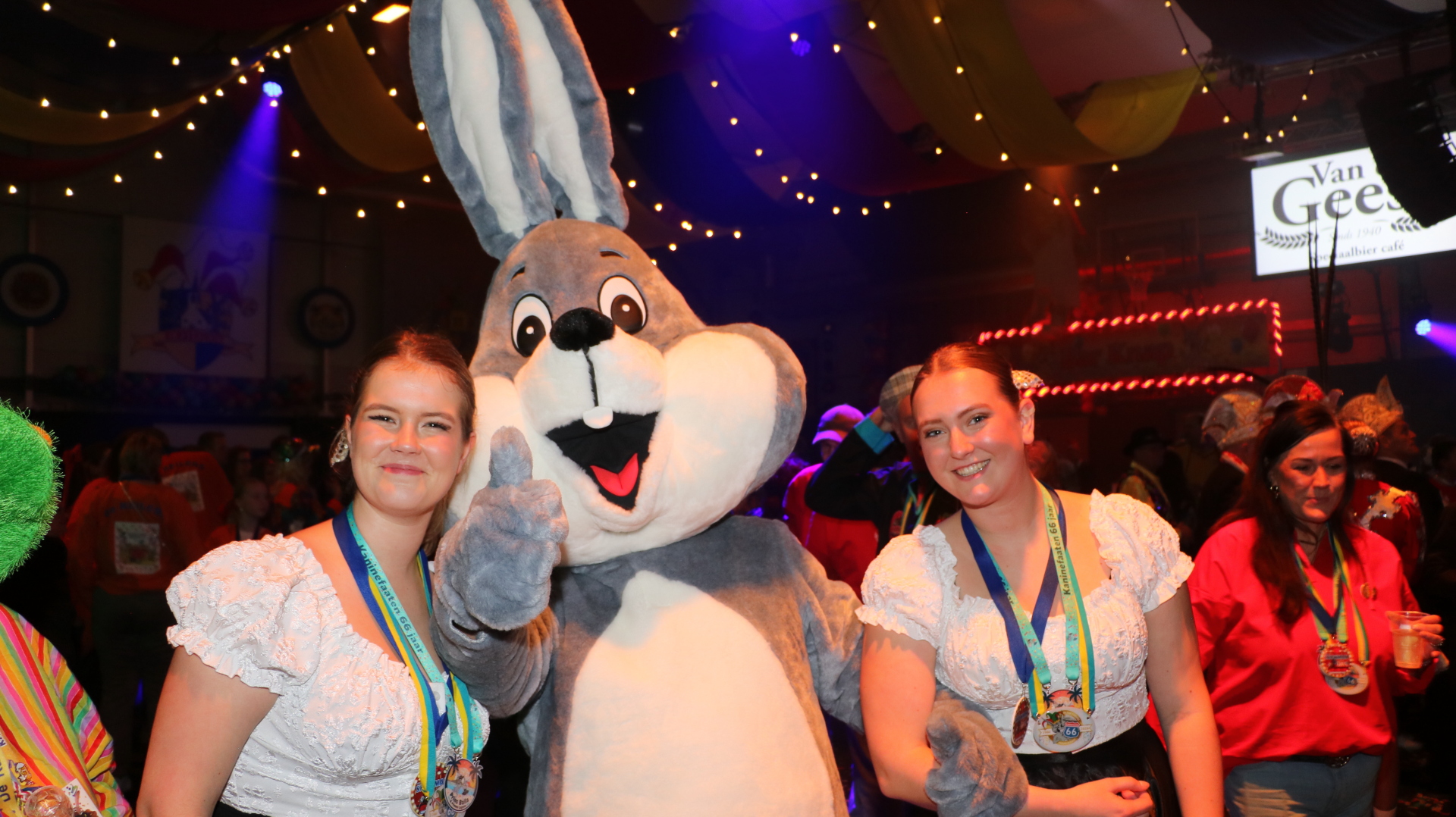 Om 16.30 uur volgde de officiële entree van de volledige carnavalsvereniging De Kaninefaaten. Na de openingswoorden van Prins Baila en voorzitter Richard van den Berg barstte het feest los. Het programma was goed gevuld met muziek en optredens van onder meer de dansmariekes, de Koetillers, Nar Gerrit Heen en Weer, Gebroeders Rossig en Los Genietos. Het hoogtepunt van de avond was een optreden van Jan Biggel, bekend van het nummer ‘Mijn moeder zeej nog’.