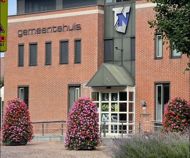 Noordwijk – De deur van het Noordwijkse gemeentehuis is zaterdagavond beklad met de tekst ‘Geen AZC’. De tekst is inmiddels verwijderd. De actie heeft te maken met een tijdelijke asielzoekersopvang aan de Achterweg in Noordwijk. De gemeenteraad gaat daar in september over praten. Er is nog veel onbekend over de daadwerkelijke invulling van de plannen.