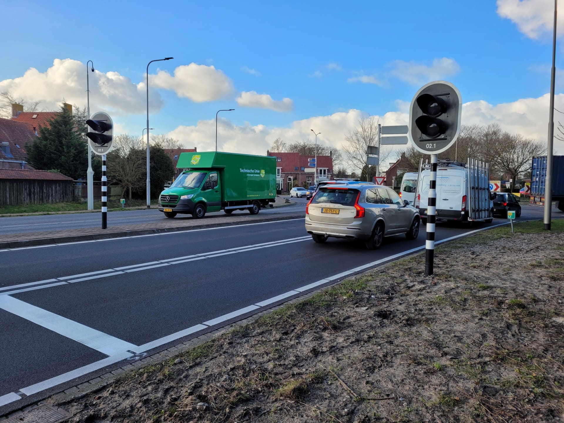 Sassenheim – De doseerlichten bij de rotonde N208/Parklaan/W. Warnaarlaan in Sassenheim blijven staan. De lichten zorgen ervoor dat bewoners van de Vogelbuurt makkelijker hun wijk uit kunnen komen. De provincie Zuid-Holland heeft in 2025 een praktijkproef gedaan om te kijken of de verkeerslichten helpen bij het invoegen op de drukke rotonde.