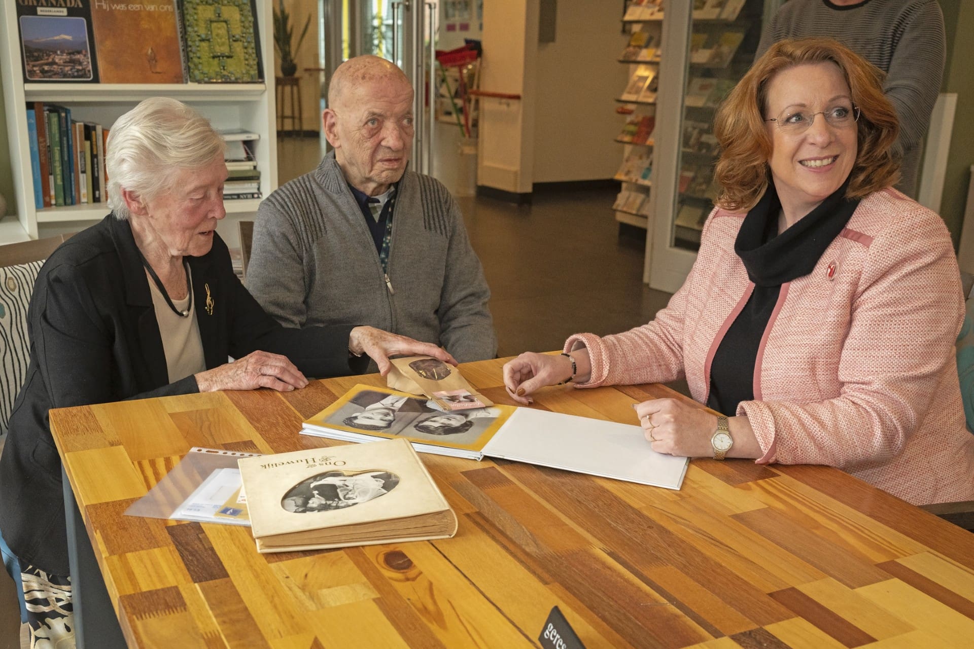 Gezamenlijk werd koffie gedronken en uiteraard mocht een kijkje in het trouwalbum van 60 jaar geleden niet ontbreken.