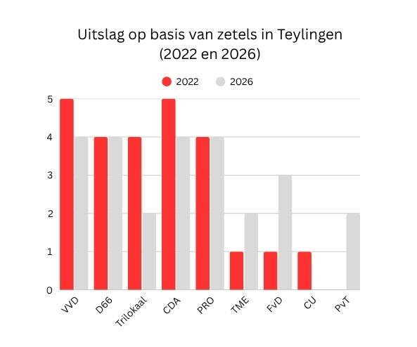 De partijen in Teylingen zijn verdeeld over een totaal van 25 zetels. Dat betekent dat er 13 stoelen nodig zijn voor een meerderheid in de raad. Het is aan verkenners Edith Alkemade (raadslid voor D66) en Petra Habets, adviseur en procesbegeleider in het lokaal bestuur, om de opties voor een nieuwe meerderheid de komende periode te onderzoeken.