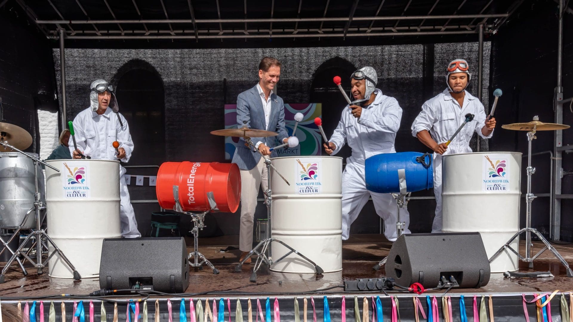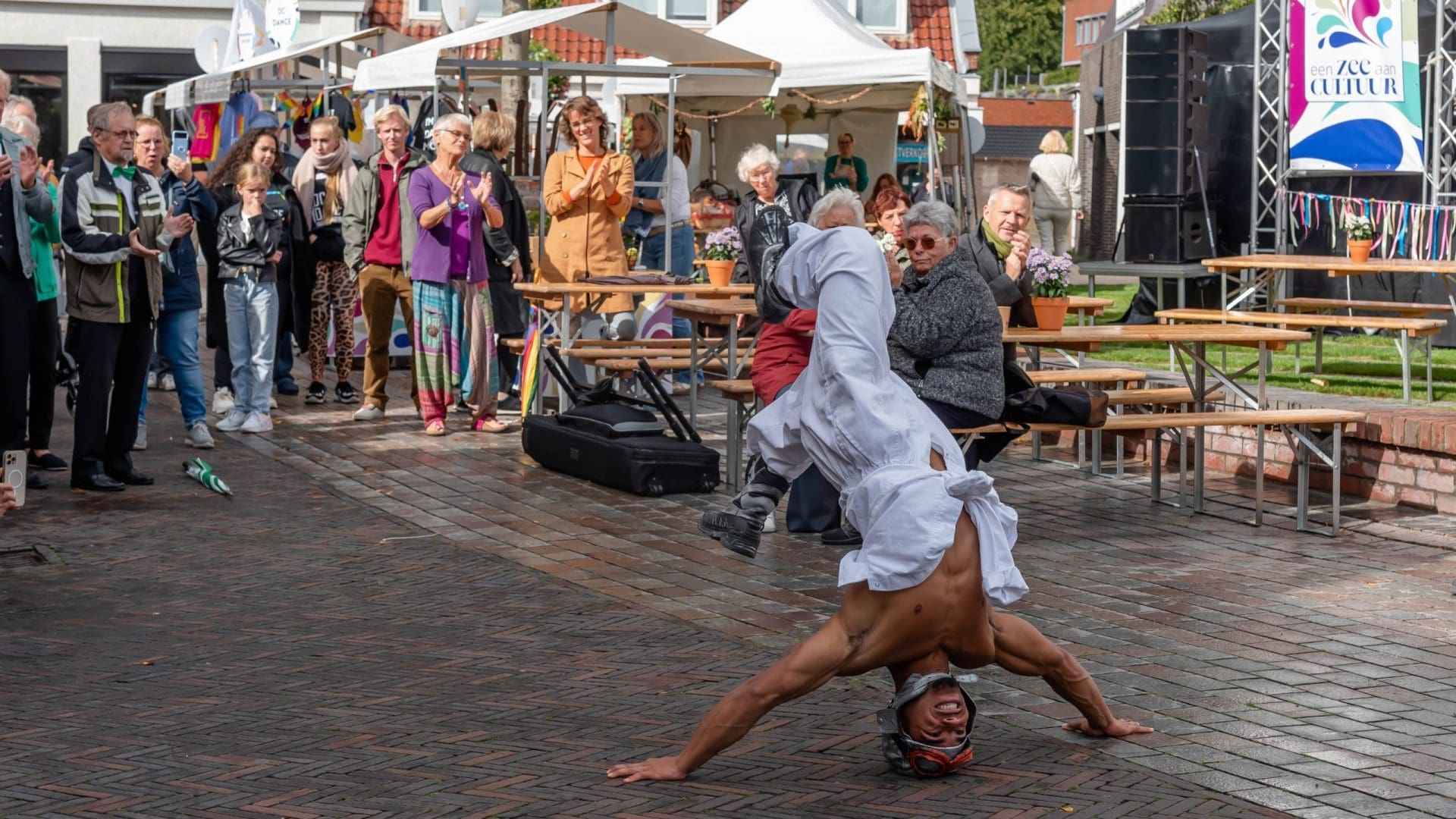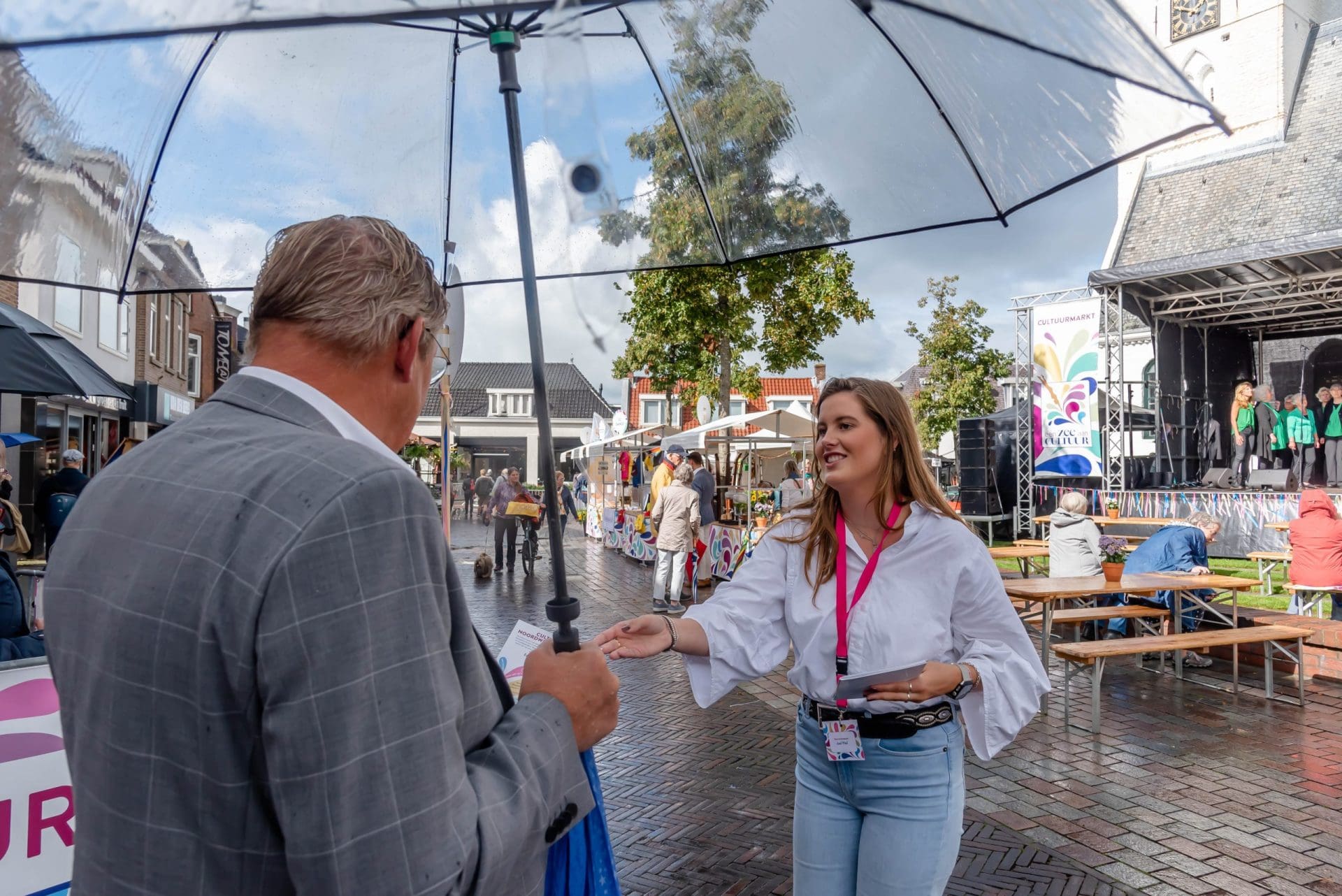 ‘Cultuur inspireert, verbindt, maar het geeft ons ook ontzettend veel plezier en we genieten er ongelofelijk van’, geeft wethouder Roberto Ter Hark mee in zijn speech. Terwijl de zon zich heel even laat zien opent hij de culturele markt.