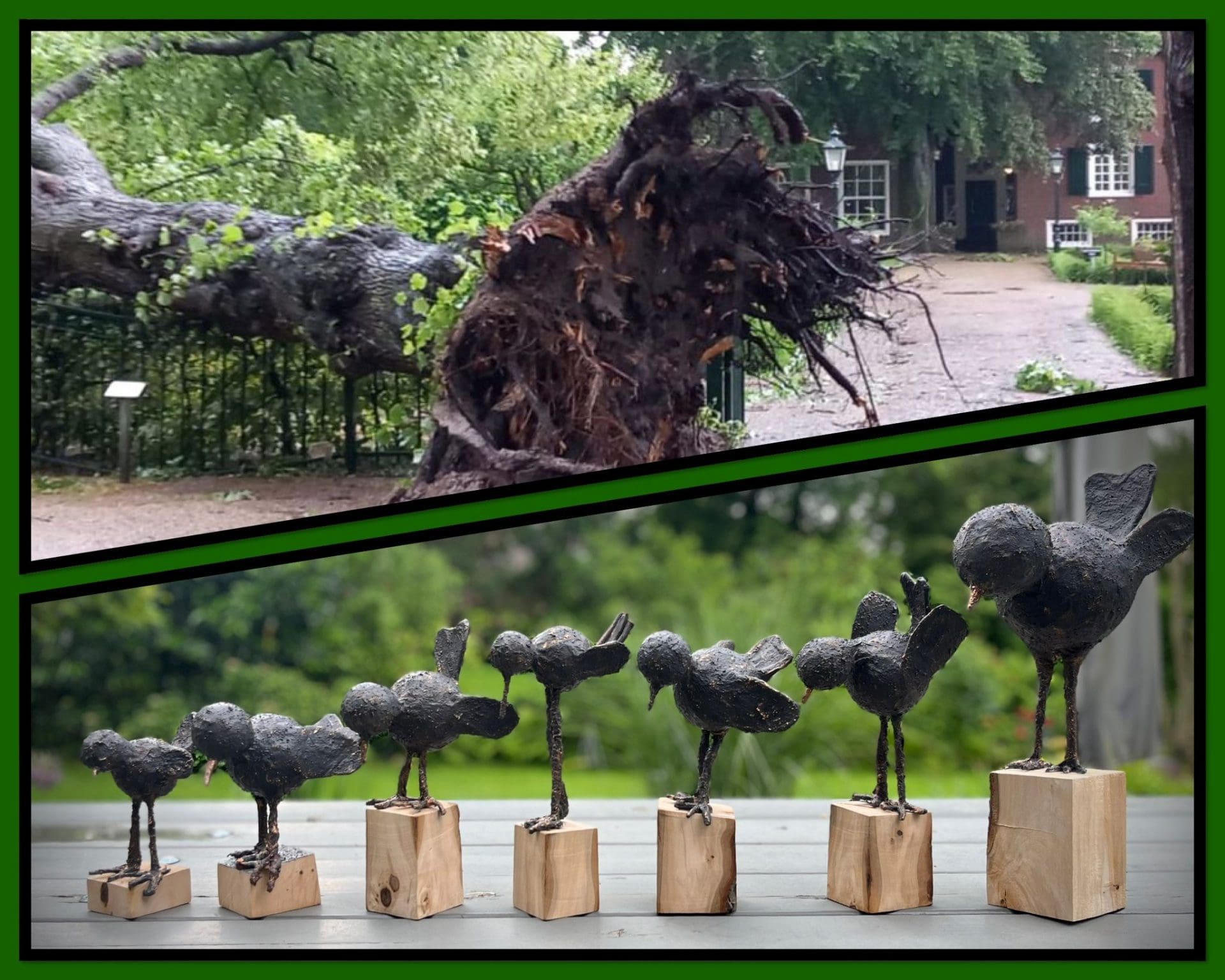 Voorhout – Esther Kortekaas, kunstenares uit Voorhout, heeft Boerhaavebirds gemaakt uit het hout van de boom in de Boerhaavetuin die is omgewaaid tijdens de storm Poly in juni 2023. De kunstwerkjes zijn via social media verkocht en de opbrengst wordt op 5 juli gedoneerd aan de Boerhaavetuin. Esther zegt dat het om een flink bedrag gaat.