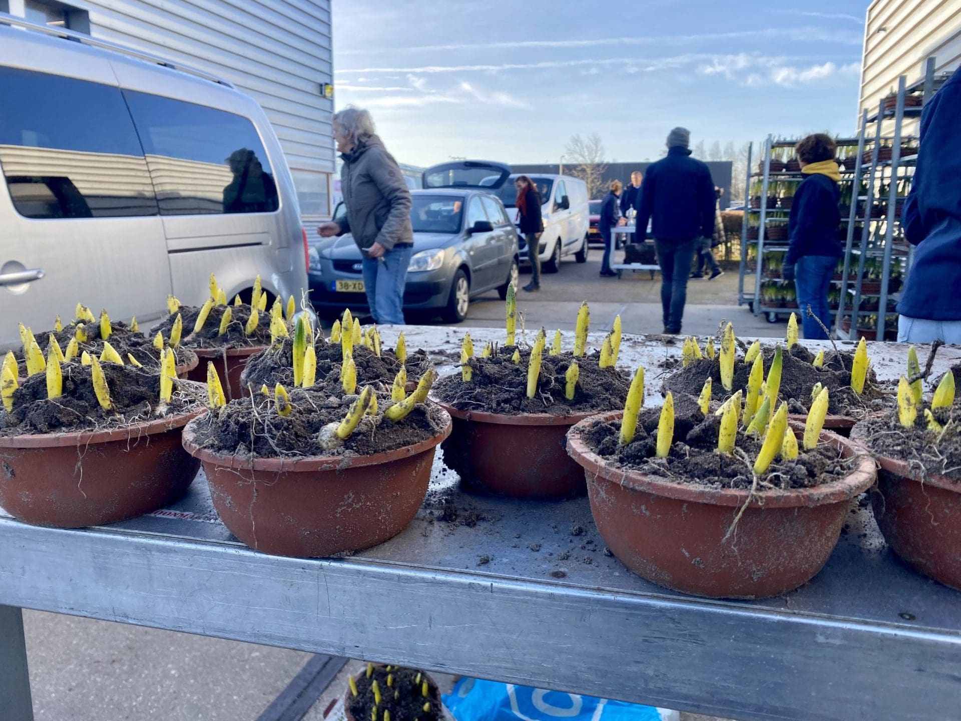 ‘De mensen krijgen elf potten mee naar huis’, vertelt voorzitter Ronald van Loon. ‘Twee potten narcissen, drie potten tulpen, drie potten hyacinten en drie potten bijzondere bolgewassen. En die potten moeten ze in een huiselijke omgeving zo goed mogelijk in bloei trekken.’ Over een kleine vier weken moeten alle deelnemers de uitgekomen bloemen inleveren voor de tentoonstelling. ‘Iedere deelnemer heeft inleverplicht. Ook al heb je er niks van gebakken, je moet ze inleveren.’