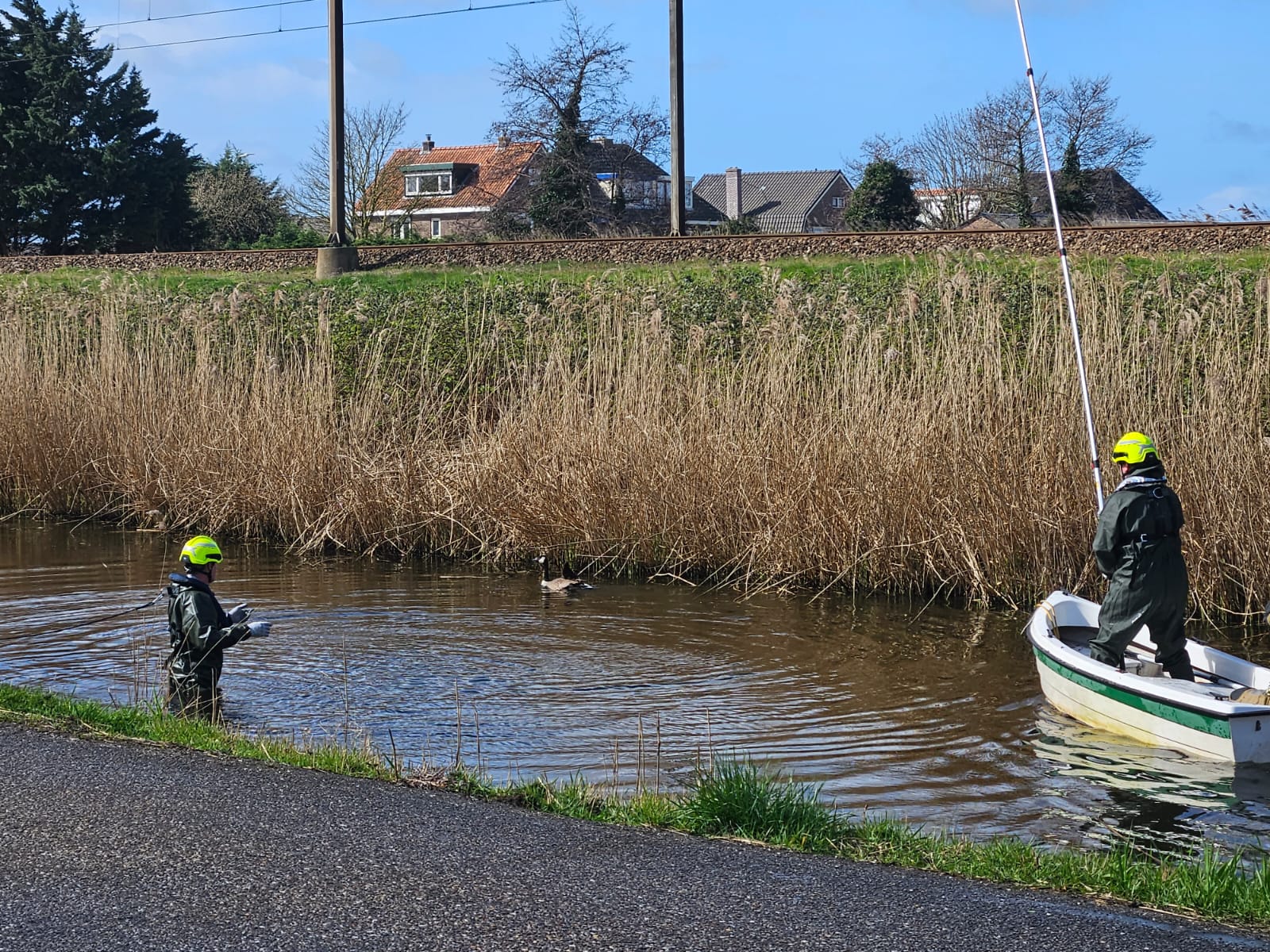 De brandweer kwam samen met de dierenambulance ter plaatse. Brandweerlieden trokken waadpakken aan en gingen het water in. Ook werd een boot ingezet om dichter bij de gans te komen.