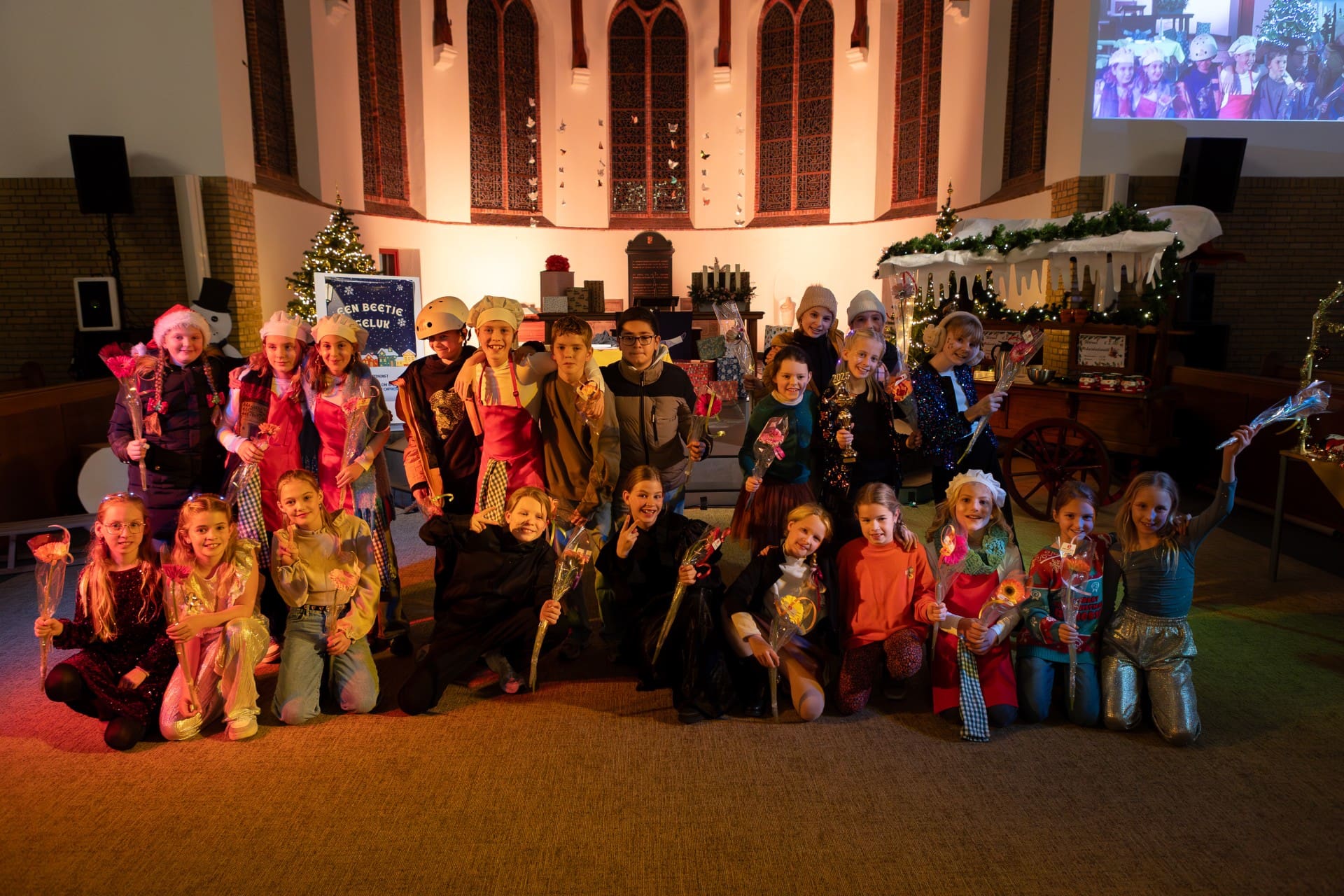 Hillegom – De leerlingen van de twee groepen 7 van basisschool de Giraf hebben zondag geschitterd in de kerstmusical “De koekenbakkers van Caprese”.