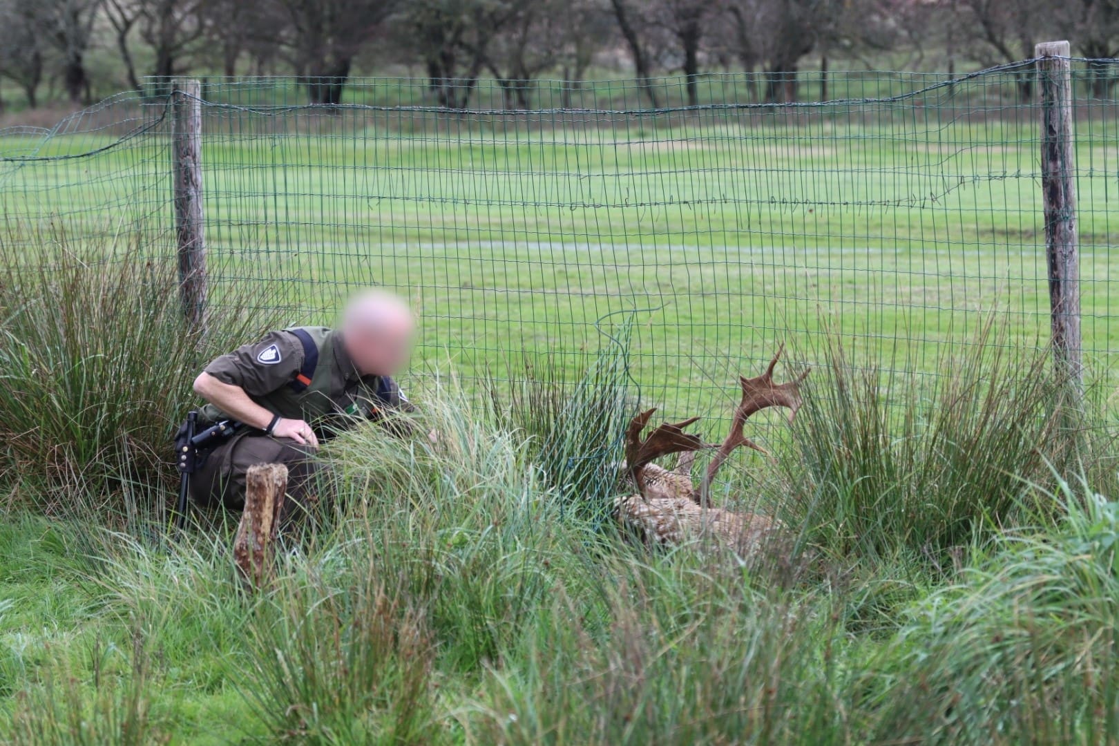 Noordwijk – In het duingebied langs de Vogelaardreef, heeft Staatsbosbeheer donderdagmiddag een hert uit een ingewikkelde situatie bevrijd. Het hert was vast komen te zitten met zijn gewei in een hek.