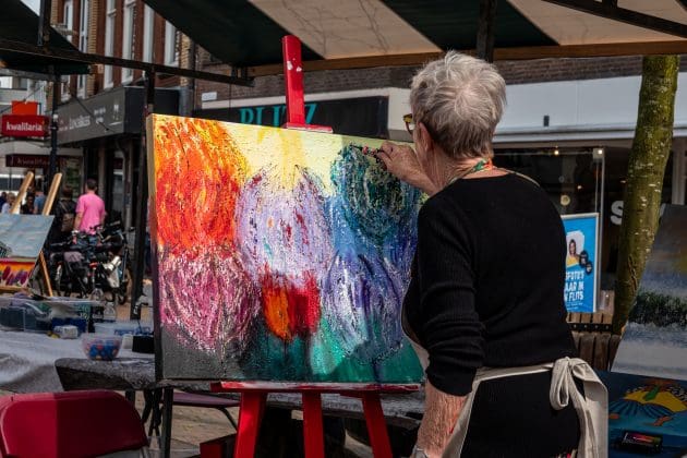 Hillegom – Er was geen Eiffeltoren, maar een Maartenskerk. Maar verder ademde MontMartre in Hillegom zaterdag ook een unieke sfeer. Zo’n 40 kunstenaars toonden hun creaties. Die konden bekeken, maar uiteraard ook gekocht worden. Vaak was er ook uitleg over hoe iets gemaakt was. En de omgeving, in Parijs hebben ze geen Oude Pomp, in Hillegom wel. Kortom: het was weer een geslaagd MontMartre.