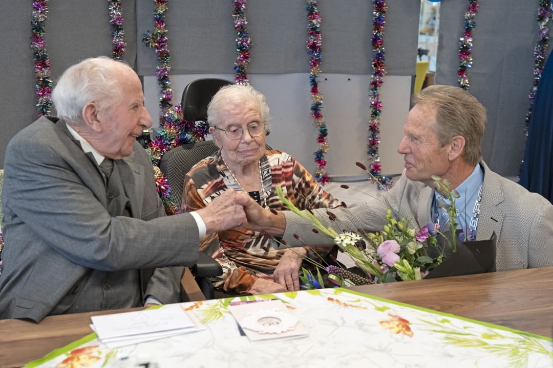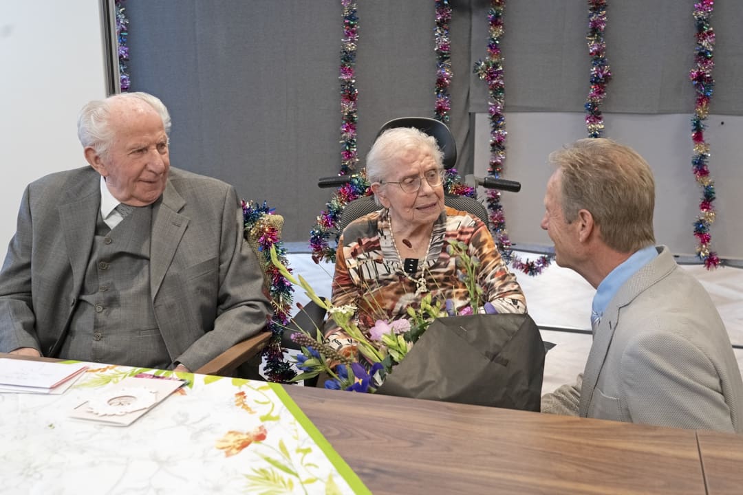 Hillegom – Meneer en mevrouw Teeuwen-Hogervorst zijn zestig jaar getrouwd. Zondag was hun jubileumdag. Het bruidspaar kreeg bezoek van burgemeester Arie van Erk. De burgemeester feliciteerde meneer en mevrouw Teeuwen-Hogervorst met dit mooie moment, waarbij een bos bloemen natuurlijk niet kon ontbreken.