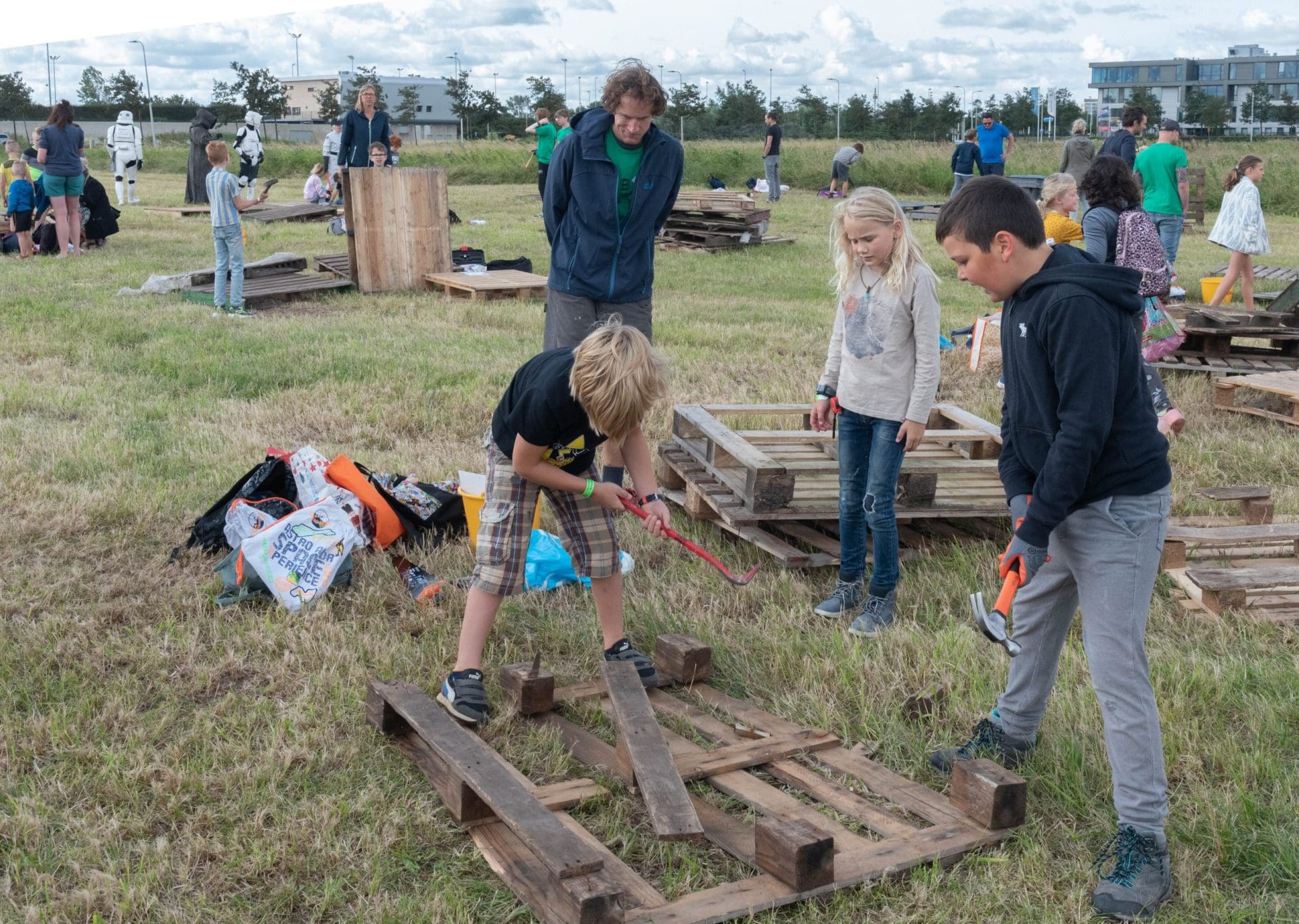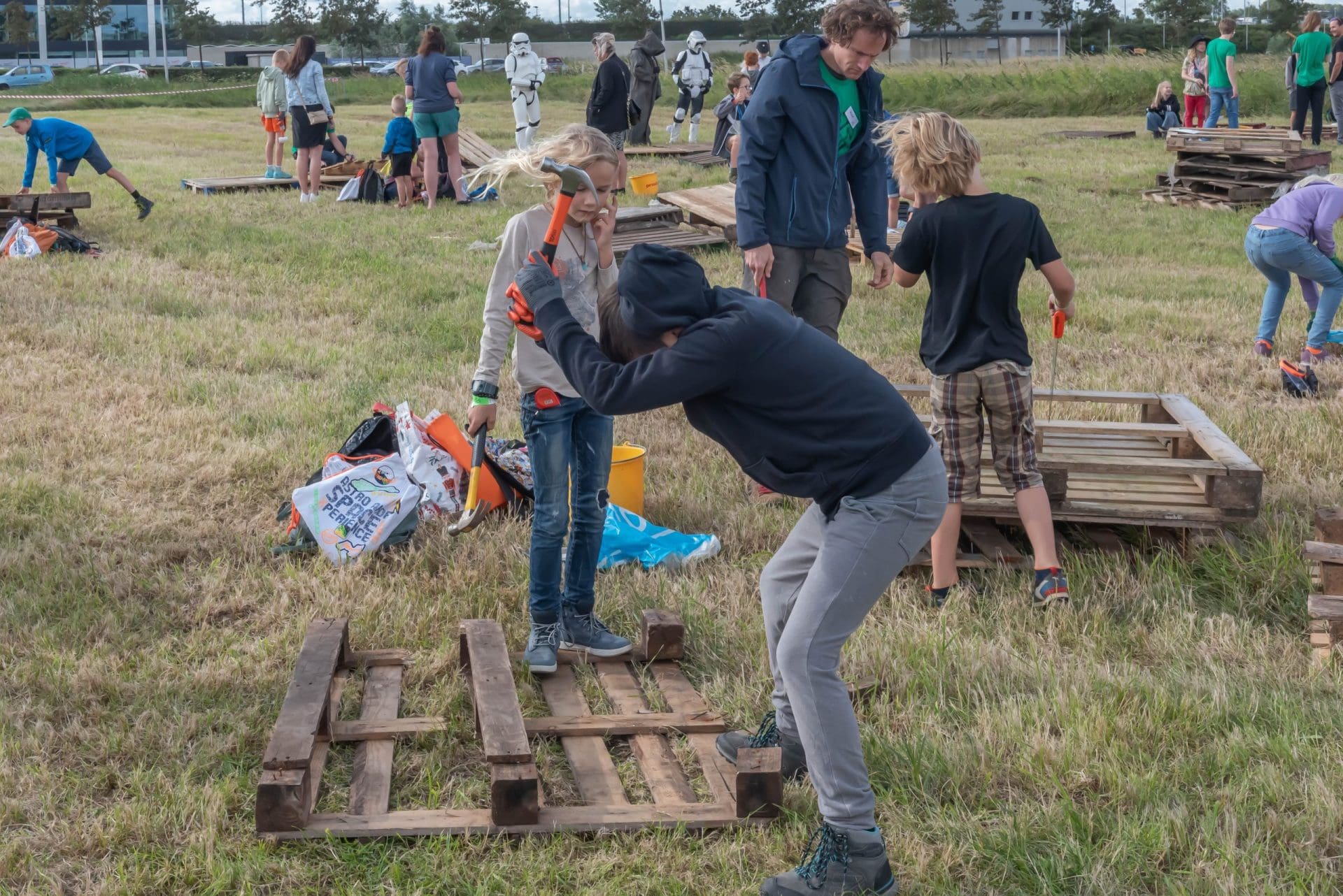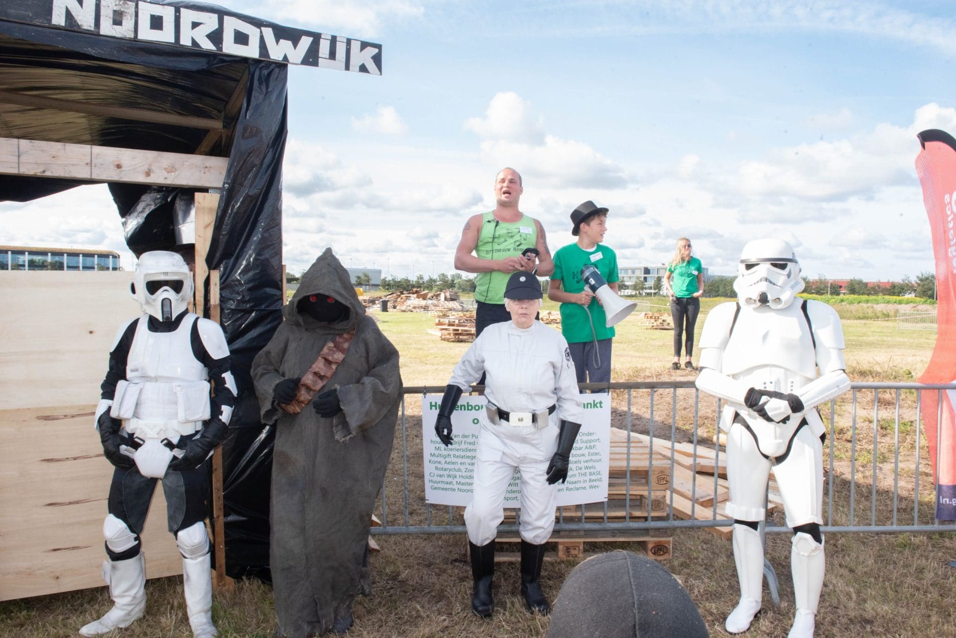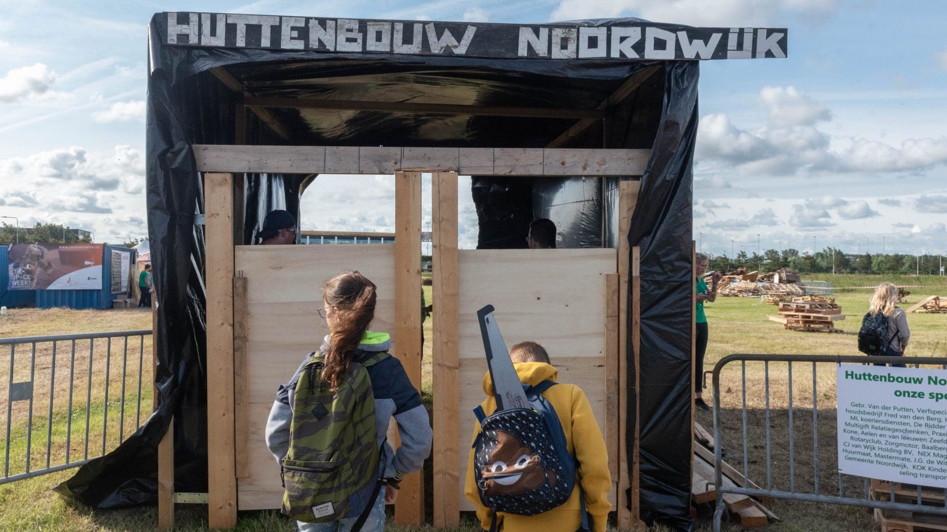 Het thema is “Huttenbouw Noordwijk goes into space”. Het draait dus om ruimteschepen, satellieten en planeten. Om in de stemming te komen werden de kinderen bij de start opgewacht door figuren uit Star Wars. Drie dagen lang wordt er getimmerd, geschaafd, gezaagd en geverfd door kinderen van 6 tot en met 12 jaar.