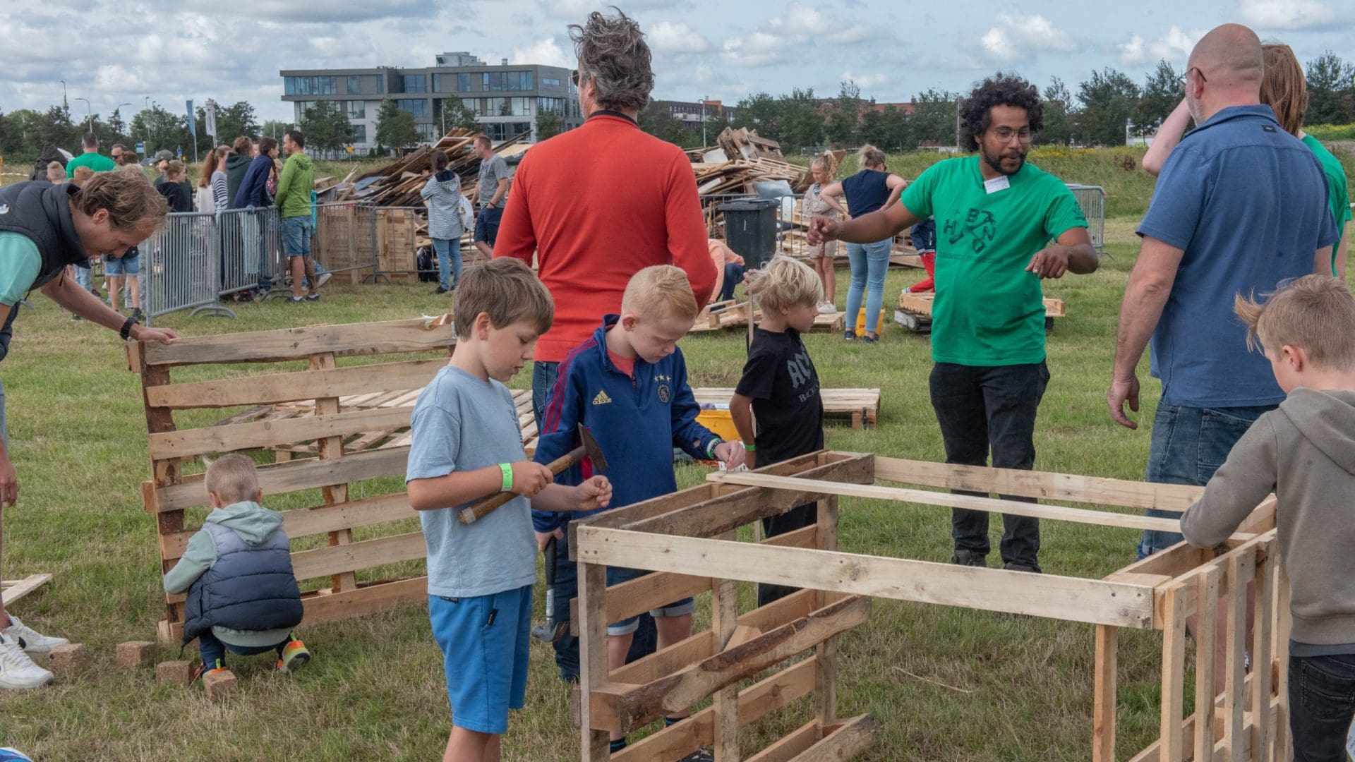 Noordwijk – Geen tijdelijke villawijk wordt er ditmaal gebouwd aan de Eisingastraat. Dit jaar zoeken de kinderen die meedoen aan de Huttenbouw het namelijk in hogere sferen.