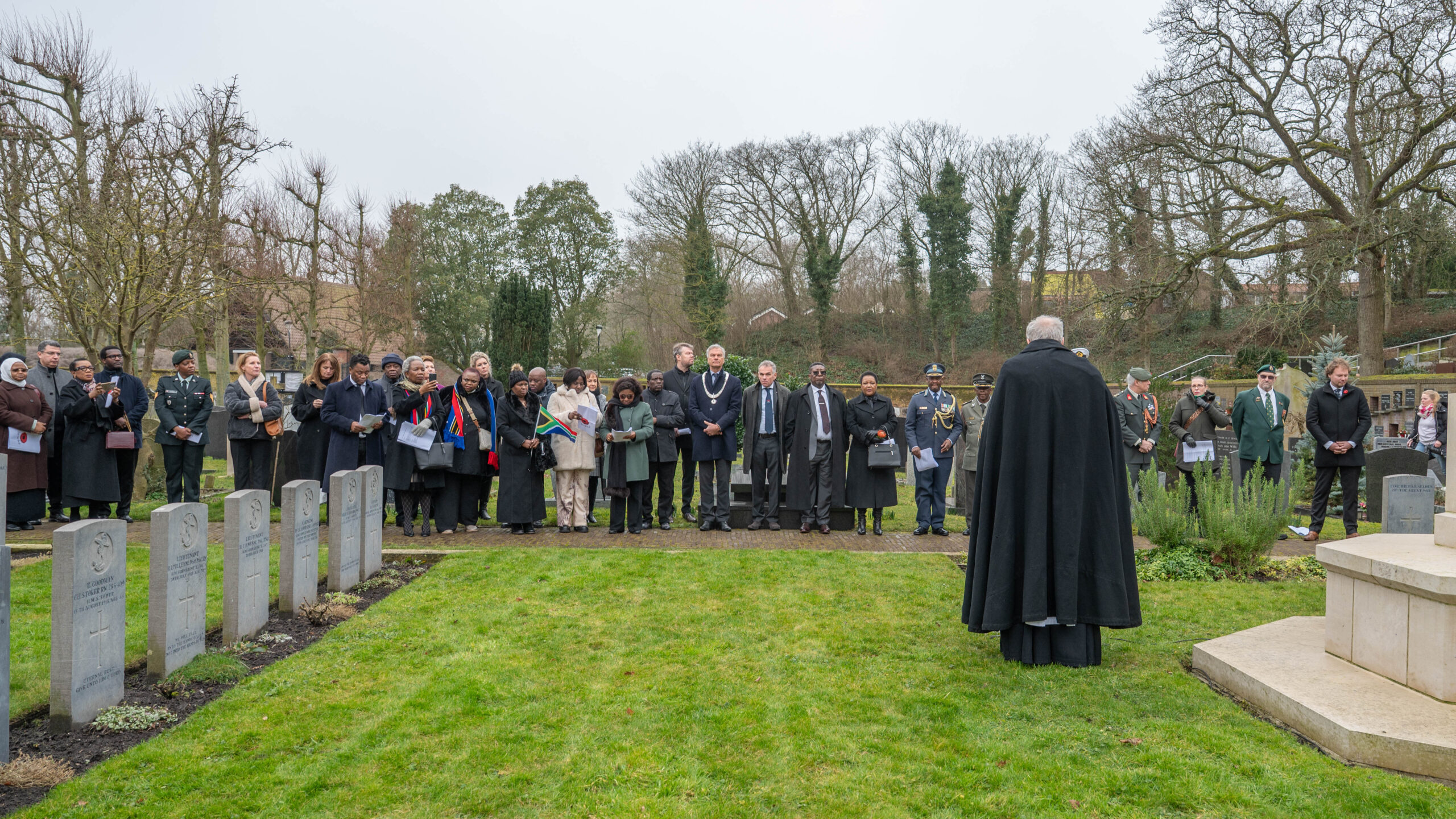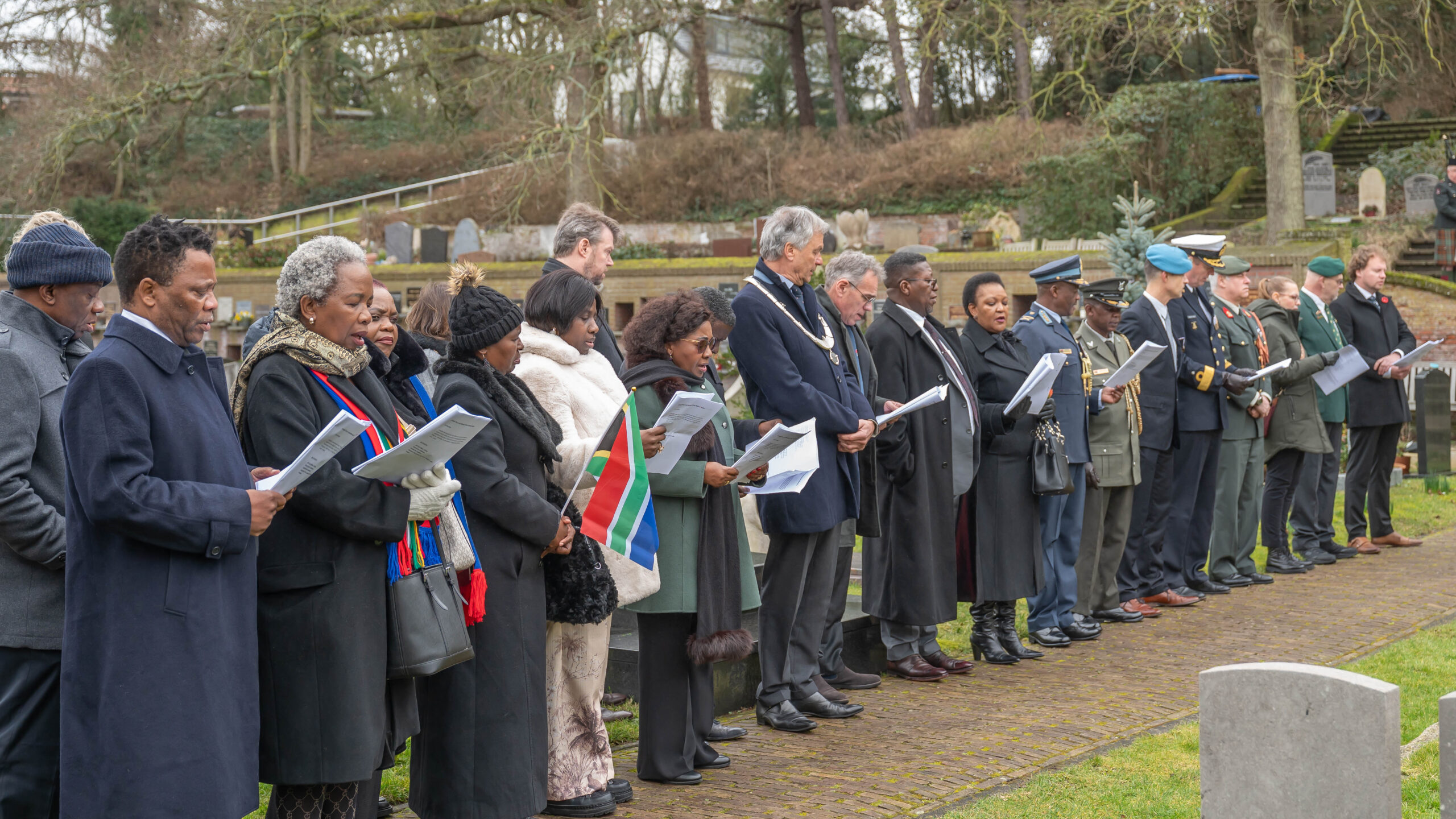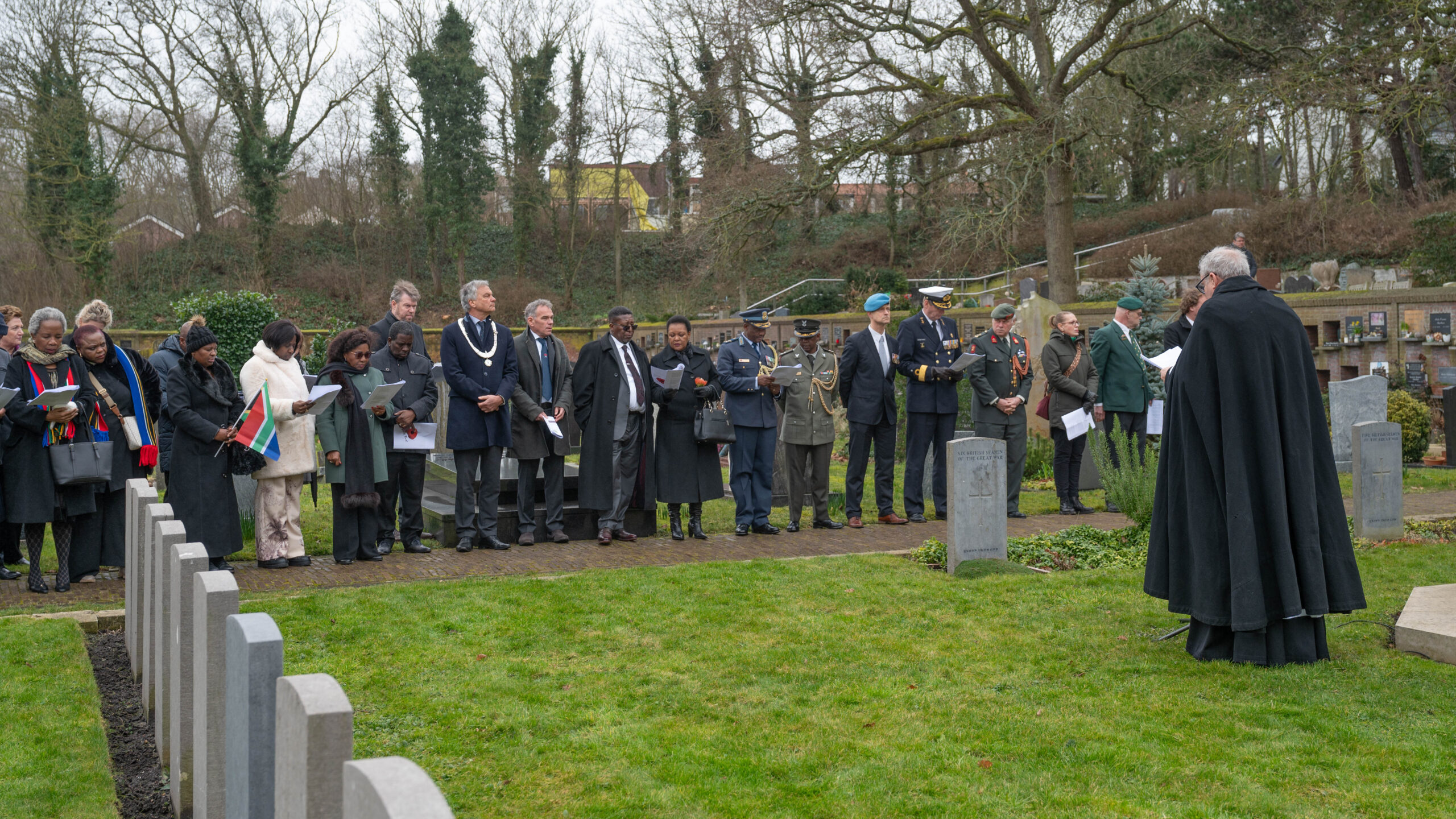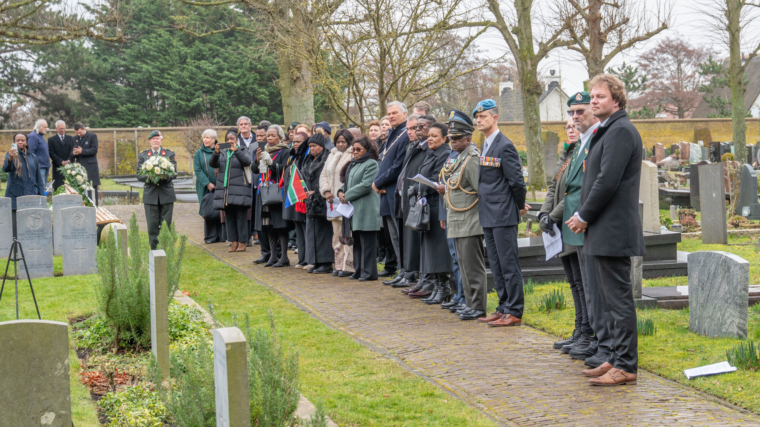Noordwijk – De scheepsramp van het Britse schip SS Mendi is zaterdag herdacht in Noordwijk. De SS Mendi zonk op 21 februari 1917 in de Noordzee, wat meer dan 600 Zuid-Afrikaanse mannen aan boord het leven kostte. Vijf daarvan spoelden aan in Noordwijk en werden begraven op de Algemene Begraafplaats. Sinds 2015 wordt de ramp in Noordwijk herdacht.