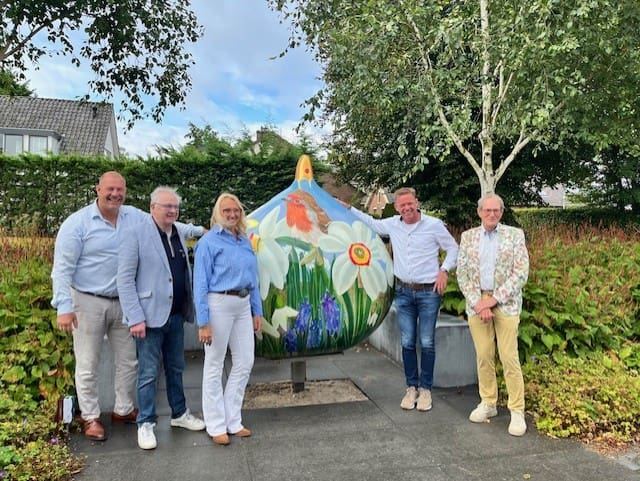 Lisse – Bij het kantoor van Lubbe Lisse is woensdag de Jubileumbol onthuld ter ere van het 125-jarig bestaan van het familiebedrijf. Deze 24e Reuzenbol in Lisse is beschilderd door kunstenares Nicoline de Lijzer.