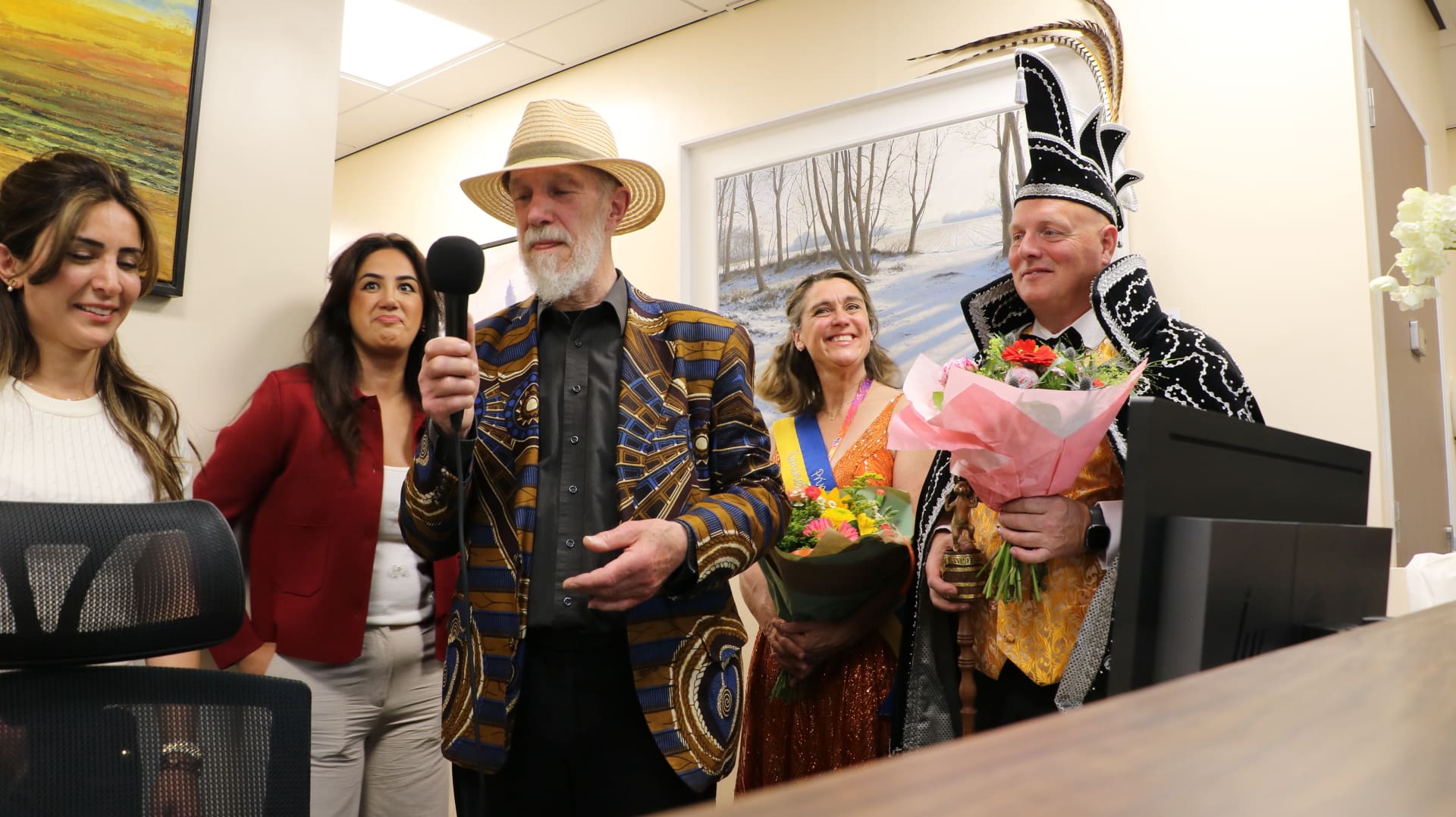 Noordwijkerhout – Schilderijen van Kees Putman en Dora Devilee zijn sinds vrijdag te zien in de tandartspraktijk N&N Dentals in Noordwijkerhout. De twee kunstenaars hebben daar een pop-up galerie ingericht. De expositie werd geopend door prins Thermo van de Kaninefaaten.