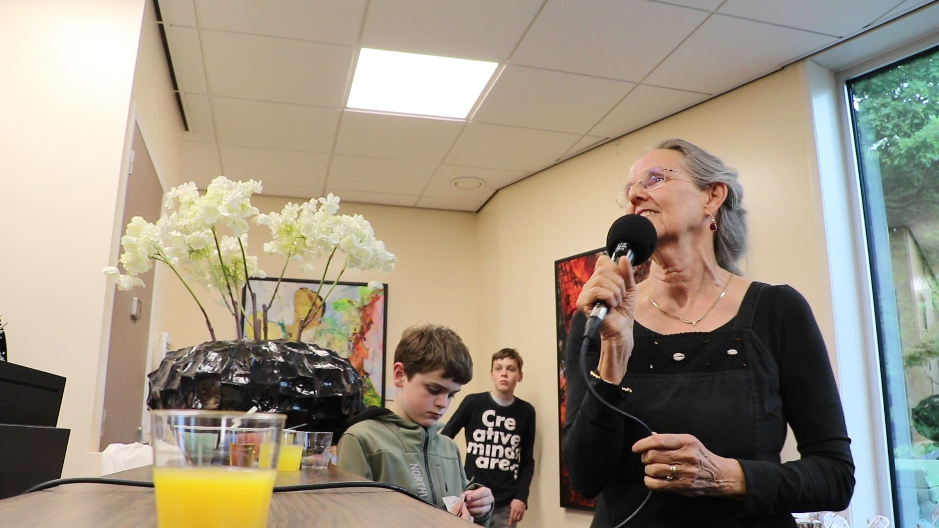 Prins Thermo opende niet alleen de expositie, maar onthulde ook het Winterlandschap van Kees Putman. Prinses Zon onthulde het werk ‘Opwarming van de Aarde’ van Dora Devilee.