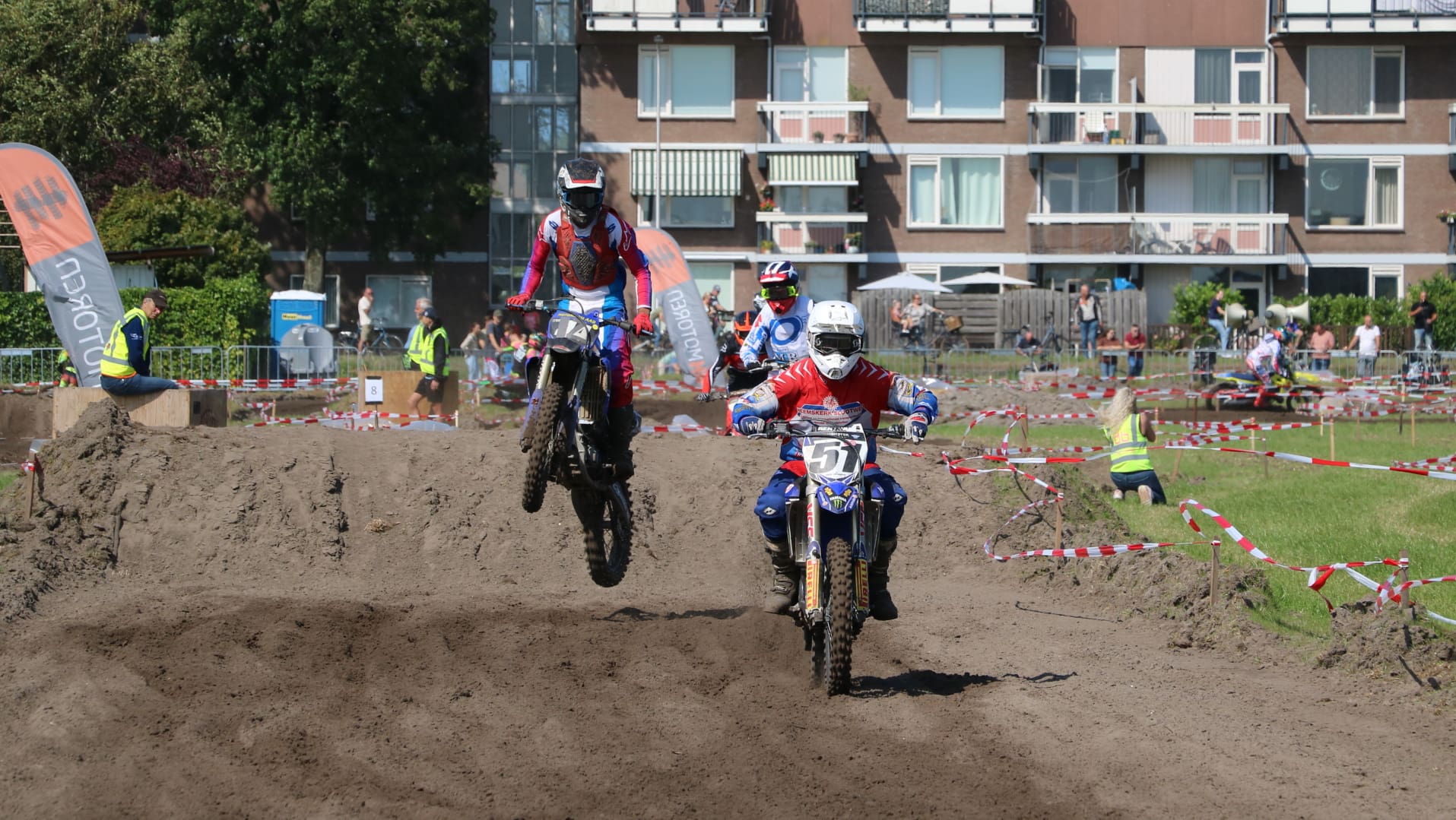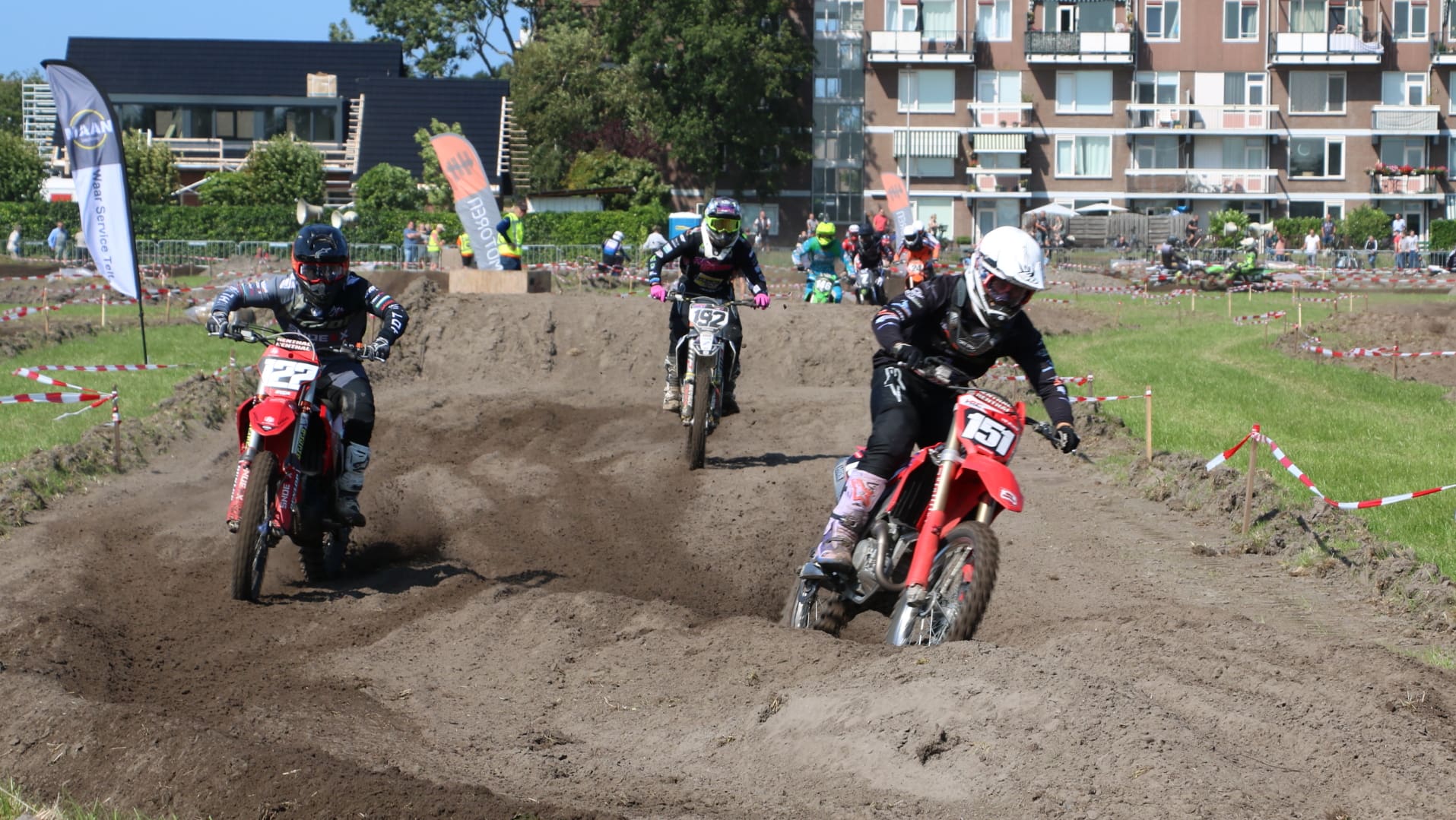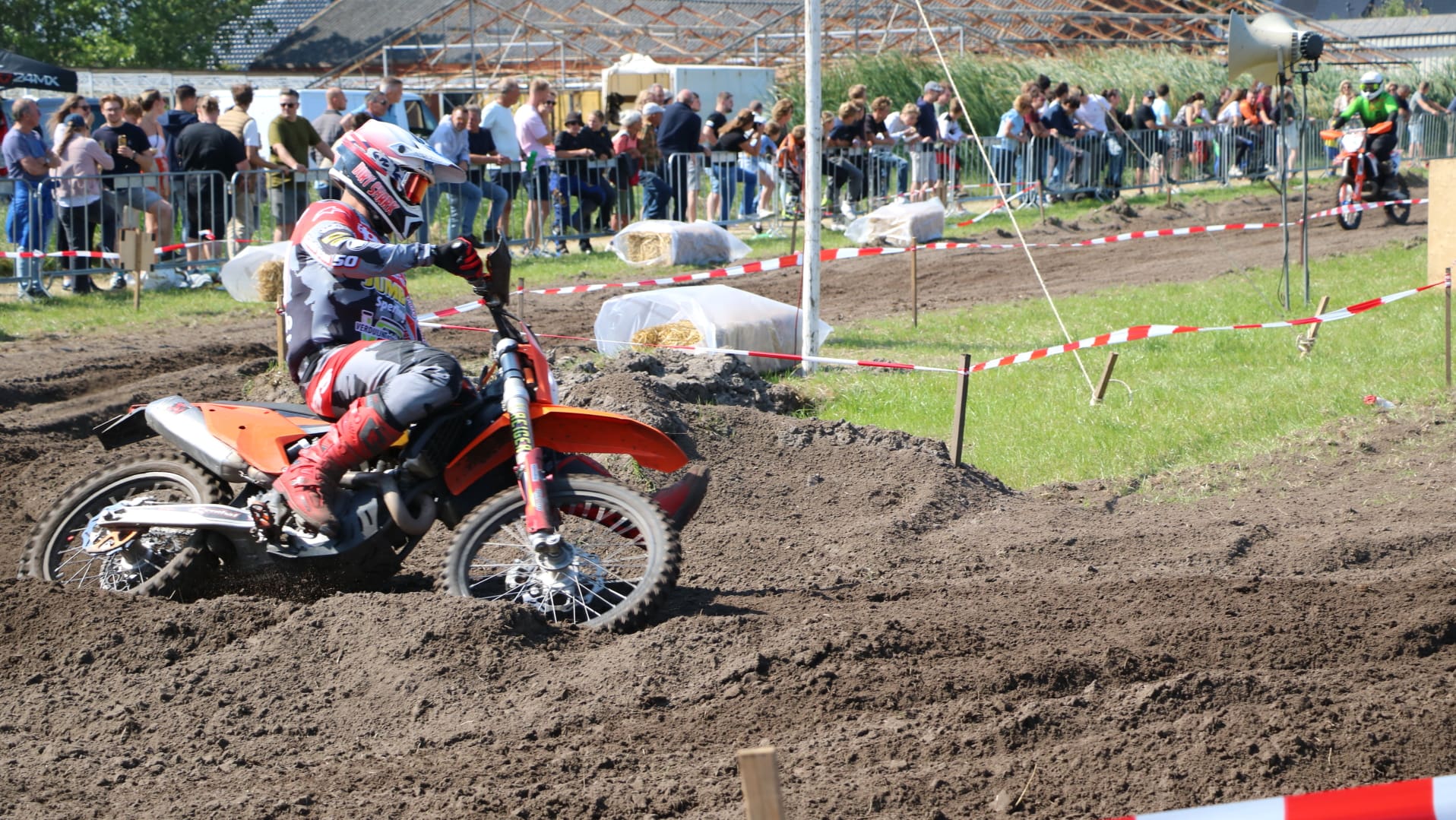 Noordwijkerhout – De Kermiscross in Noordwijkerhout heeft zoals altijd veel spectaculaire beelden opgeleverd. Motorcrossers namen het zaterdagochtend tegen elkaar op aan de Pilarenlaan. De dag begon met een tijdtraining en rond 11:00 was het tijd voor het echte werk: de race. Er werd geracet in de klassen 50cc, bromfiets klasse, 65cc kleine wielen en grote wielen, 85cc kleine wielen en grote wielen, 125 cc, 250cc, Dames, Veteranen, 500cc, Off road, Superklasse en Quad klasse.