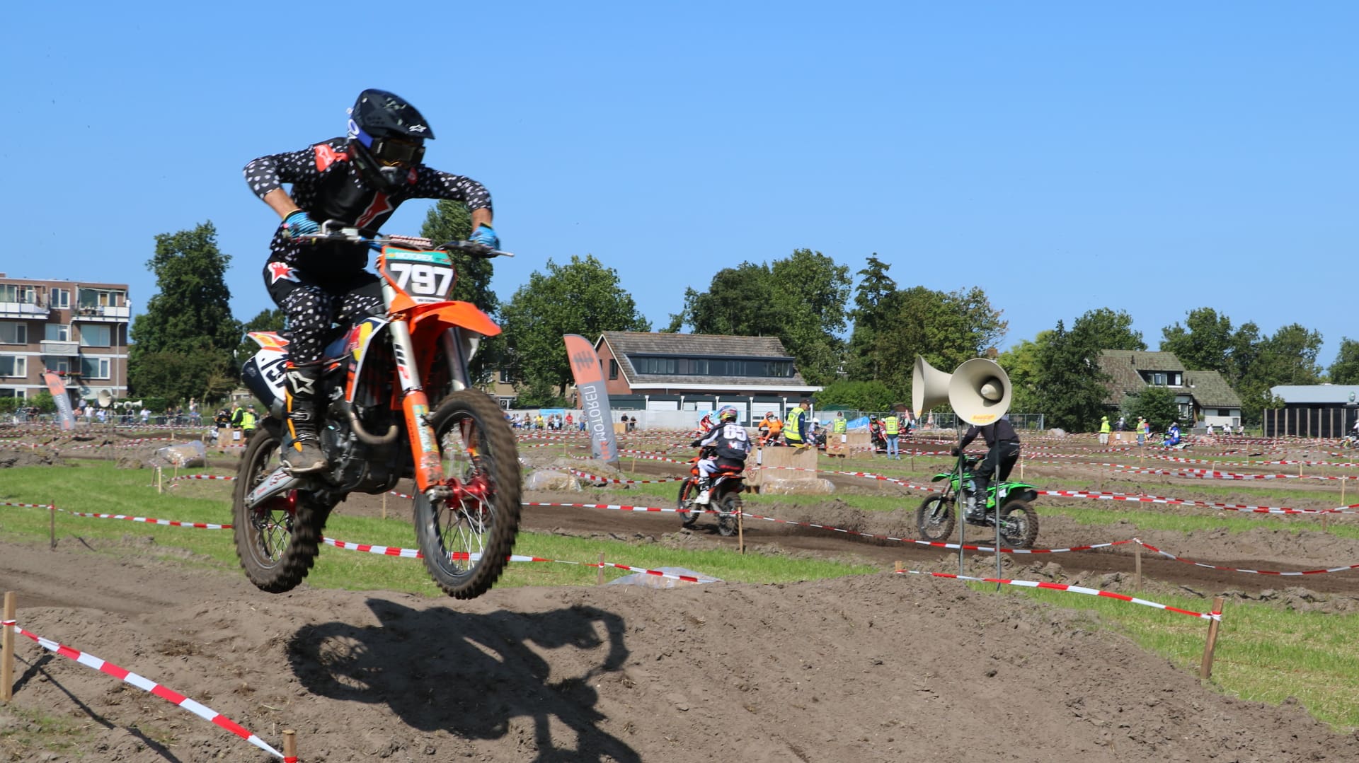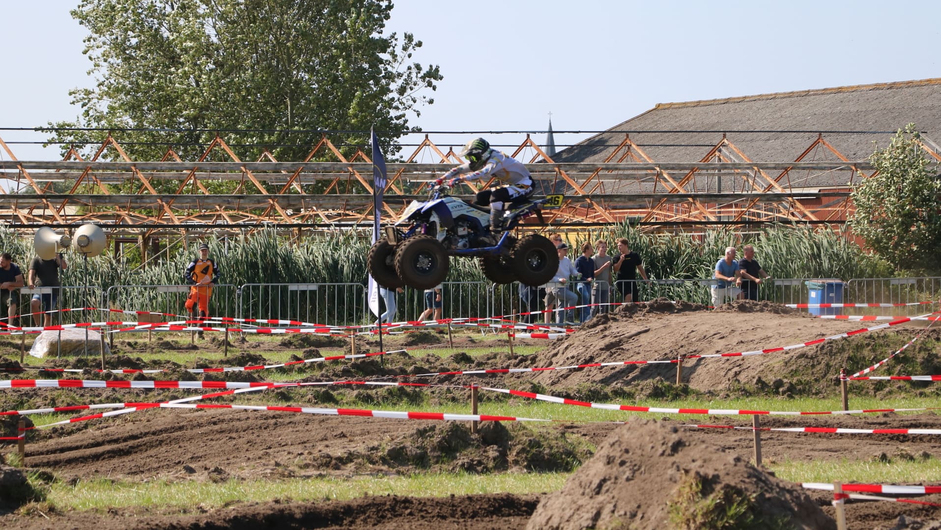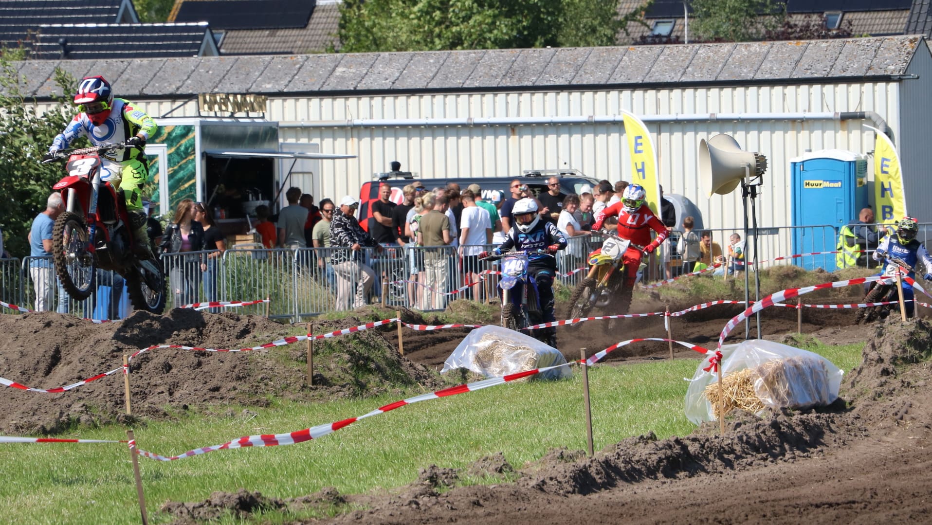 Noordwijkerhout – De Kermiscross in Noordwijkerhout heeft zoals altijd veel spectaculaire beelden opgeleverd. Motorcrossers namen het zaterdagochtend tegen elkaar op aan de Pilarenlaan. De dag begon met een tijdtraining en rond 11:00 was het tijd voor het echte werk: de race. Er werd geracet in de klassen 50cc, bromfiets klasse, 65cc kleine wielen en grote wielen, 85cc kleine wielen en grote wielen, 125 cc, 250cc, Dames, Veteranen, 500cc, Off road, Superklasse en Quad klasse.