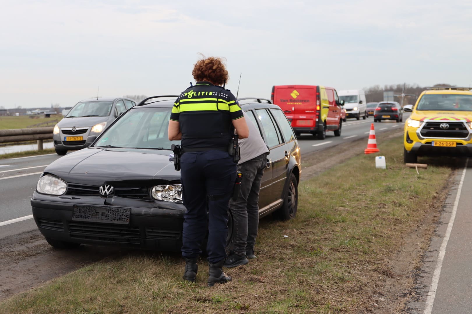 Voorhout – Het verkeer aan de Leidsevaart in Voorhout heeft vrijdagmiddag flinke vertraging opgelopen. Drie auto’s botsten op elkaar in een kop-staartbotsing. Alle drie de auto’s raakten beschadigd en één voertuig moest zelfs door een berger worden opgehaald. Daardoor ontstond er een flinke file. Niemand raakte gewond.