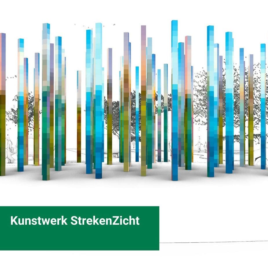 StrekenZicht toont duinen, zee, lucht en bollenvelden in kleurrijke vormen. Het ziet er vanuit elke hoek anders uit. De gemeente gaat nu in overleg met de kunstenaar over de uitvoering van het kunstwerk met betrekking tot verkeersveiligheid en de eventuele plaatsing van groen. Het kunstwerk wordt nog dit jaar geplaatst.