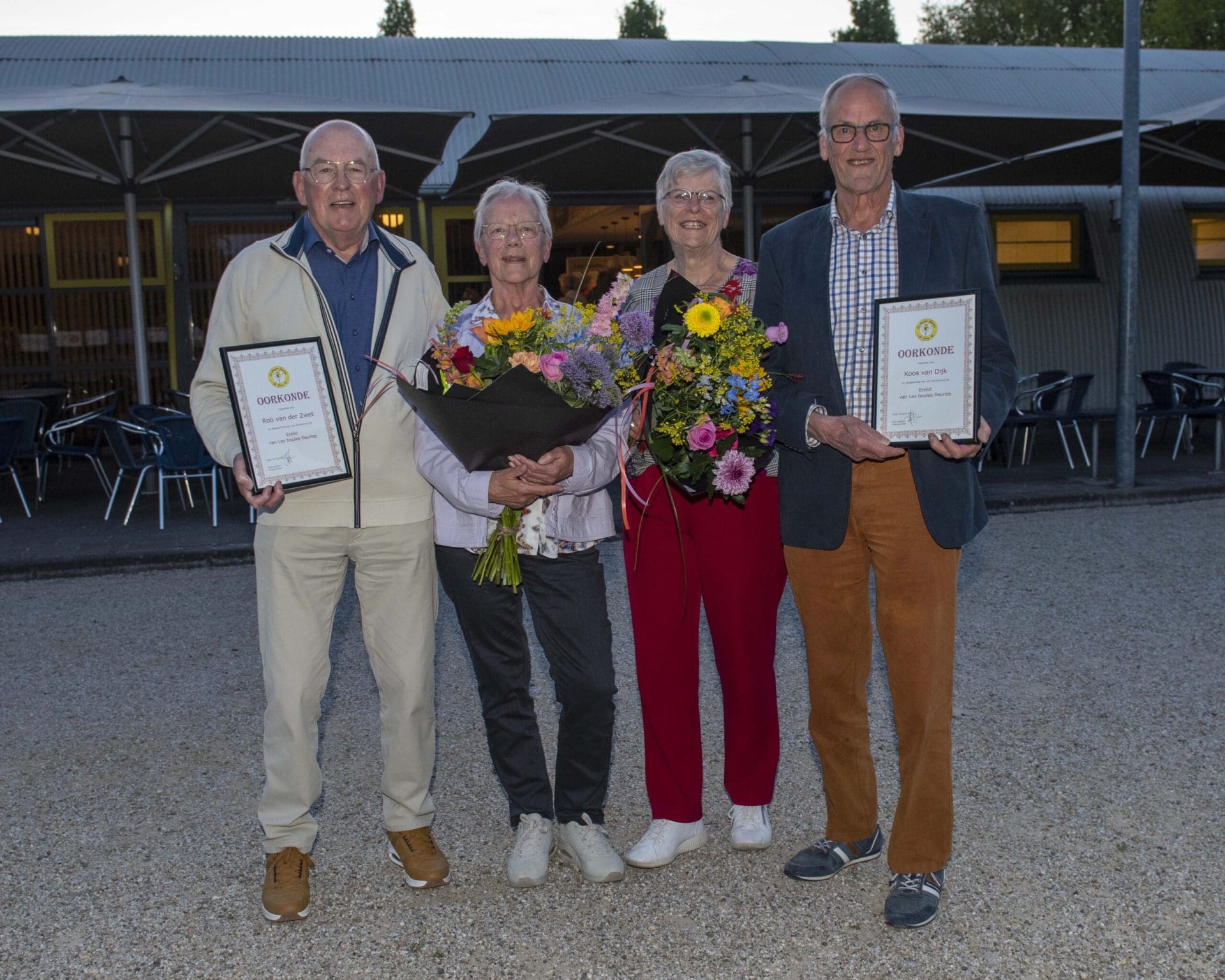 De mannen hebben zich in hun 32 jaar onder andere ingezet voor het onderkomen van Les boules fleuries, dat in 2006 is gebouwd. Tijdens hun afscheid zijn Van der Zwet en Van Dijk benoemd tot erelid van de vereniging.