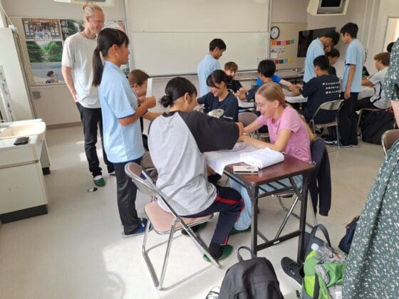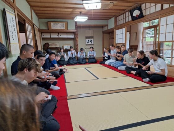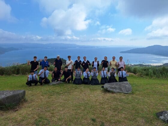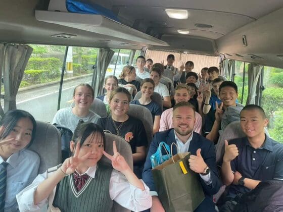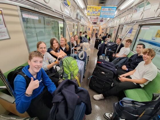 Noordwijkerhout – Tien leerlingen van Teylingen College Leeuwenhorst zijn in het kader van de stedenband op bezoek bij hun Japanse “collega’s” van drie middelbare scholen in Hirado, Japan. Bij hun aankomst werden de Leeuwenhorsters opgewacht door hun Japanse maatjes.