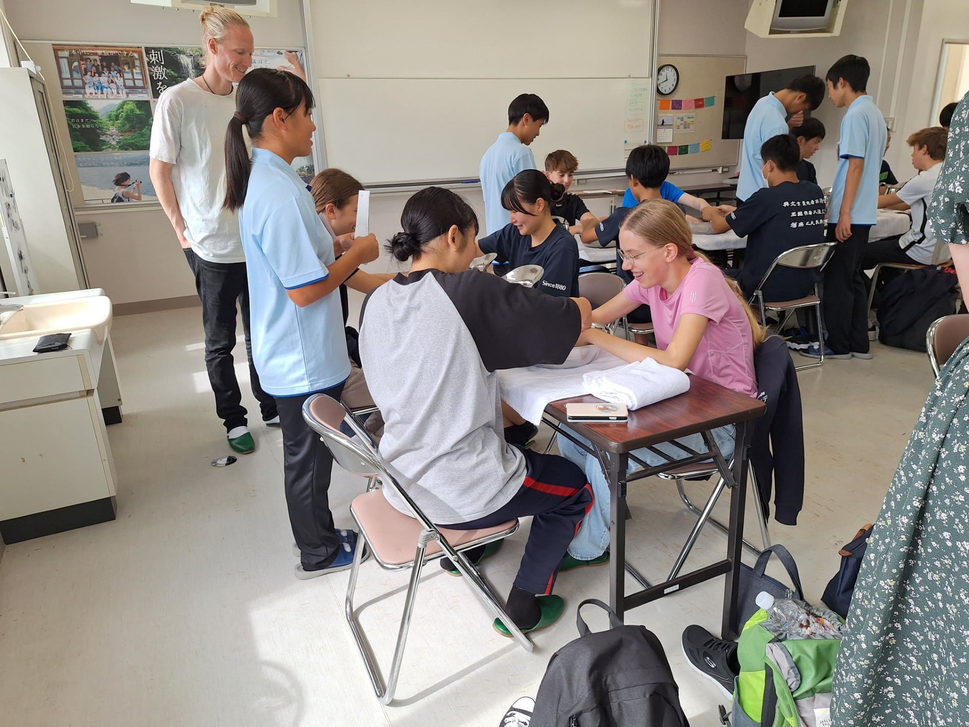 De volgende dag werd op Hirado High School een lesje verzorging gevolgd, waarin de Leeuwenhorsters leerden hoe een medische handmassage wordt uitgevoerd en hoe je met een rolstoel kunt rijden. Ook werd er gesport. Het weekend brachten de leerlingen door bij hun gastgezinnen. Ze werden meegenomen naar omliggende steden, attracties en ook een bezoek aan een sushirestaurant was favoriet.