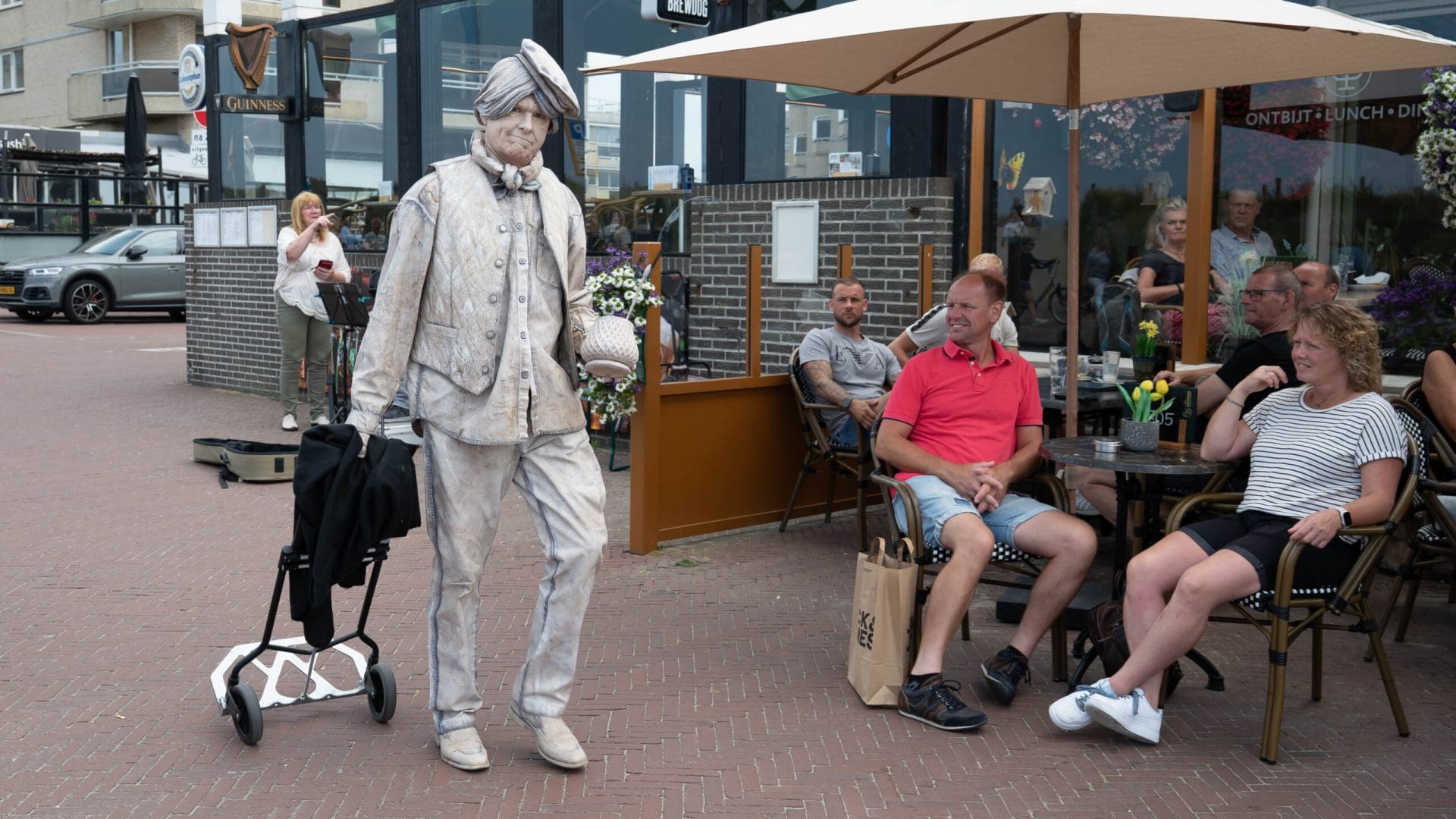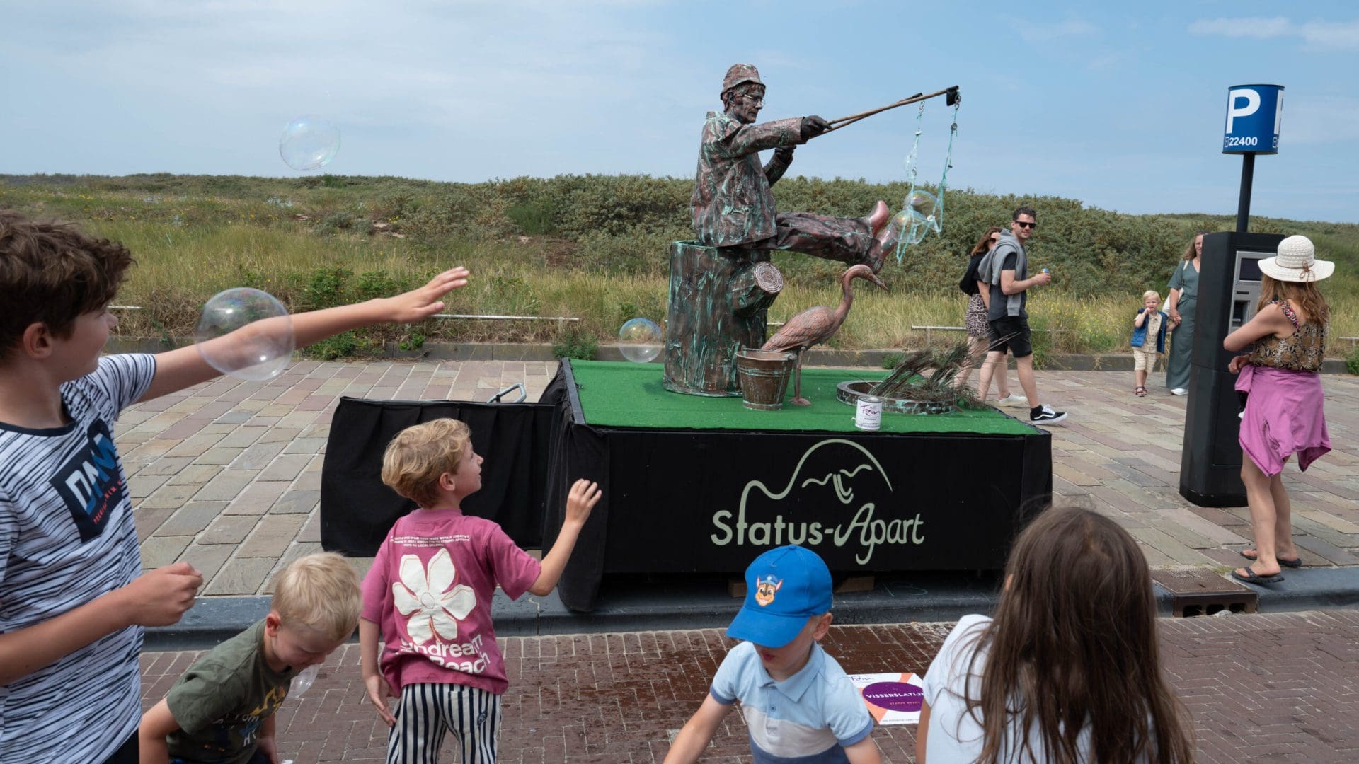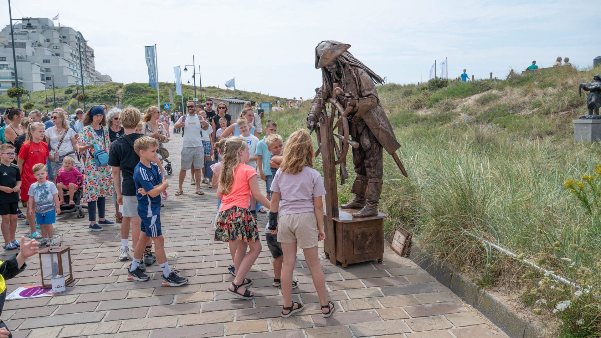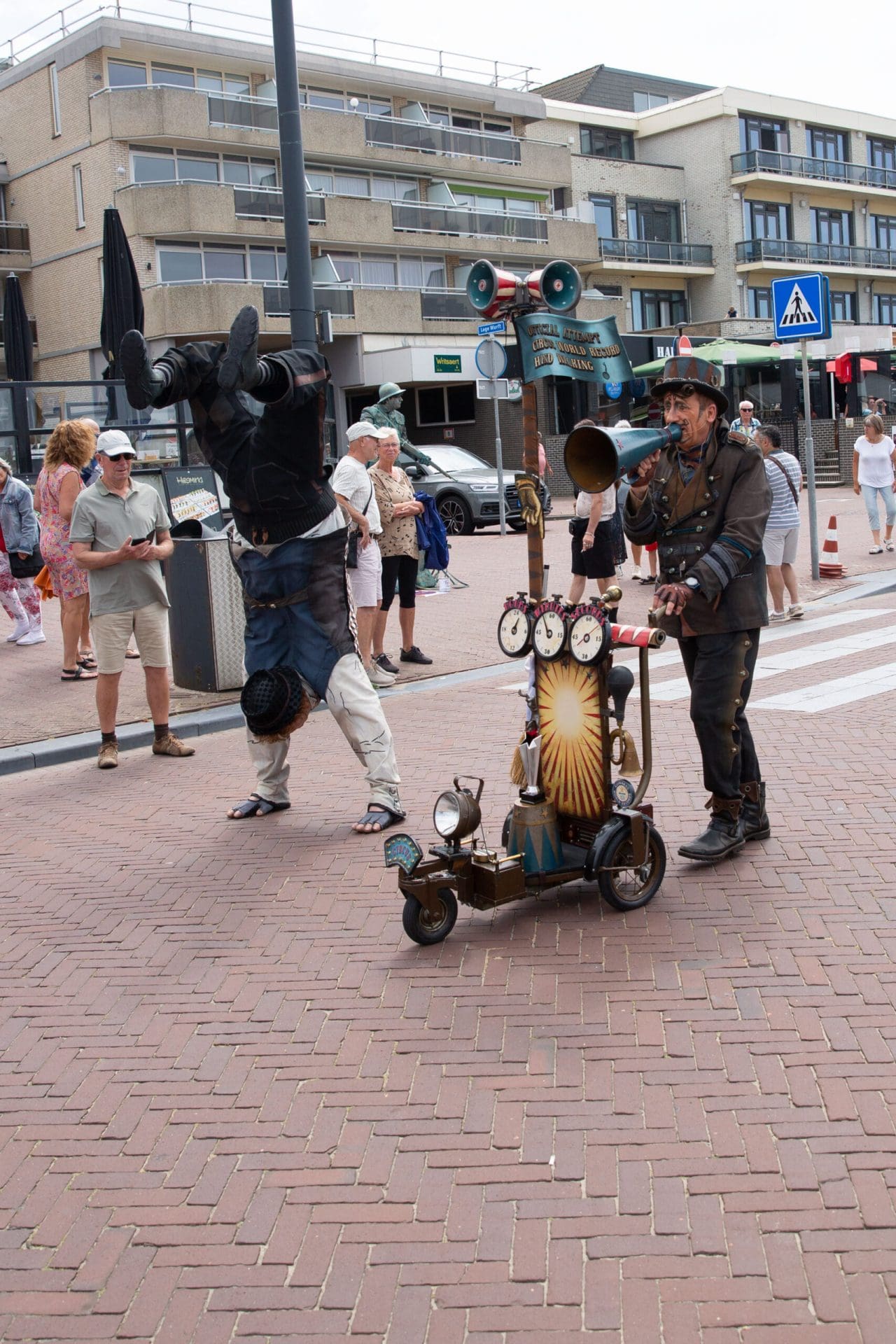 Noordwijk – Het eerste Levende Beelden Festival van het jaar in Noordwijk heeft veel verbaasde blikken opgeleverd. Standbeelden die plotseling bewegen en steltenlopers van drie meter lang kleurden de Koningin Wilhelminaboulevard en de Hoofdstraat. De beelden en steltenlopers werden aangevuld met livemuziek, onder andere voor de Harbour Lights.