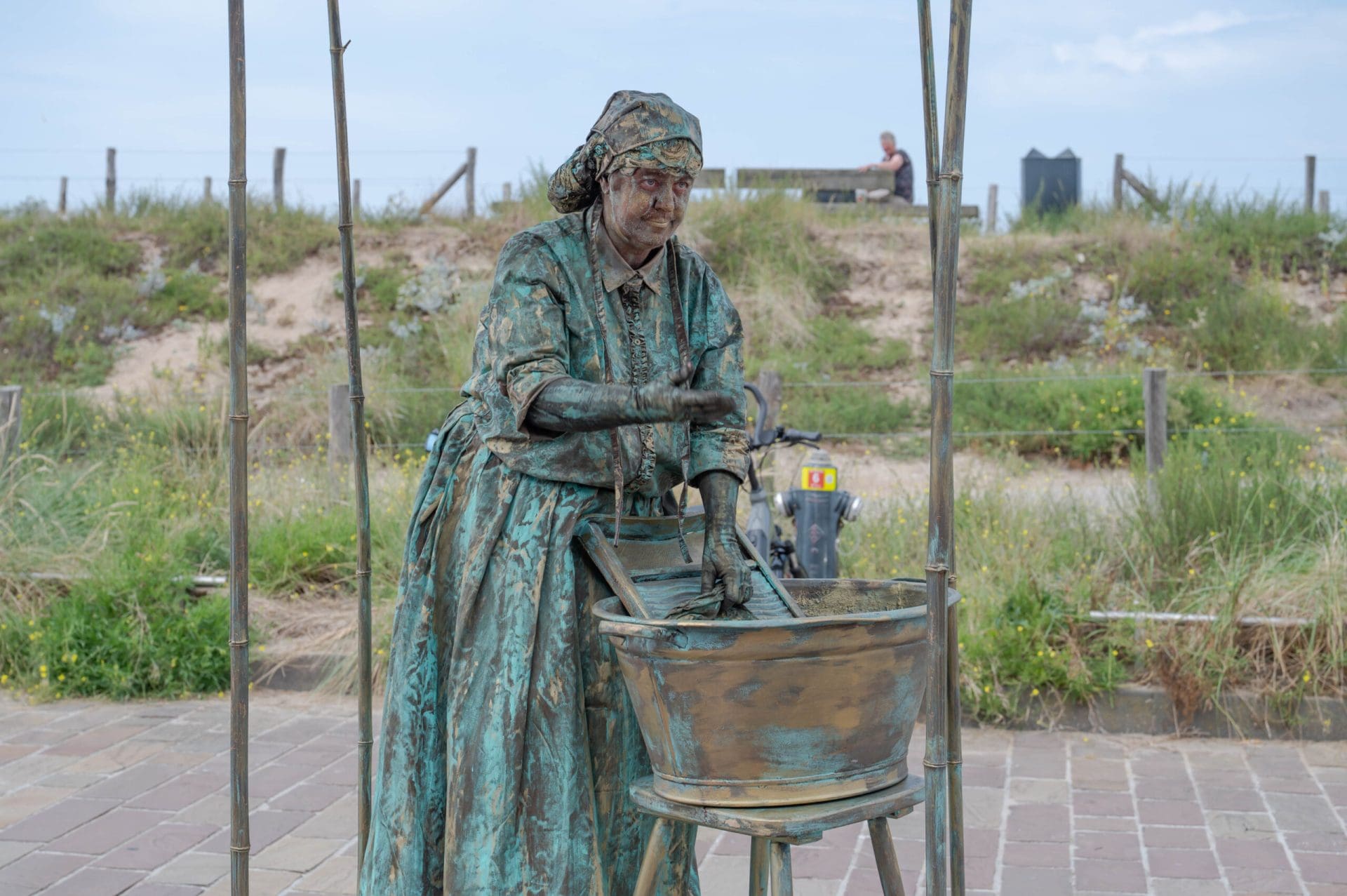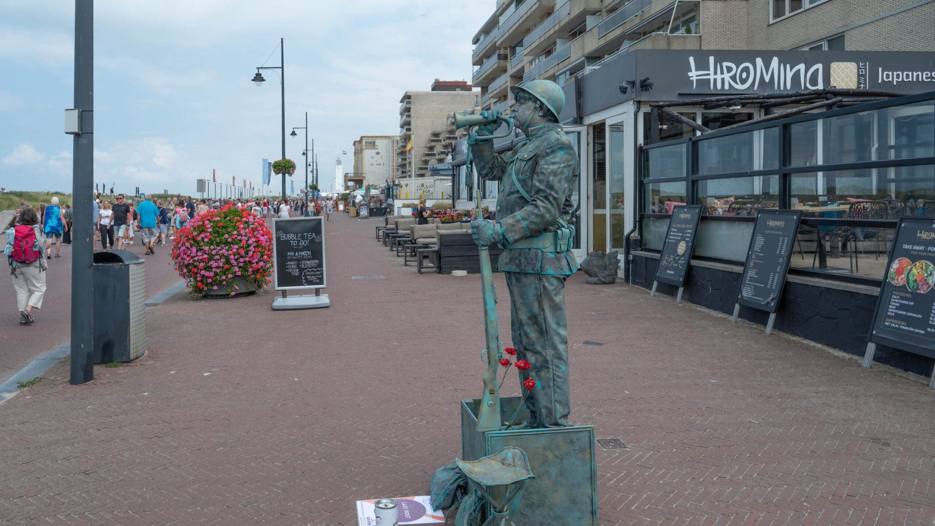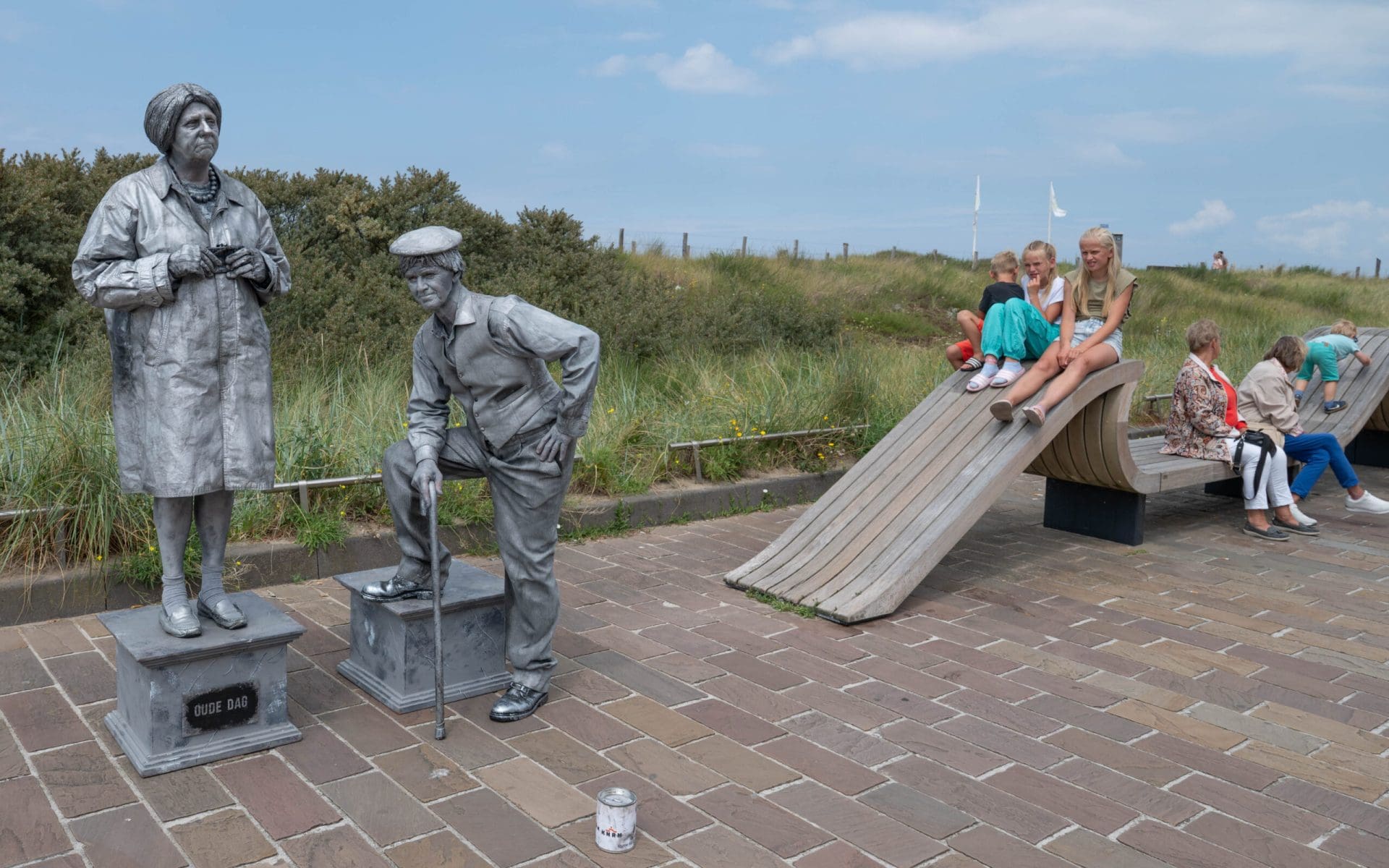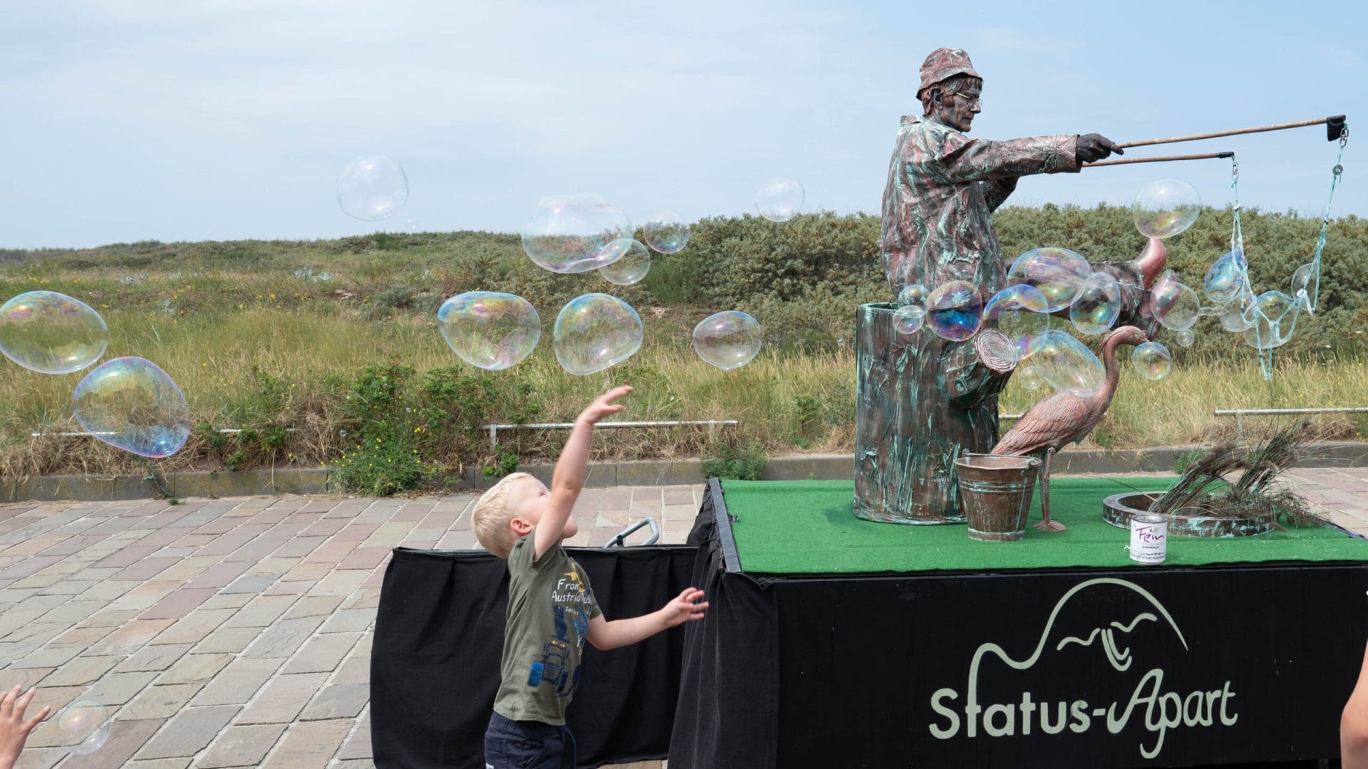 Noordwijk – Het eerste Levende Beelden Festival van het jaar in Noordwijk heeft veel verbaasde blikken opgeleverd. Standbeelden die plotseling bewegen en steltenlopers van drie meter lang kleurden de Koningin Wilhelminaboulevard en de Hoofdstraat. De beelden en steltenlopers werden aangevuld met livemuziek, onder andere voor de Harbour Lights.