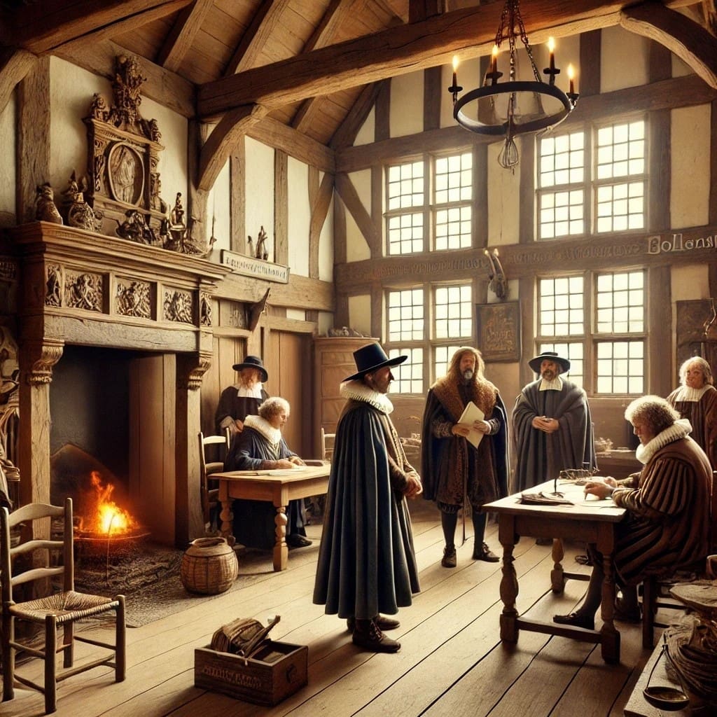 Rechtspreken in een herberg in de 17de eeuw. Bron: Cultuur-Historische Vereniging “Oud Lisse”