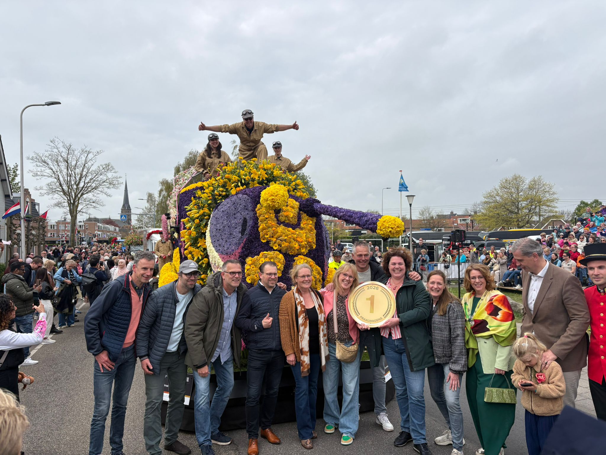 Het Bloemencorso van de Bollenstreek 2026 is nu écht van start! De eerste wagens zijn gaan rijden. De eerste stop: de Koningin Wilhemina Boulevard in Noordwijk.