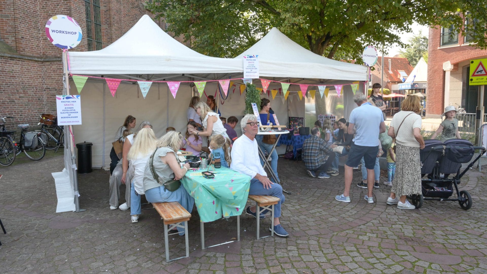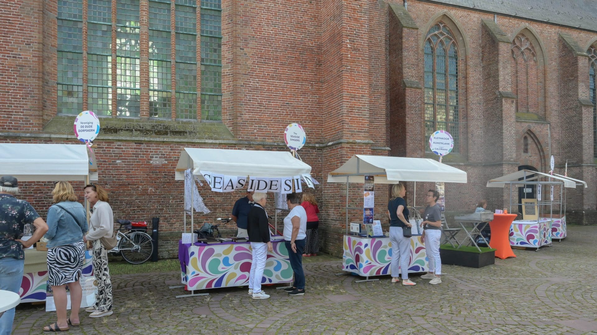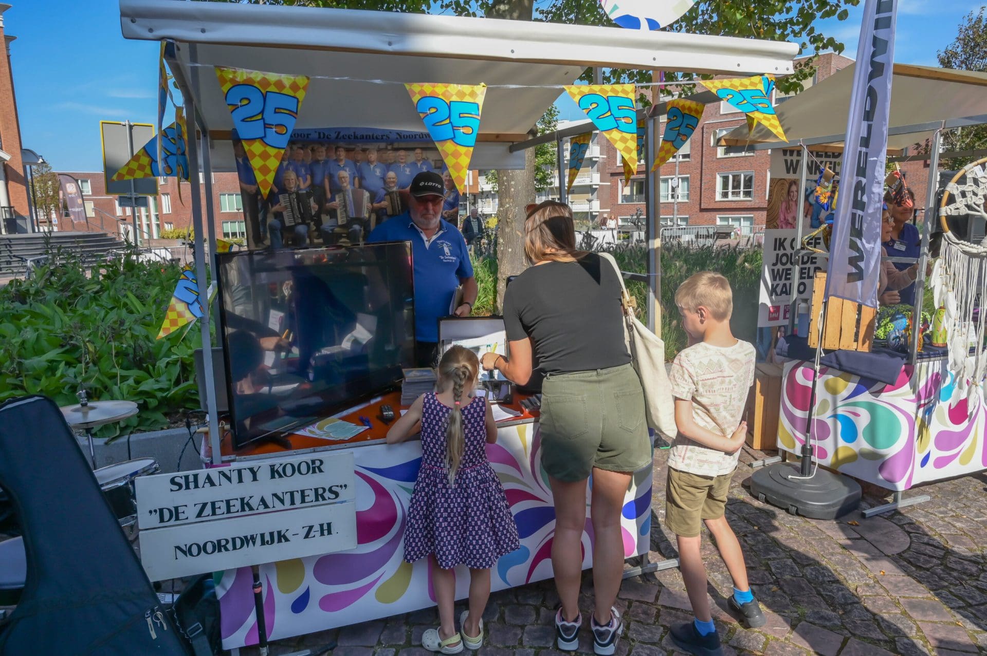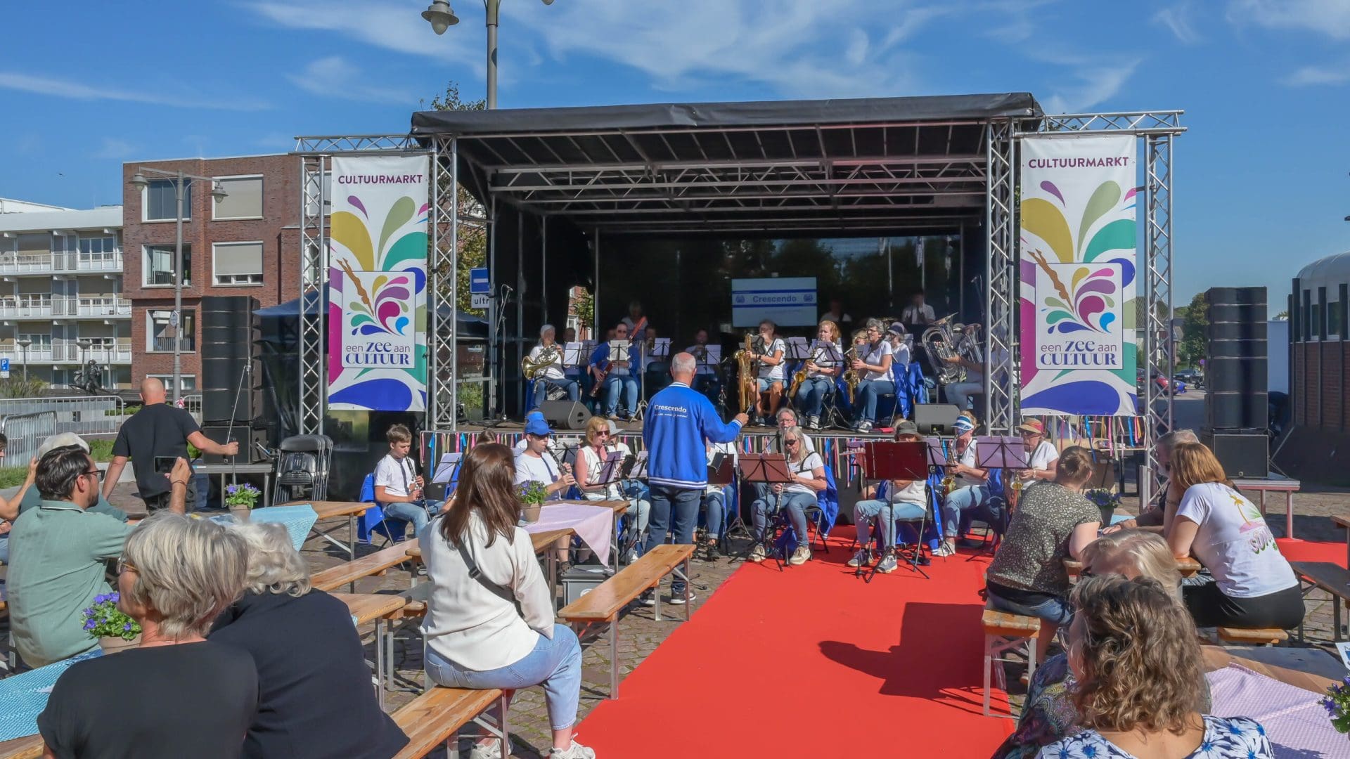 Noordwijk – Liefhebbers van cultuur hebben zich zaterdag vermaakt op het plein bij de Oude Jeroenskerk in Noordwijk. Er was zang, dans en er waren theateroptredens van allerlei Noordwijkse verenigingen, zoals Harmoniekapel Crescendo en de Noordwijkse Balletschool. De Cultuurmarkt werd op spectaculaire wijze geopend: een puzzelstukje werd vanaf de toren van de Oude Jeroenskerk naar beneden gegleden naar de markt.