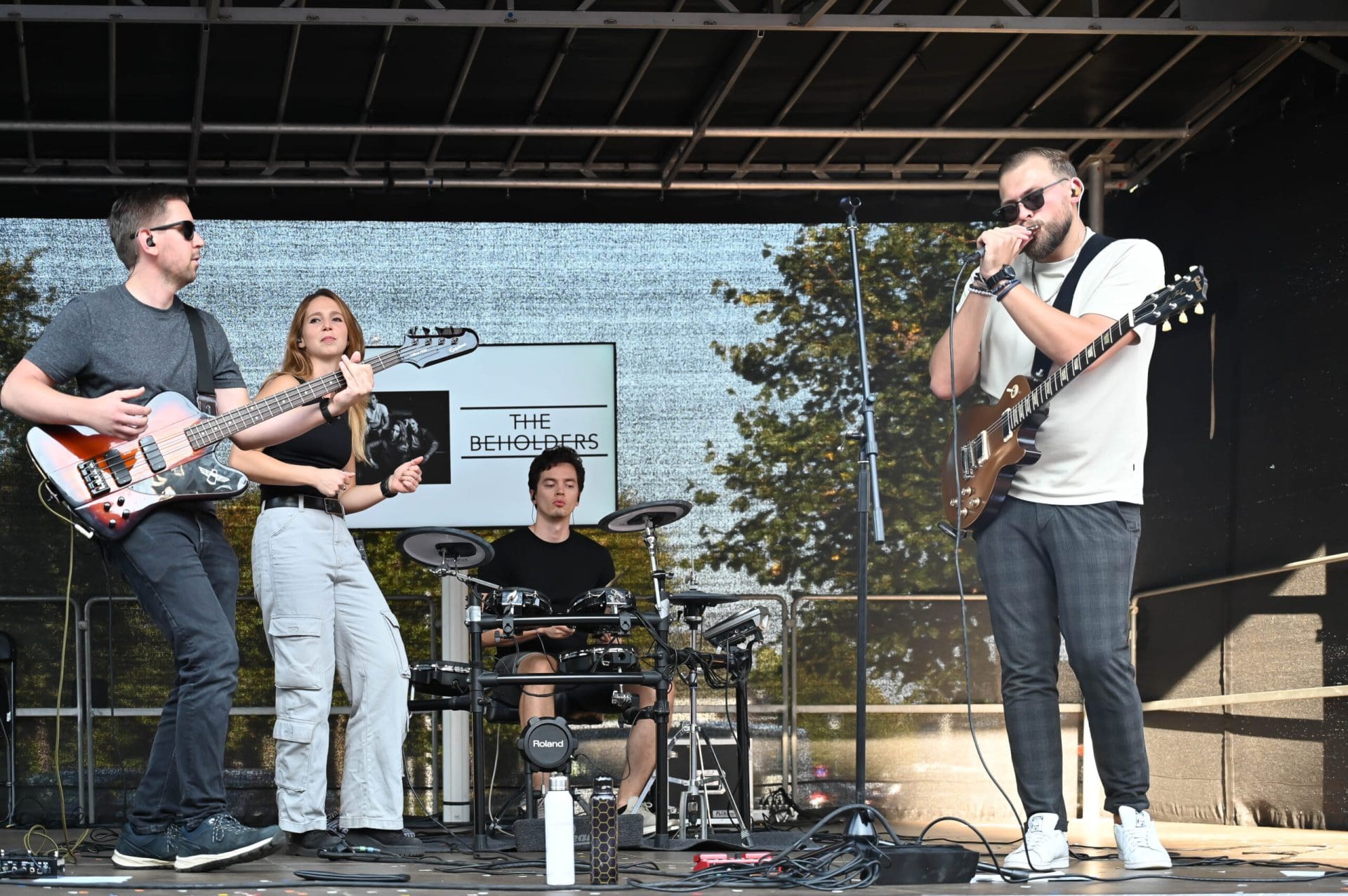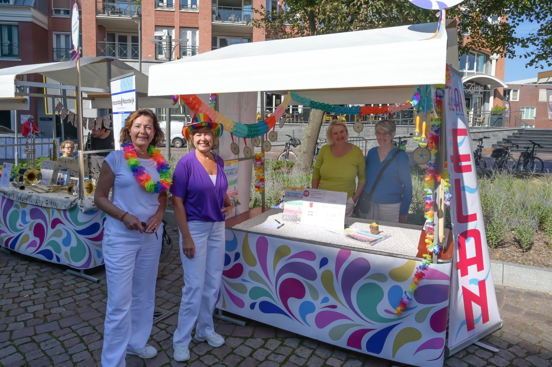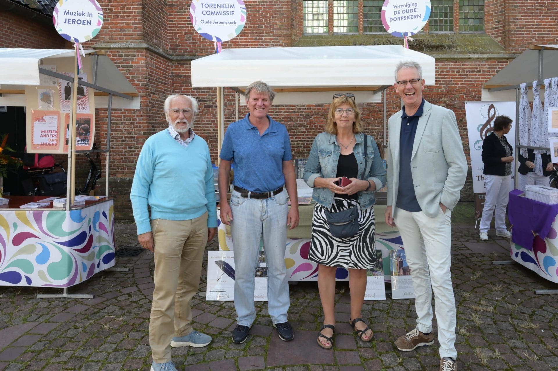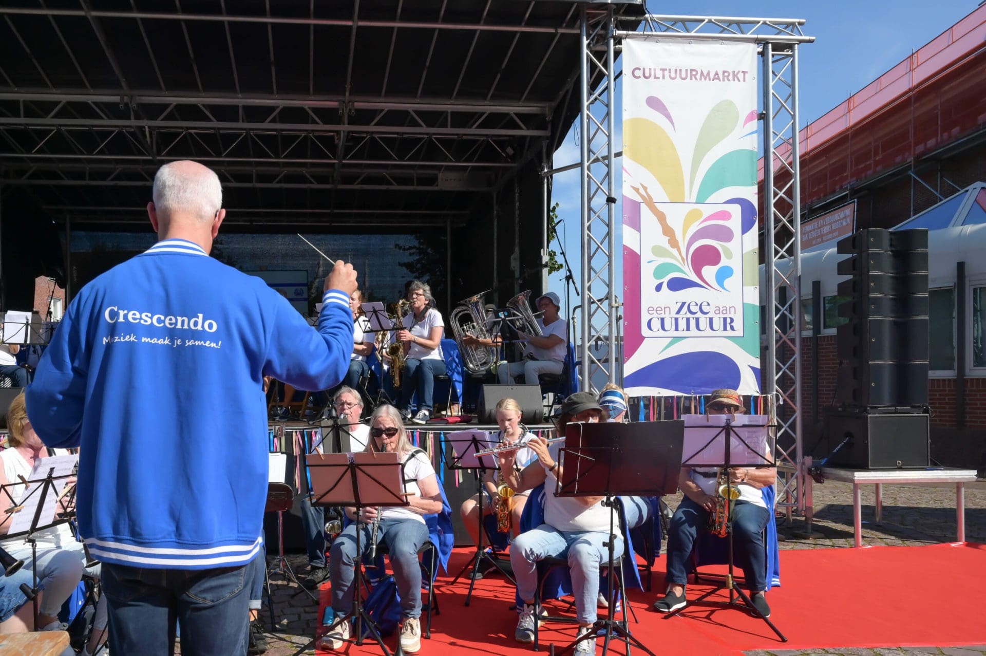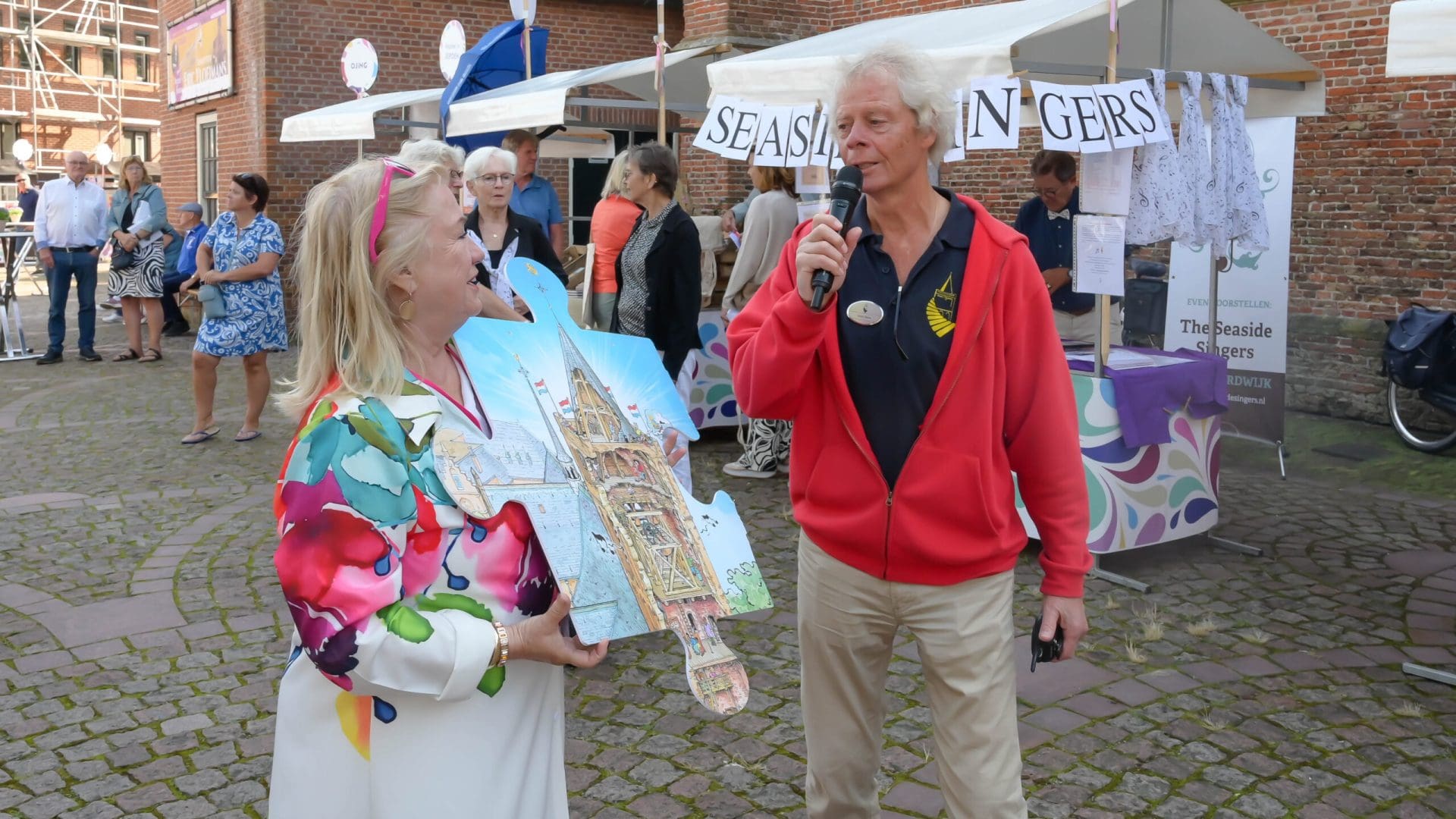 Noordwijk – Liefhebbers van cultuur hebben zich zaterdag vermaakt op het plein bij de Oude Jeroenskerk in Noordwijk. Er was zang, dans en er waren theateroptredens van allerlei Noordwijkse verenigingen, zoals Harmoniekapel Crescendo en de Noordwijkse Balletschool. De Cultuurmarkt werd op spectaculaire wijze geopend: een puzzelstukje werd vanaf de toren van de Oude Jeroenskerk naar beneden gegleden naar de markt.