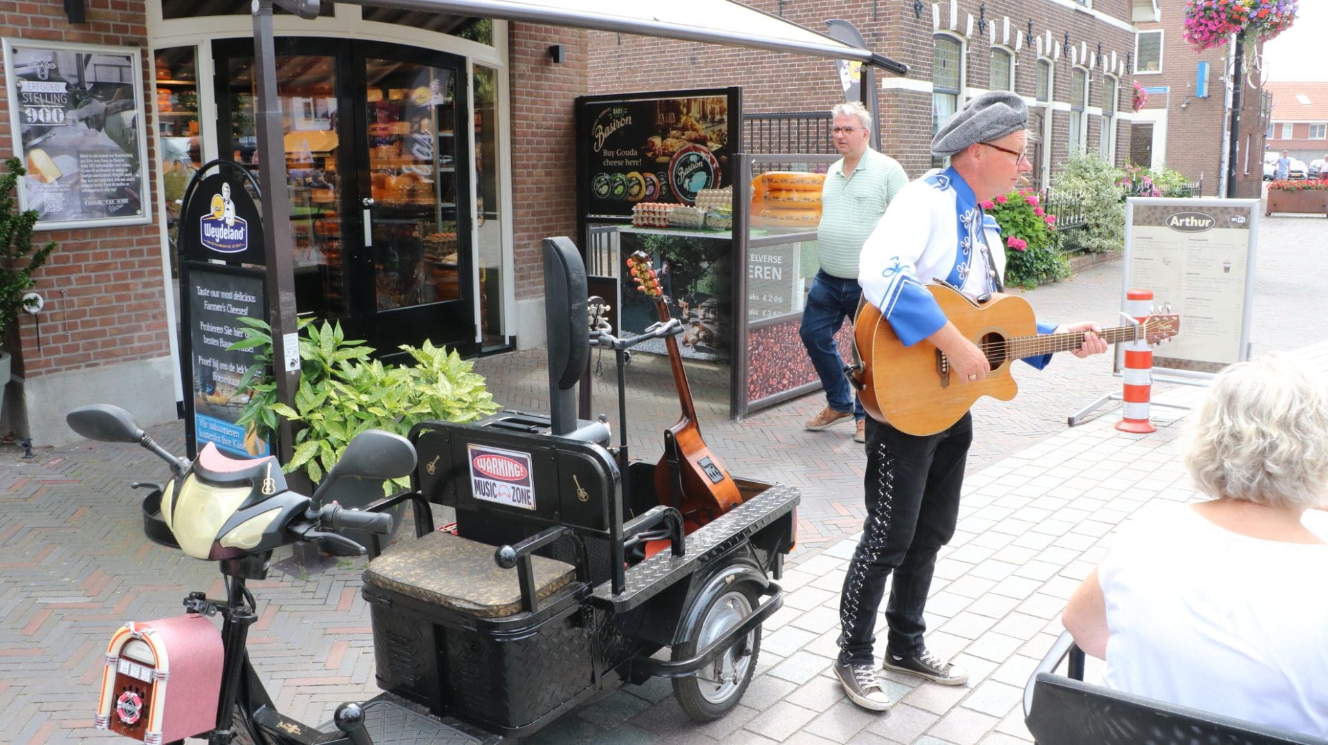 Het winkelend publiek en de mensen op de terrassen werden op ludieke wijze vermaakt door straatmuzikanten. Zo bracht zanger/gitarist Edward Val zijn Top2000-repertoire ten gehore. Een andere muzikant bezocht zijn publiek met een minipodium op een scootmobiel.