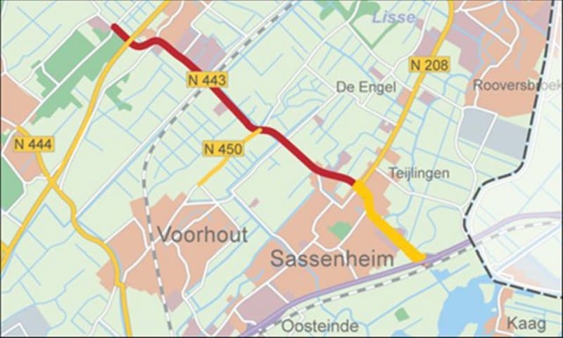 De N443 is van 9 oktober tot en met december afgesloten voor doorgaand verkeer. Ook de afritten van de N206 – afslag Noordwijkerhout/Sassenheim – zijn deze periode afgesloten. Er zijn omleidingsroutes. Ambulance, brandweer en politie kunnen er wel door.