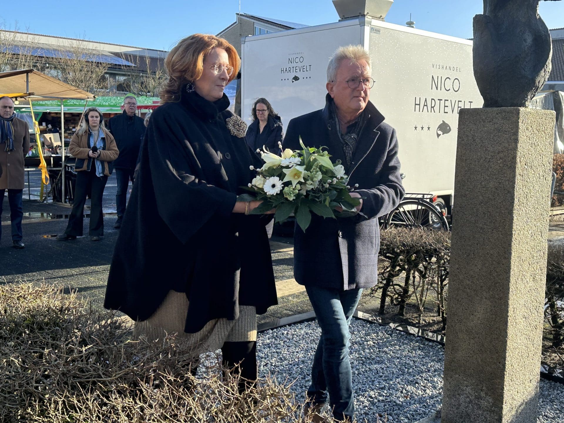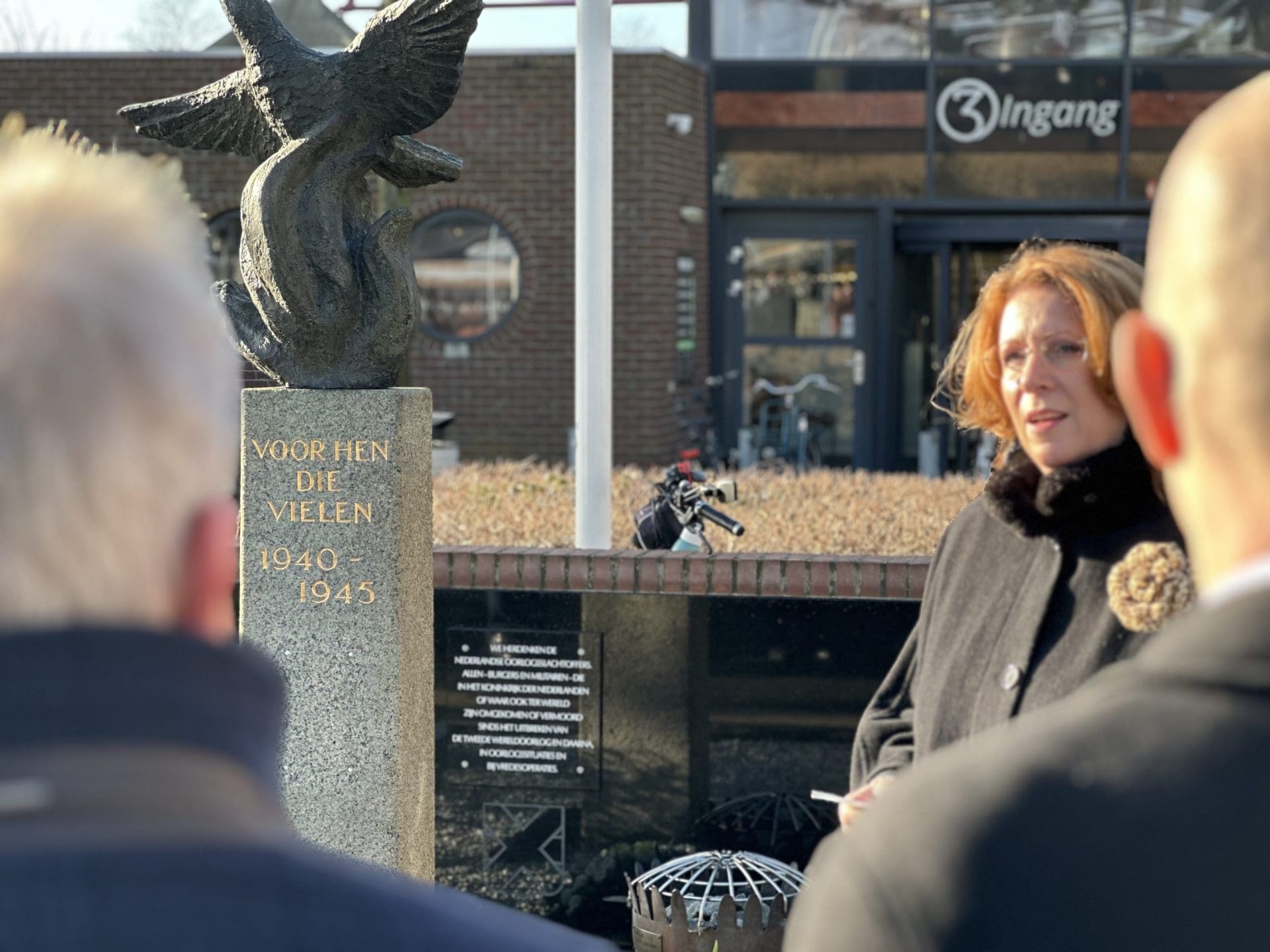 Voorhout – ‘Alles wat er toen gebeurd is, mogen kinderen weten om ervoor te zorgen dat het eigenlijk nooit meer zou moeten gebeuren’. Dit zei burgemeester Carla Breuer van Teylingen nadat voor de tweede keer in Voorhout de herdenking van de Nationale Holocaust plaats vond, dit gebeurde vrijdagochtend. Samen met de Oranje Vereniging Voorhout en de Historische Kring Voorhout werd een bloemstuk bij het Holocaust-monument, dat er sinds 2022 staat, gelegd. Tijdens de herdenking werd er ook een moment van stilte gehouden.