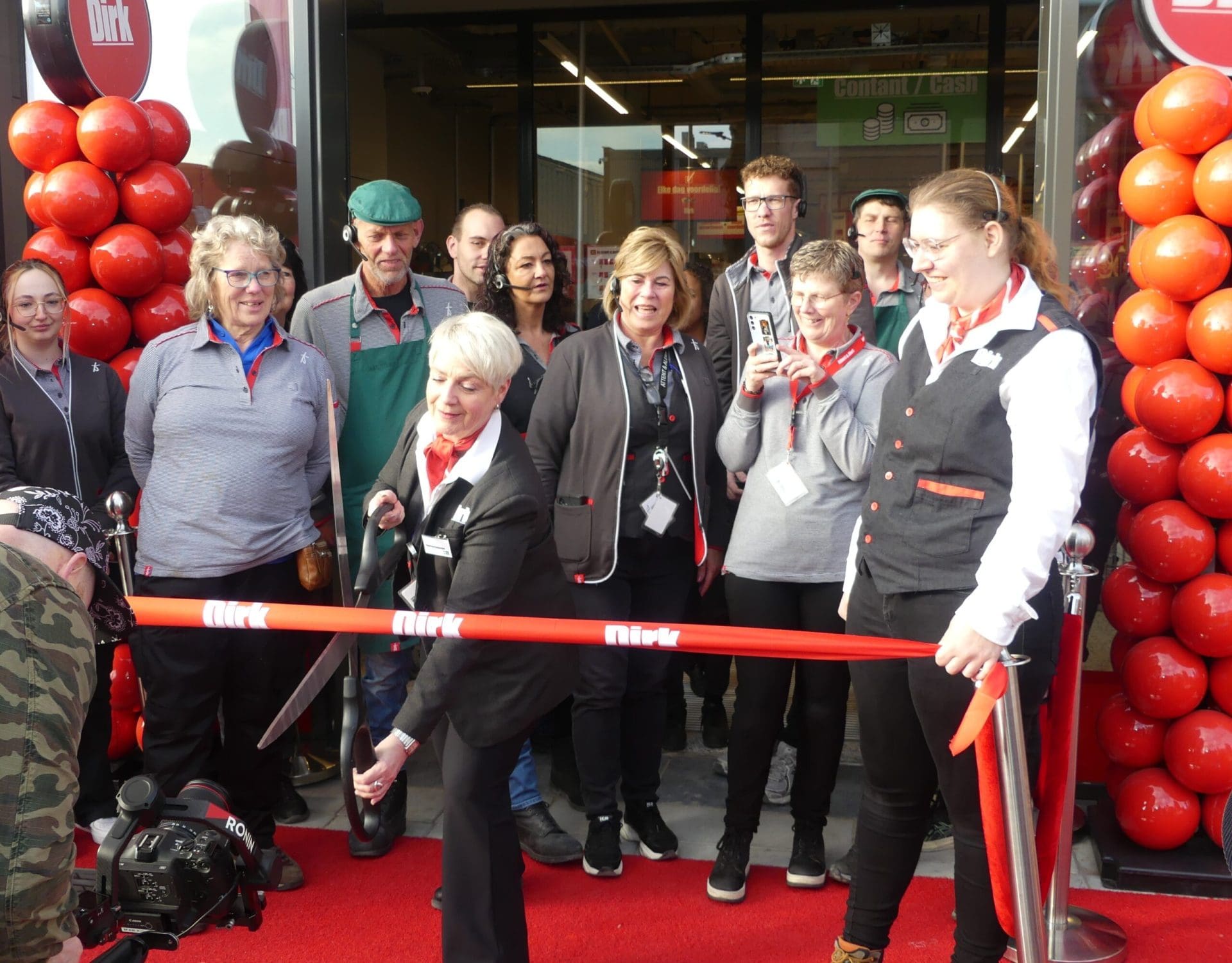 Sassenheim – Aan de Concordiastraat in Sassenheim is woensdagochtend de nieuwe Dirk-supermarkt geopend. Dat gebeurde door supermarktmanager Paola in ’t Veld, die met een grote schaar het lint bij de ingang van de winkel doorknipte.