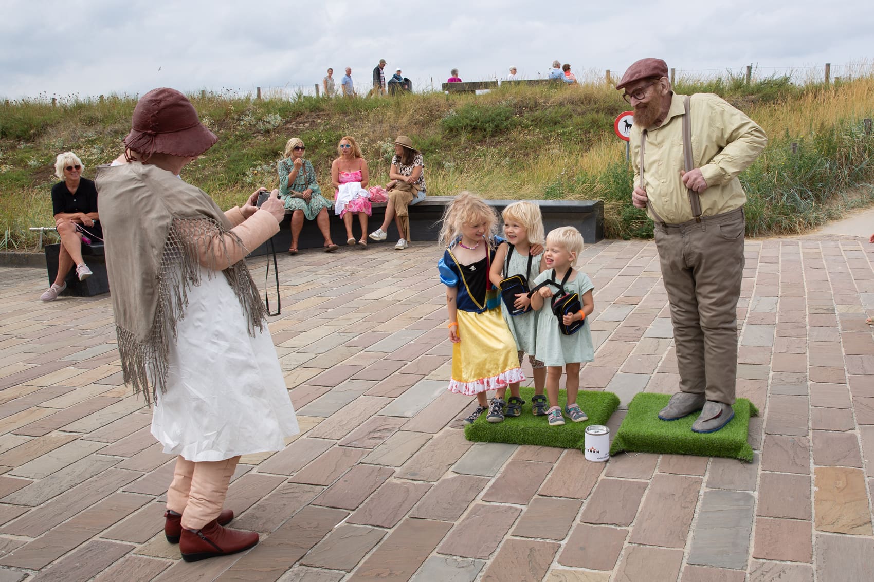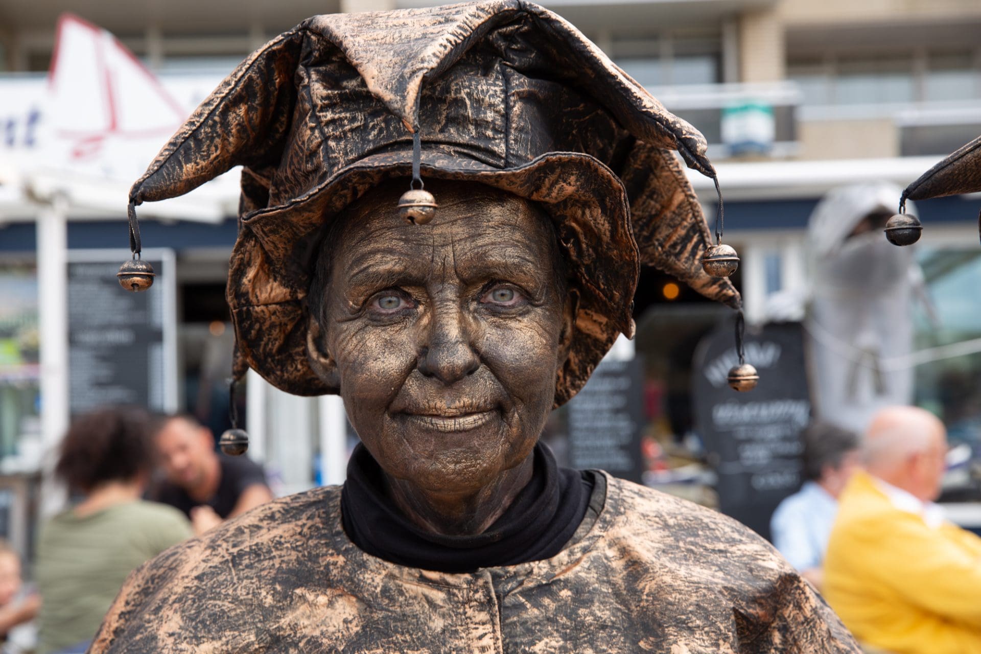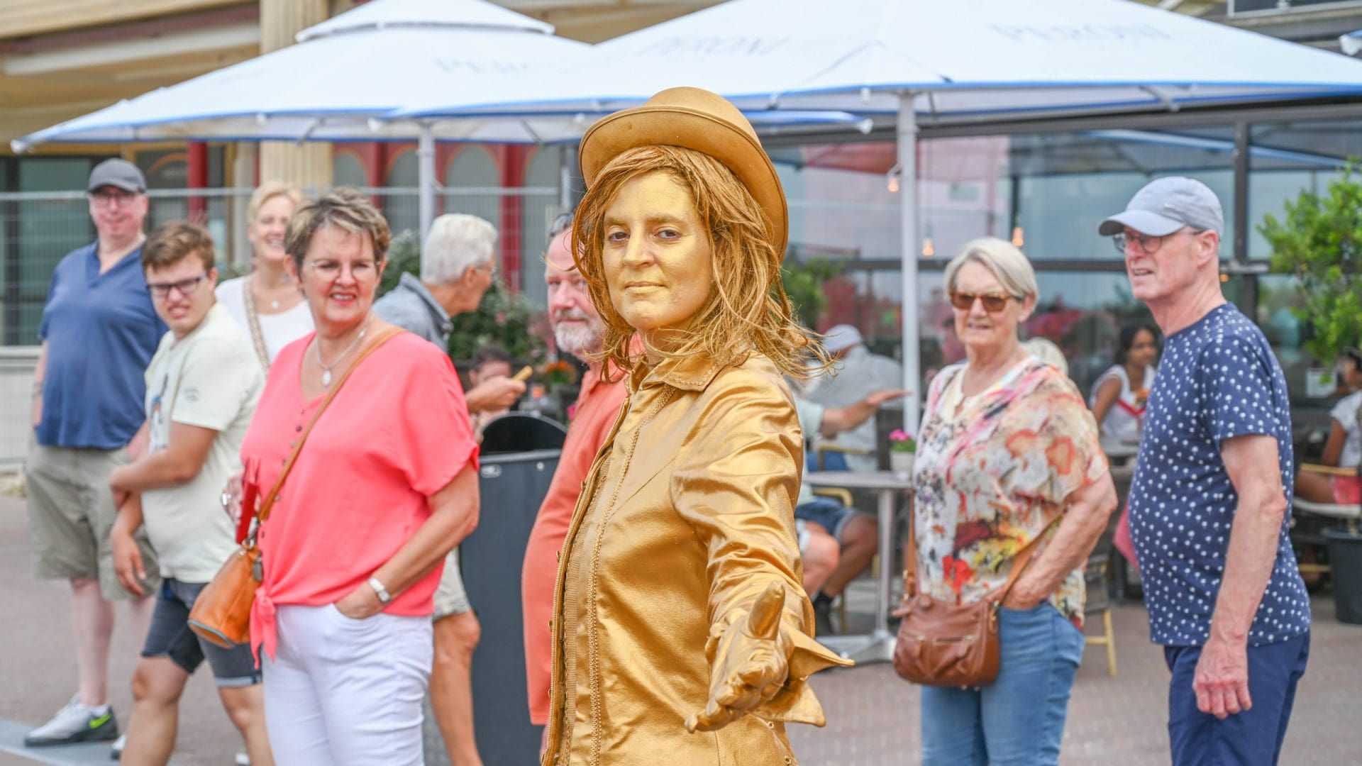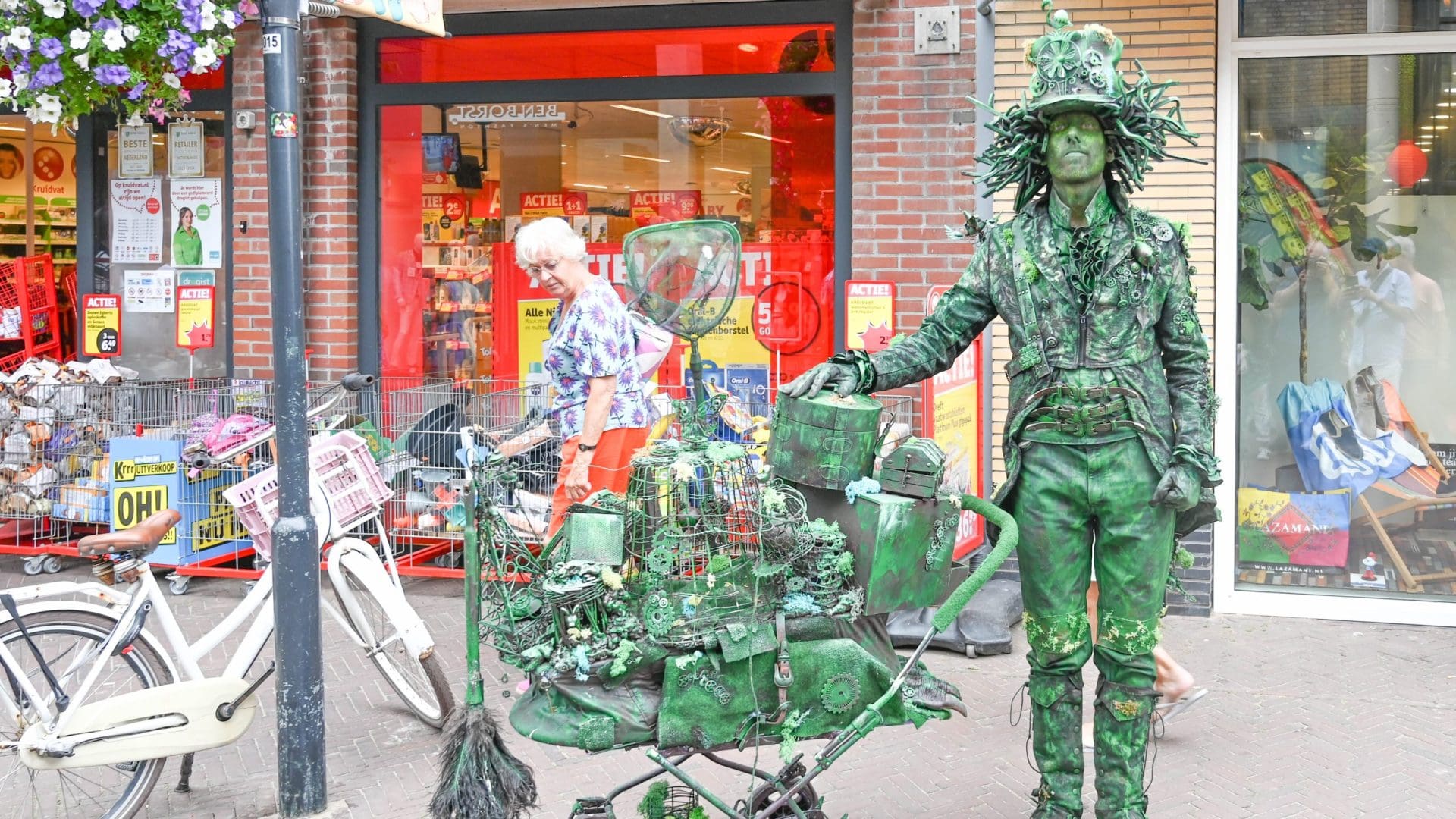 De levende beelden waren zoals dat hoort bij een beeld, onbeweeglijk. Totdat ze op onverwachte momenten in beweging kwamen en contact zochten met hun publiek. Dat leverde steeds bijzondere verrassingen op, vol humor en emotie.
