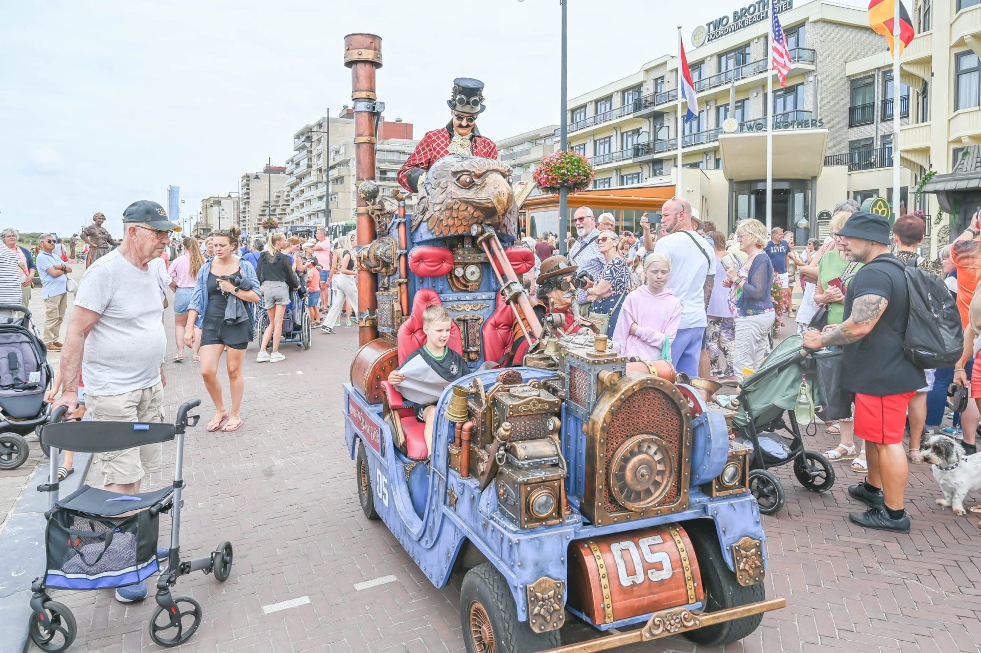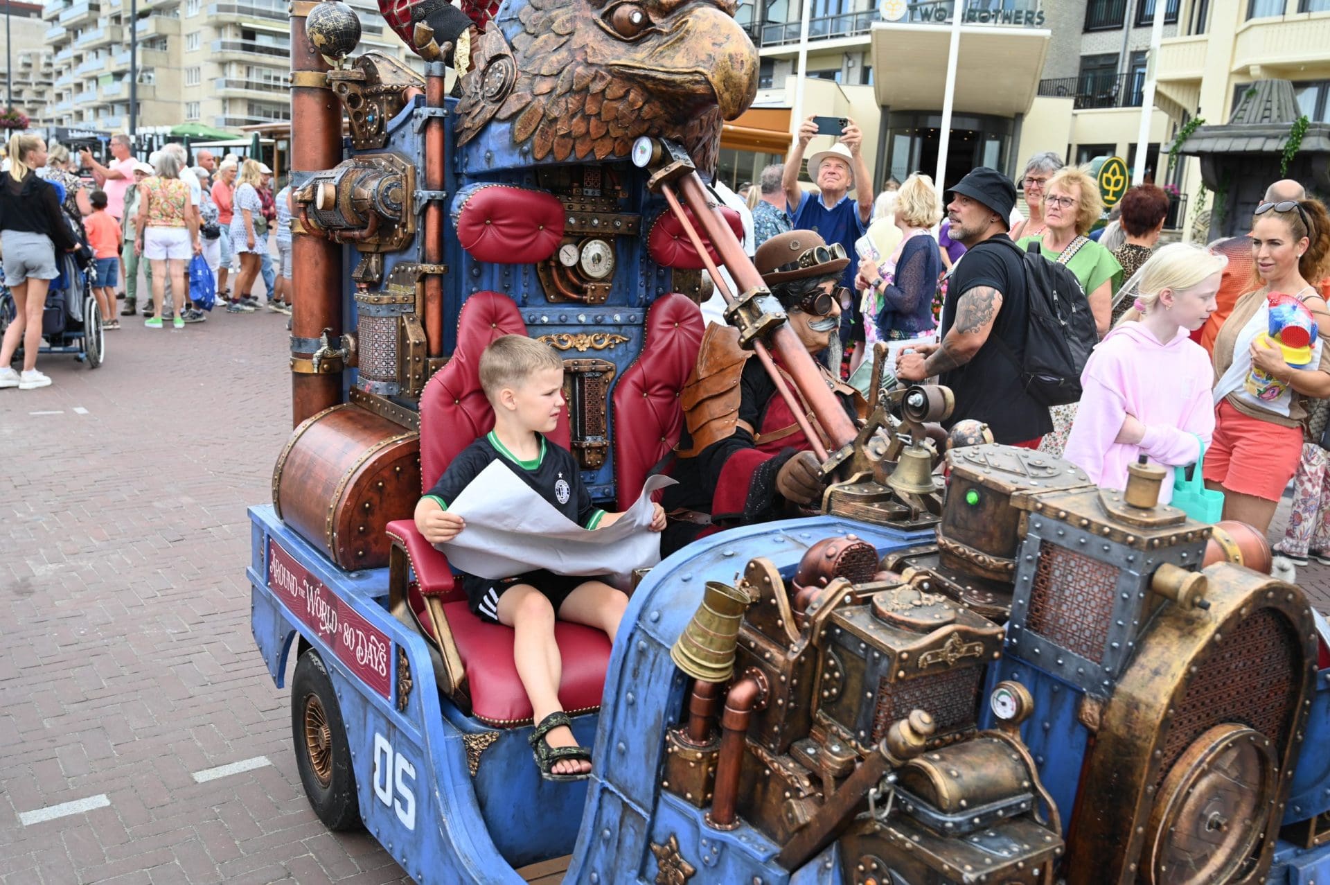 Naast de levende beelden waren op de boulevard ook straatmuzikanten te vinden en mobiele kunstenaars. Kinderen mochten een stukje meerijden in een Jules-Vernevoertuig.