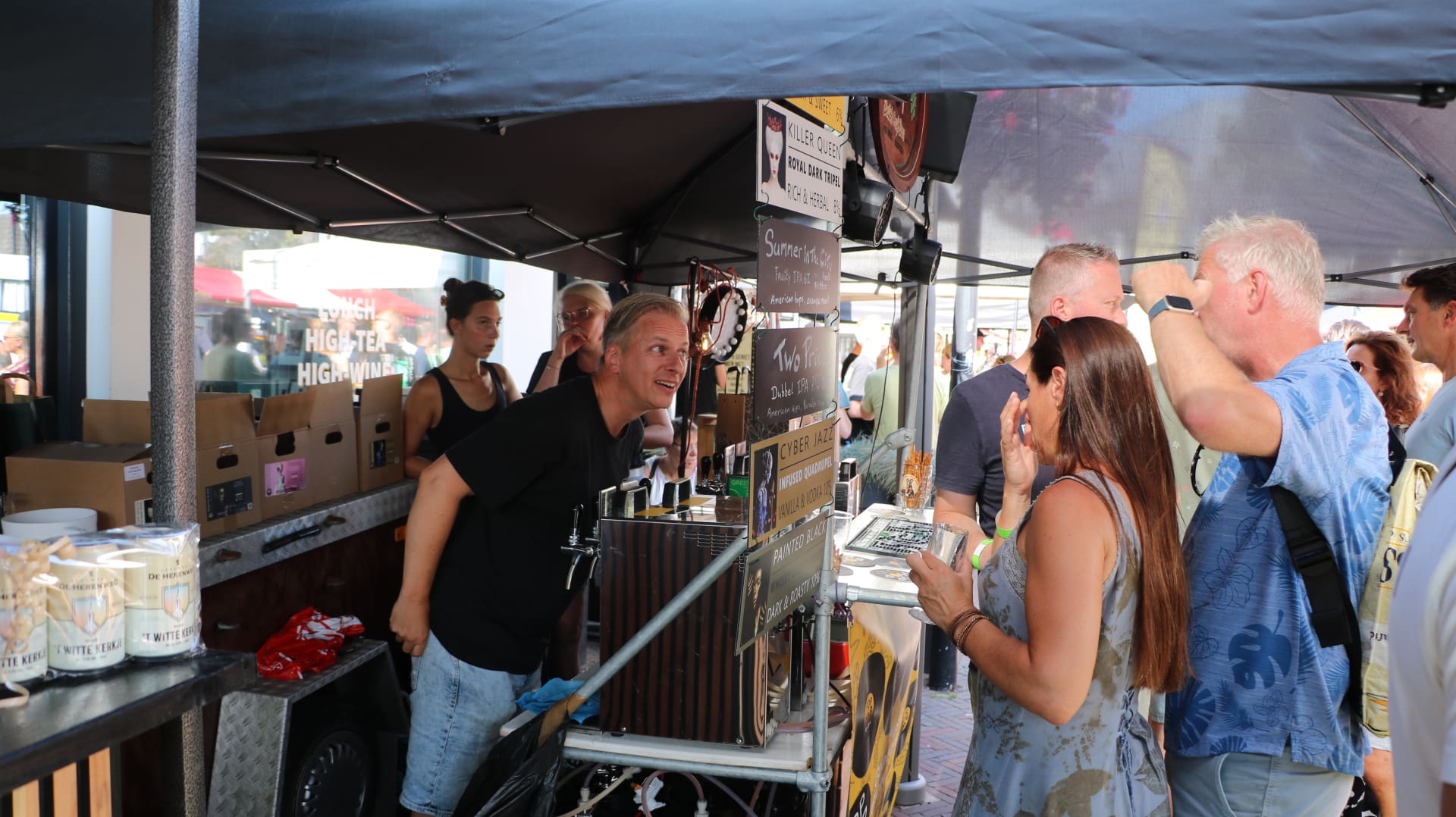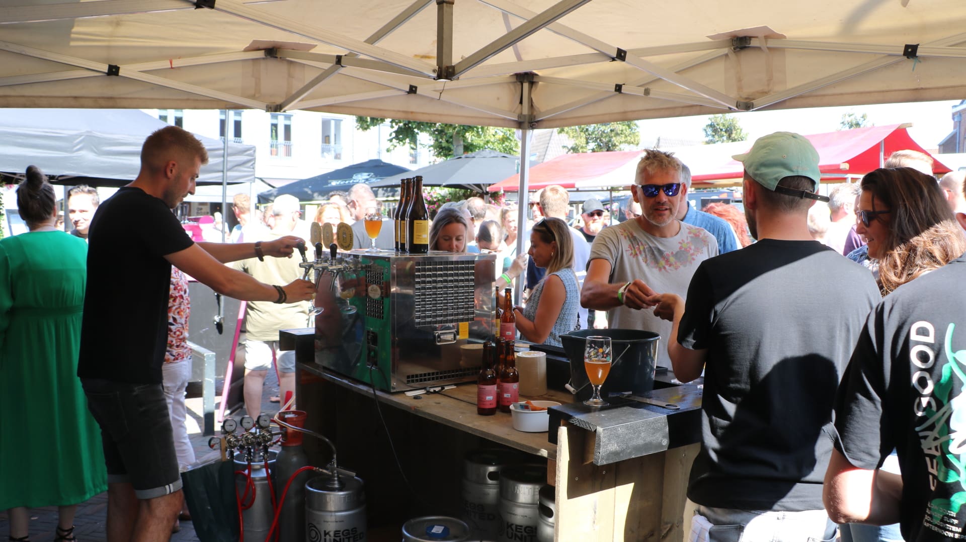 Veertien brouwers uit Nederland en België presenteerden meer dan 75 door hen gebrouwen speciaalbieren. Die vonden onder zomerse omstandigheden gretig aftrek bij de liefhebbers van een goed glas bier. Met een hapje en muziek erbij, zat de sfeer er snel in.