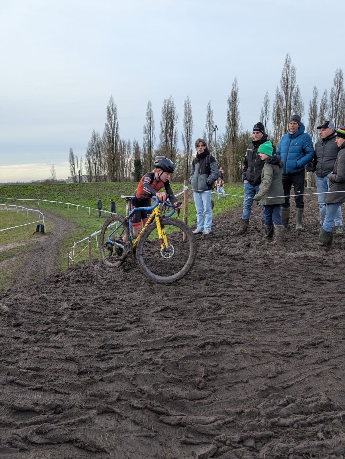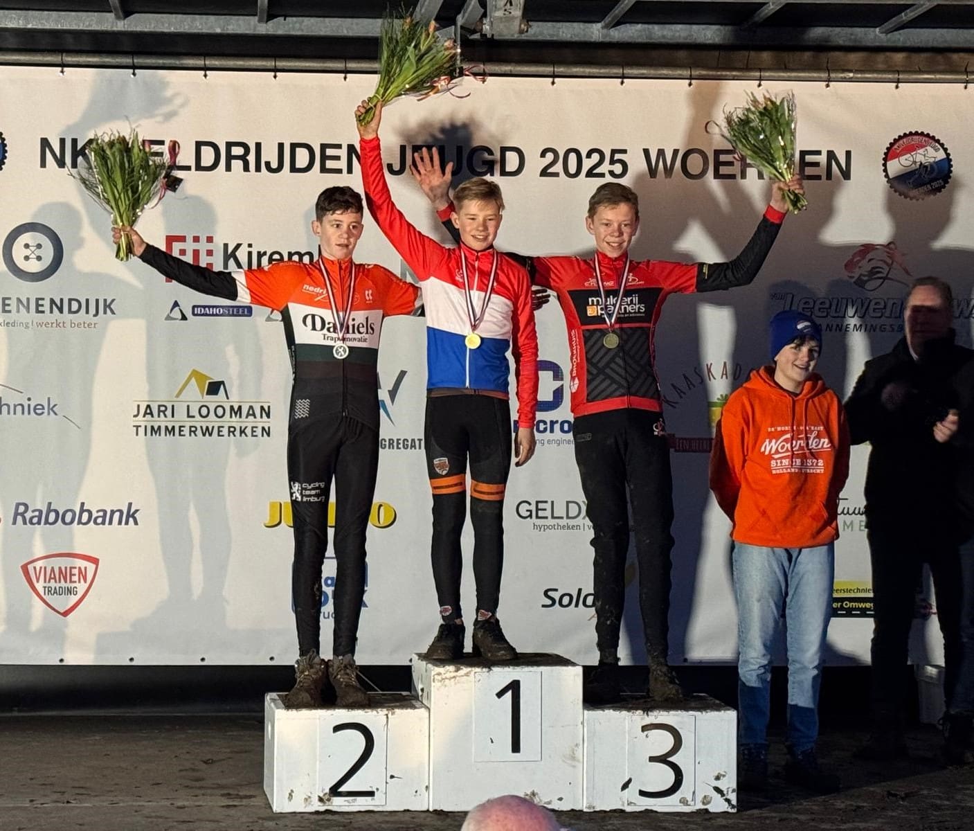 Noordwijkerhout – Xavi Hachmang uit Noordwijkerhout heeft zich zaterdag tot Nederlands Kampioen Veldrijden voor jongens onder 13 gekroond. De veldrijder reed in Woerden lang op kop samen met één tegenstander, maar die kwam tot val. Hachmang wist zelf op de fiets te blijven op de modderige baan, waardoor hij voor de derde keer in vier jaar Nederlands Kampioen werd.