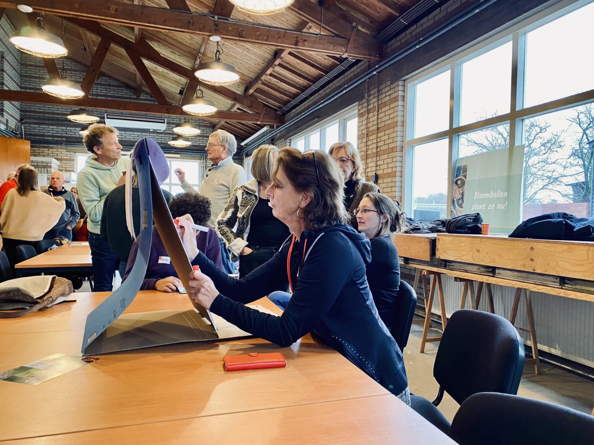 Kort na het middaguur wordt er druk gediscussieerd in de oude bollenschuur van Museum Veldzicht. De aanwezige Noordwijkers zijn opgedeeld in groepjes, die ieder een eigen thema bespreken. Hieruit moet aan het eind van de dag een eigen burgerinitiatief voortvloeien. Energie, biologische bollenteelt en circulariteit vormen de hoofdonderwerpen, deze thema’s kwamen het vaakst naar voren tijdens het vorige beraad in theater De Muze. “Vandaag streven we naar actiepunten, tijdlijnen en concrete doelen voor de bedachte burgerinitiatieven”, licht initiatiefneemster Cynthia Maan toe.
