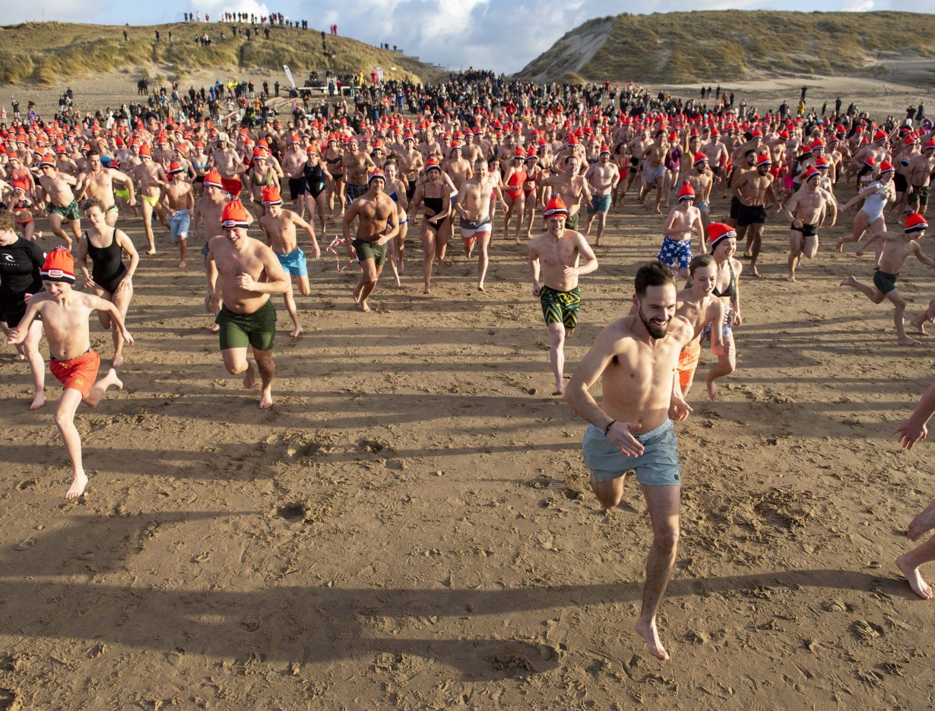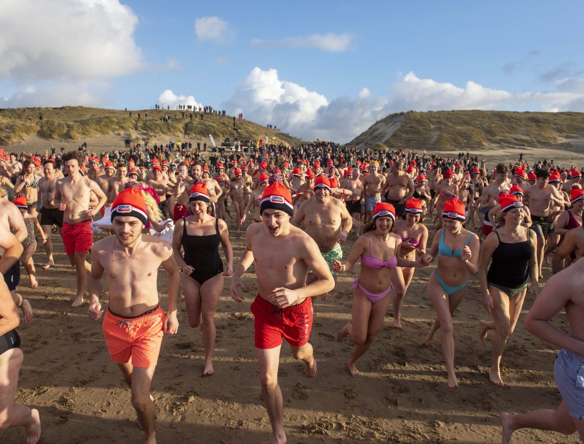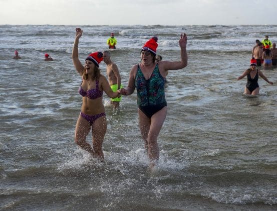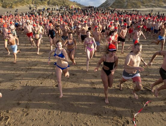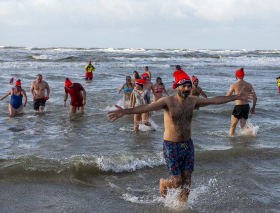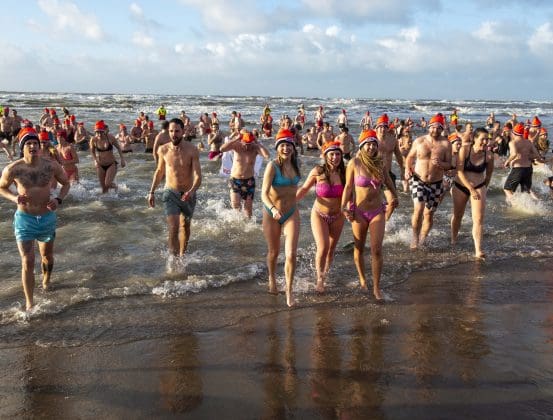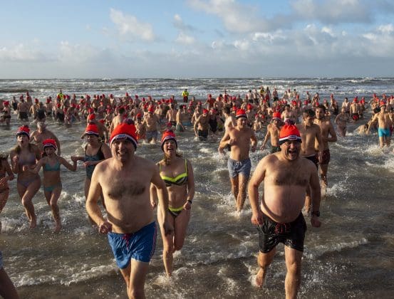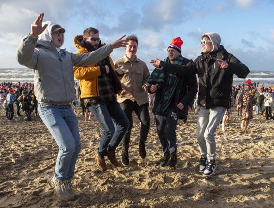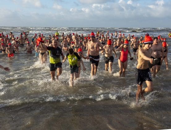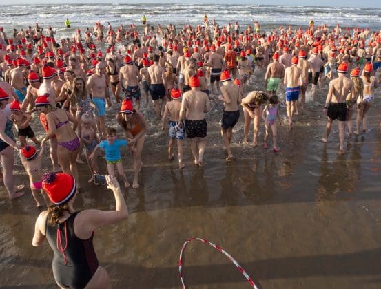 Noordwijk – Je merkt het al aan de file op weg naar Nederzandt aan de Langevelderslag. Ook deze nieuwjaarsduik is populair. Om 15.00 uur kiezen heel veel mensen voor een frisse duik om het nieuwe jaar mee te besluiten. Na afloop staat de koek en zopie klaar.