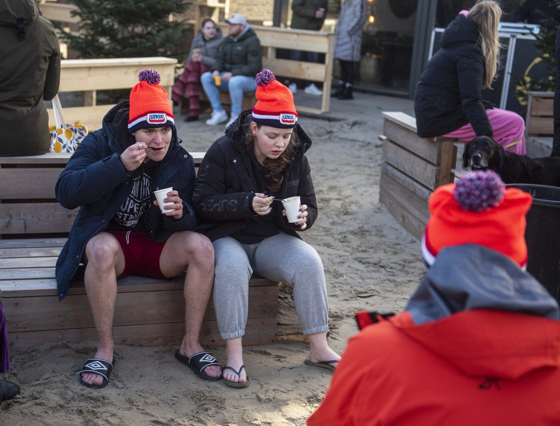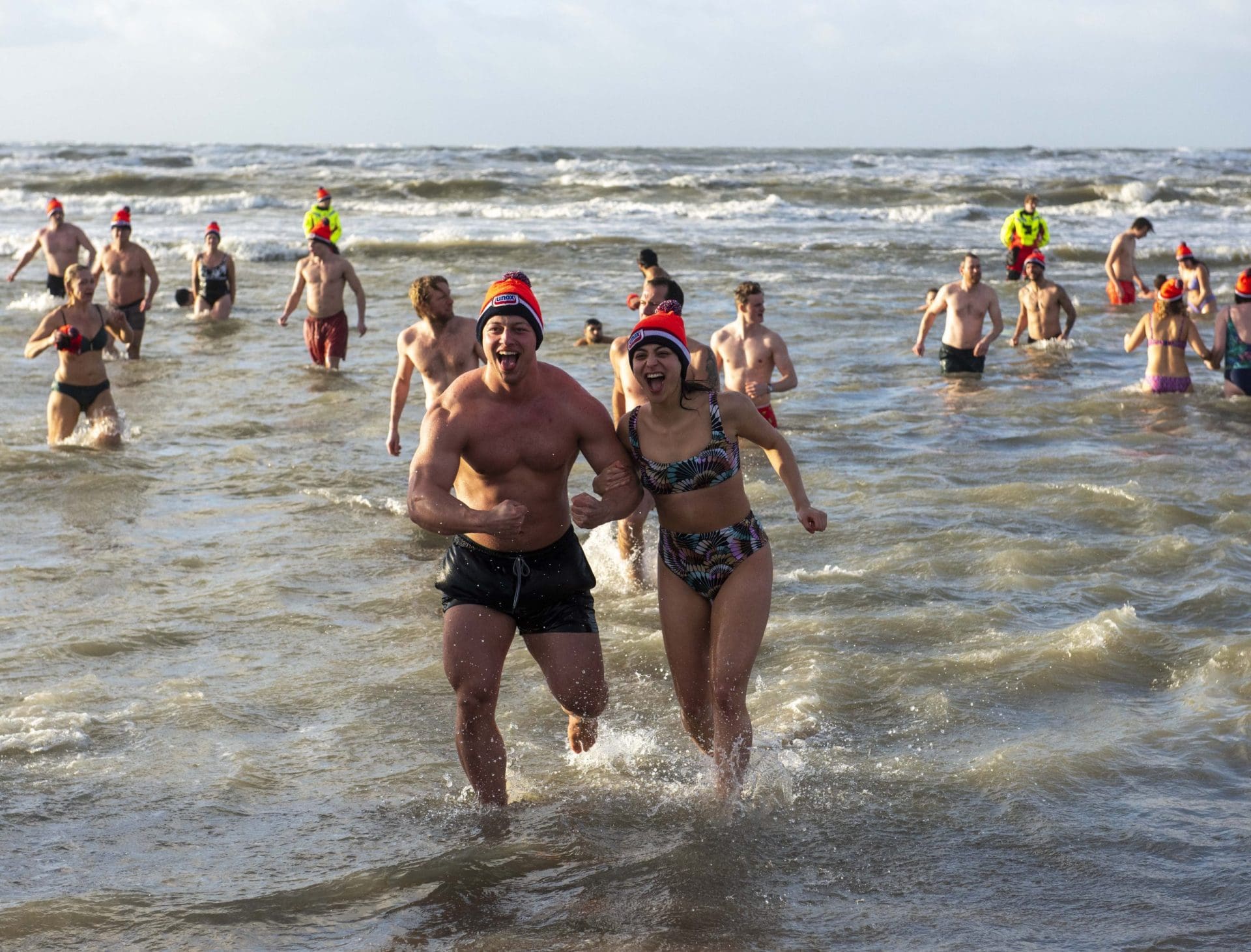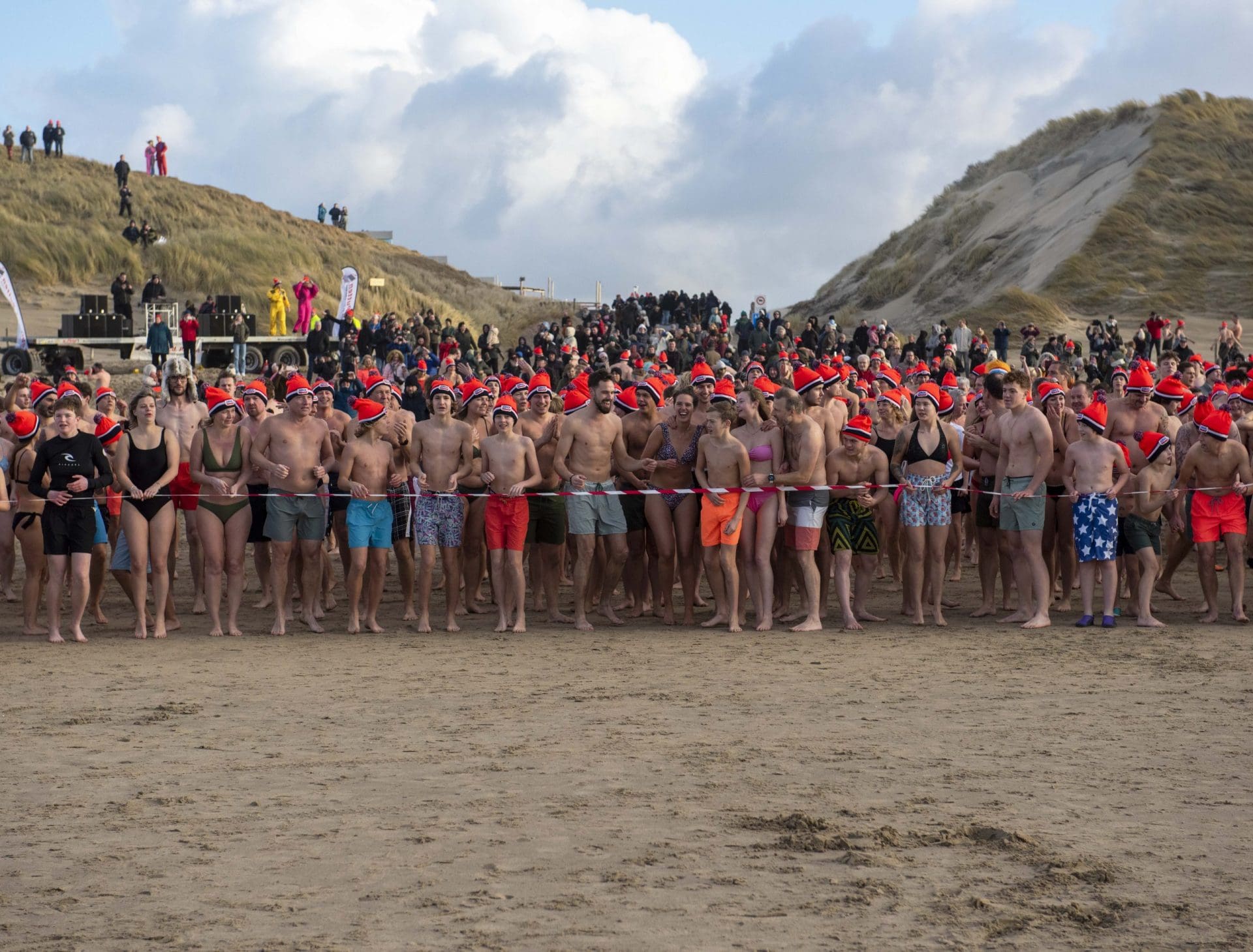 Noordwijk – Je merkt het al aan de file op weg naar Nederzandt aan de Langevelderslag. Ook deze nieuwjaarsduik is populair. Om 15.00 uur kiezen heel veel mensen voor een frisse duik om het nieuwe jaar mee te besluiten. Na afloop staat de koek en zopie klaar.