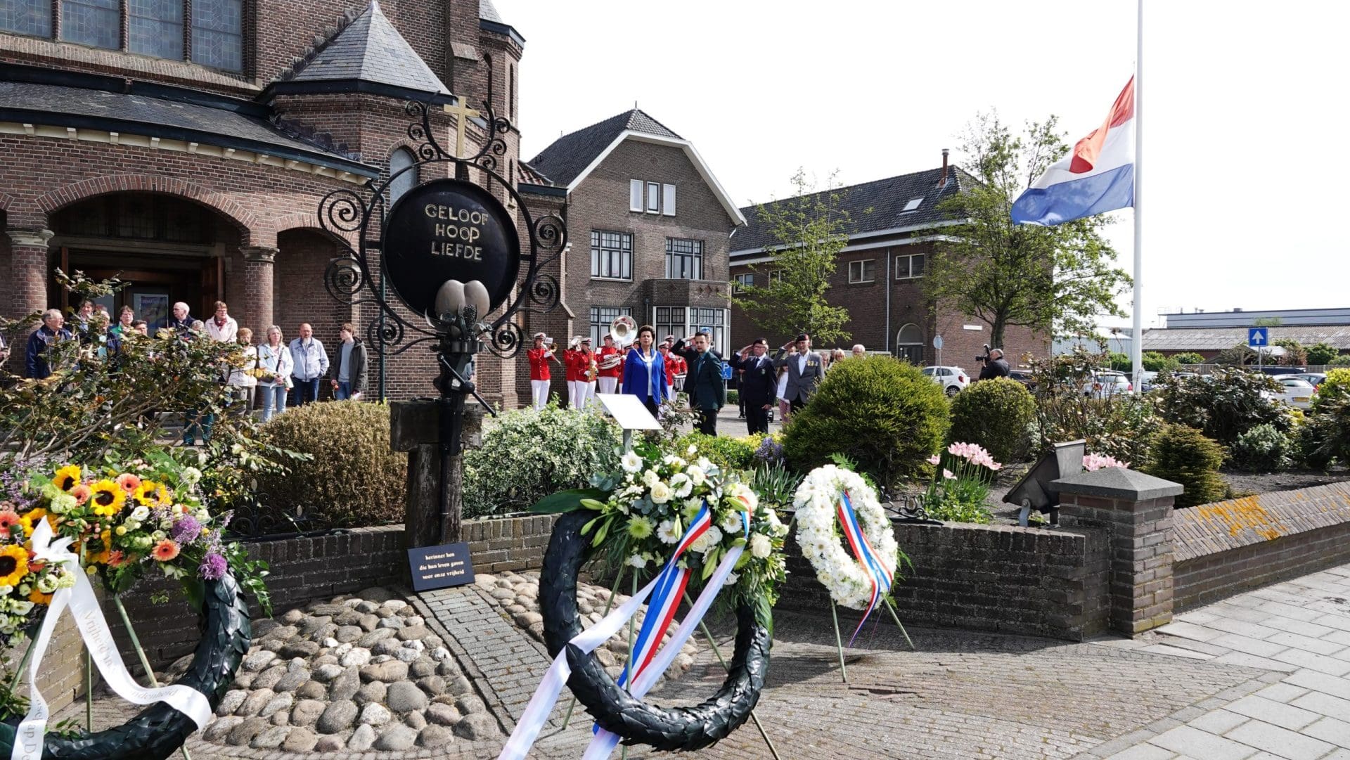 Bij het monument ‘Hoop, Geloof en Liefde’ werden kransen gelegd door de burgemeester en raadslid Max Uphoff namens de gemeente Noordwijk. Noordwijkse veteranen John Wertenbroek, Mat van Vondelen en Jan van Steijn legden een tweede krans. De laatste krans werd gelegd door de heer en mevrouw Ruigrok, begeleid door twee kleinkinderen, namens de Parochiegemeenschap van de Zilk.