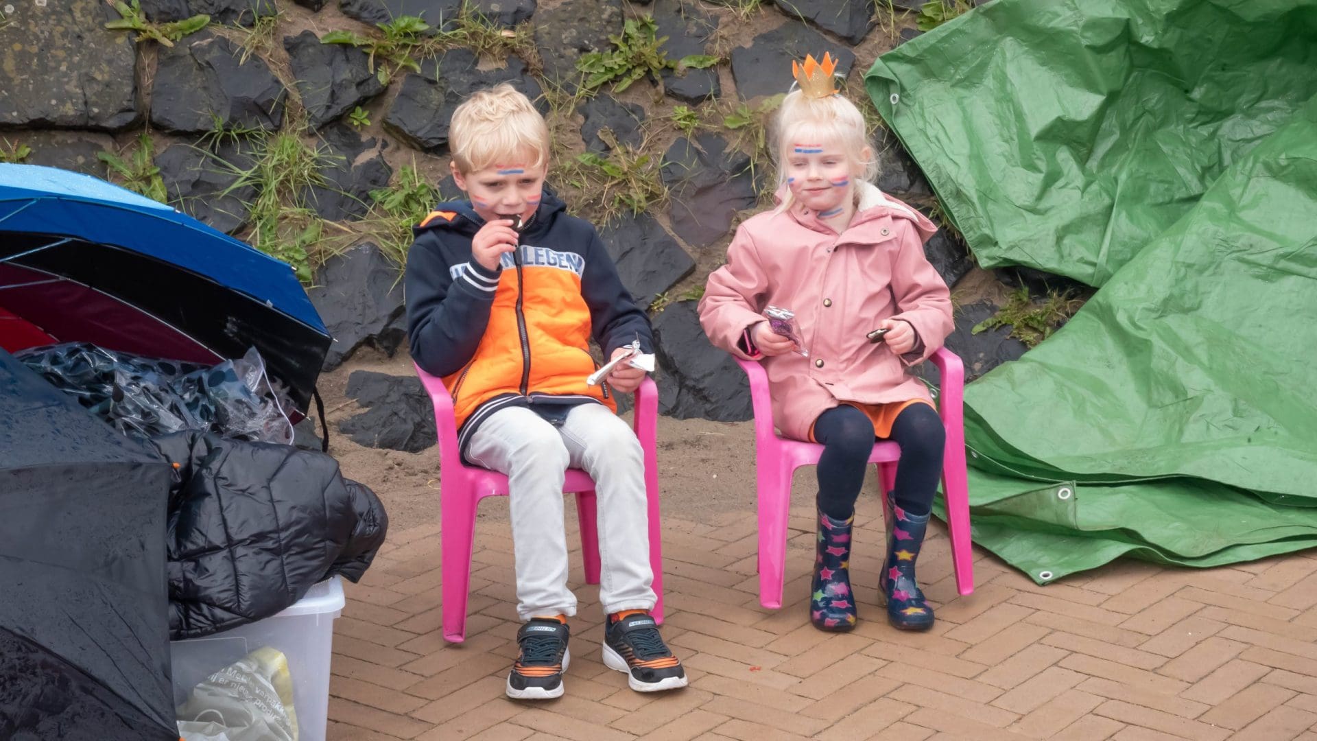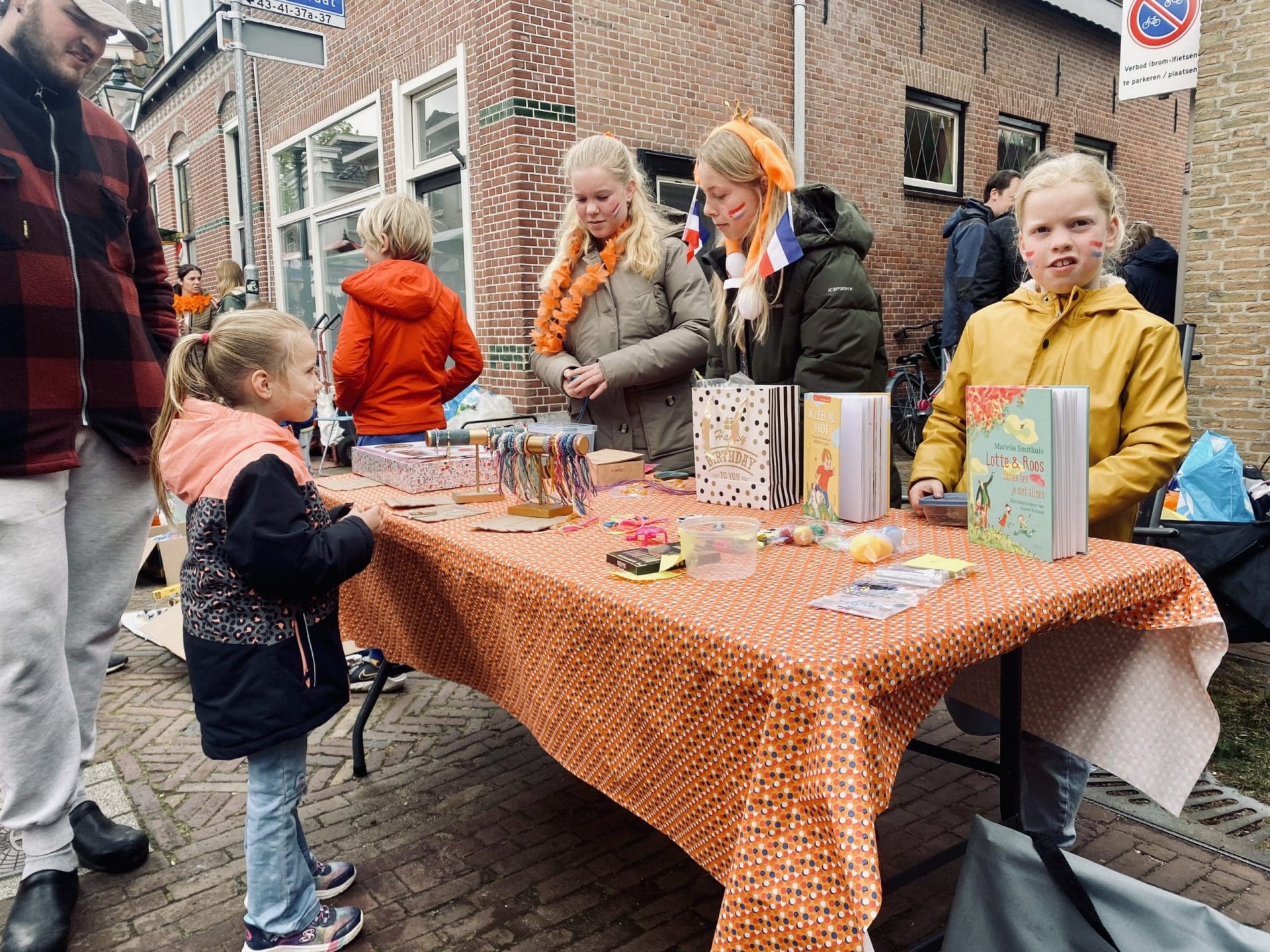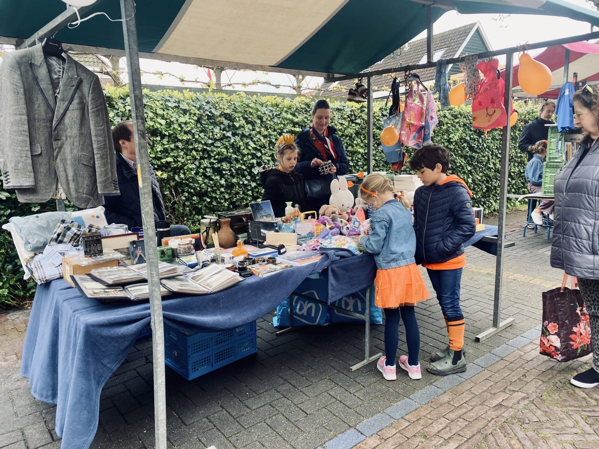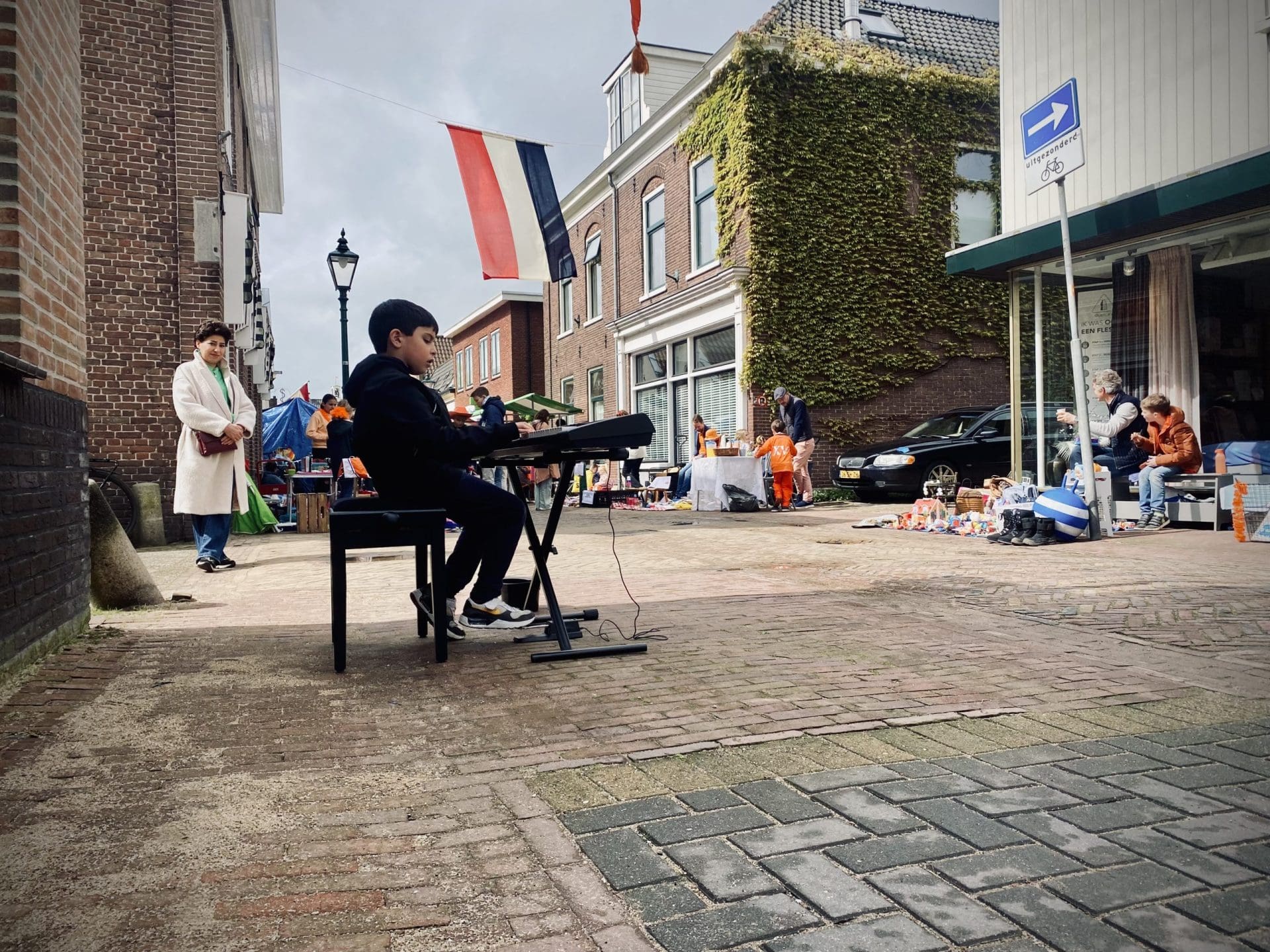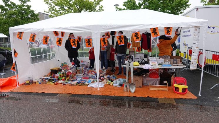 Warmond: Waar de rommelmarkt in Noordwijkerhout ’s morgens in het water valt, schieten de kraampjes in Warmond als paddestoelen uit de grond. De Nederlandse vlag wappert vrolijk in de wind en nu de wolken geen regen meer doorlaten, wordt er volop verkocht. Zelfgebakken cupcakes, oude spelletjes maar ook jong, muzikaal talent doet een poging een extra zakcentje te verdienen op Koningsdag.