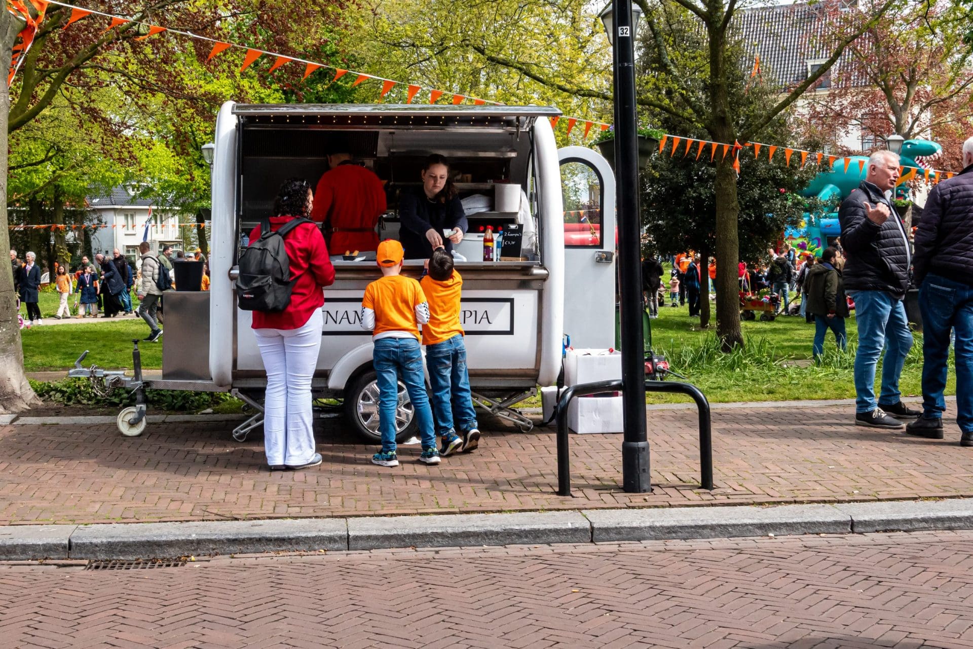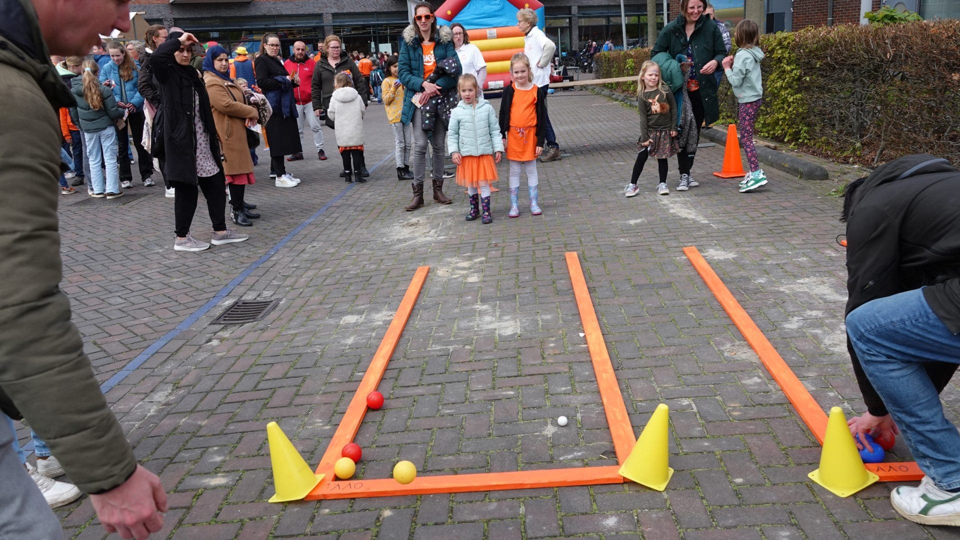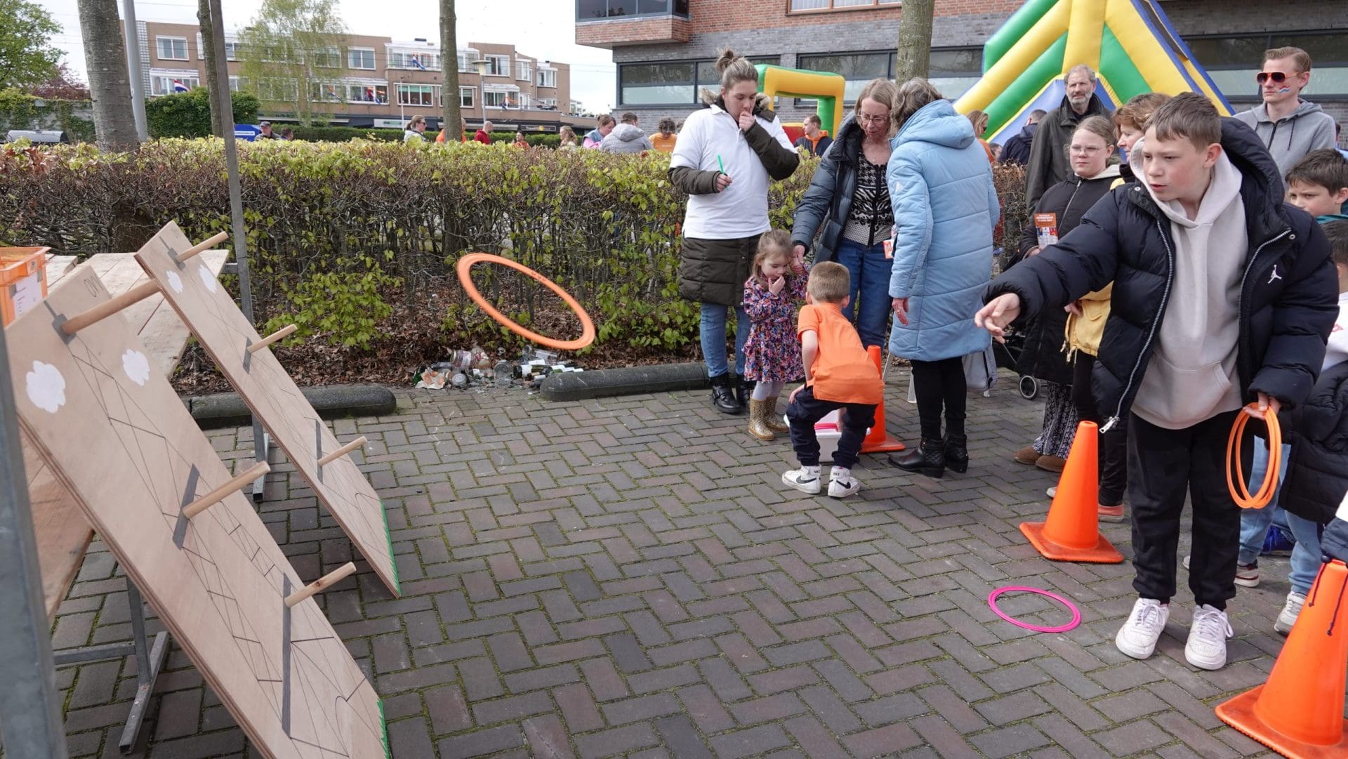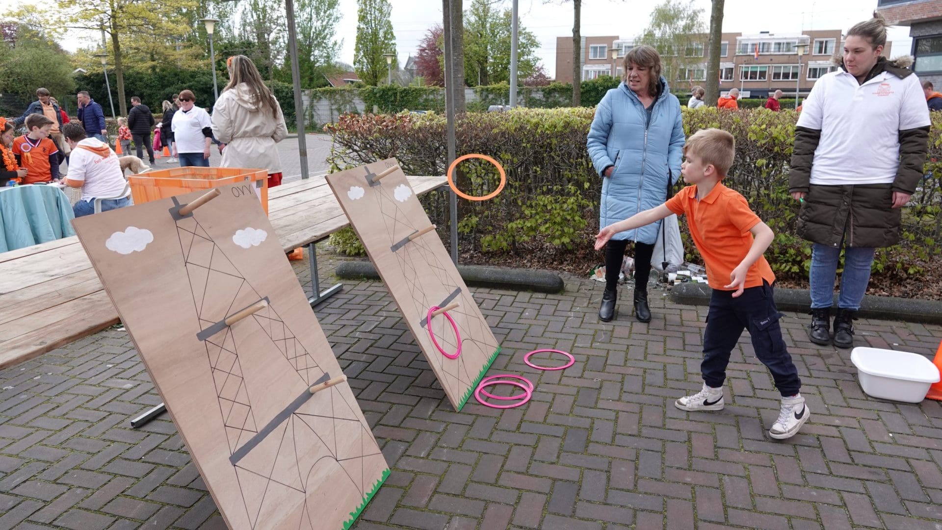 Hillegom: De leden van het Hillegomse oranjecomité stapten, net zoals hun collega’s uit omliggende dorpen, vroeg uit de veren. Het comité geeft ieder jaar een taart aan de vroege vogels die voor 09:00 de vlag aan de voorkant van het huis hangen. In het centrum is ondertussen de Hoftuin voor één dag omgetoverd in een speelparadijs voor kinderen: het voetbalveld, de rodeo-stier en de stormbaan zijn echte trekpleisters. Burgemeester Arie van Erk reikt tijdens het kinderbloemencorso de medailles uit aan de meest kleurrijke fietsen van de kleintjes.