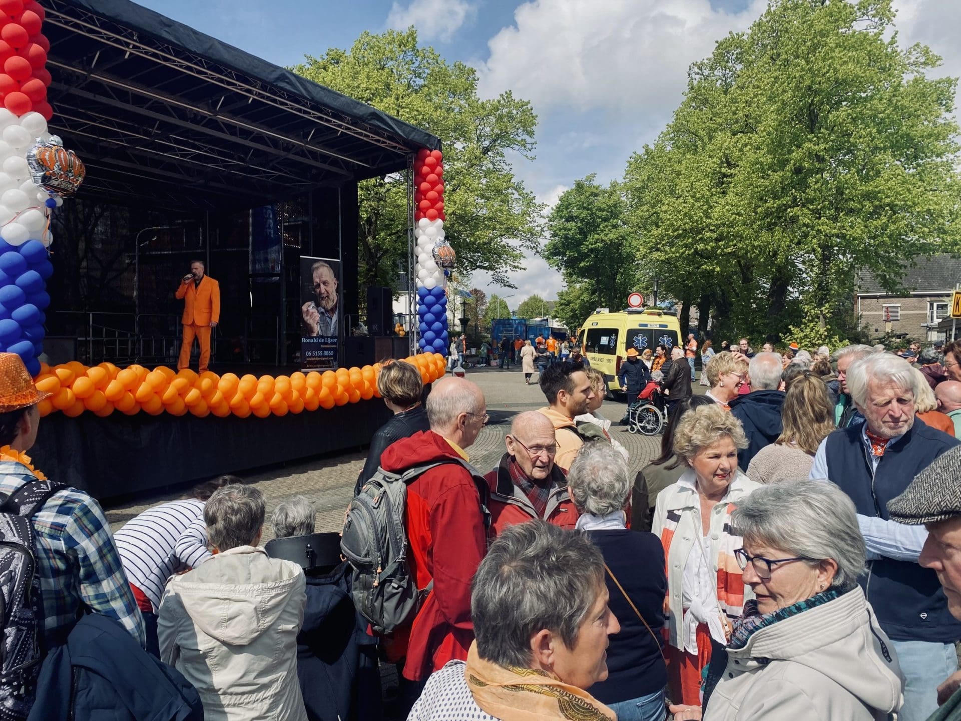 Lisse: Tegenover het Lissese gemeentehuis zet onder andere lokale artiest Ronald de Lijzer, ook wel ‘The walking Jukebox’ genoemd, het dorp op stelten. Met het Wilhelmus en liedjes van Guus Meeuwis, swingt het publiek mee. Op de rommelmarkt wordt druk onderhandeld over prijs en product en vanuit de nostalgische kinderkermis klinkt gejoel van kinderen in de draai-en zweefmolens.