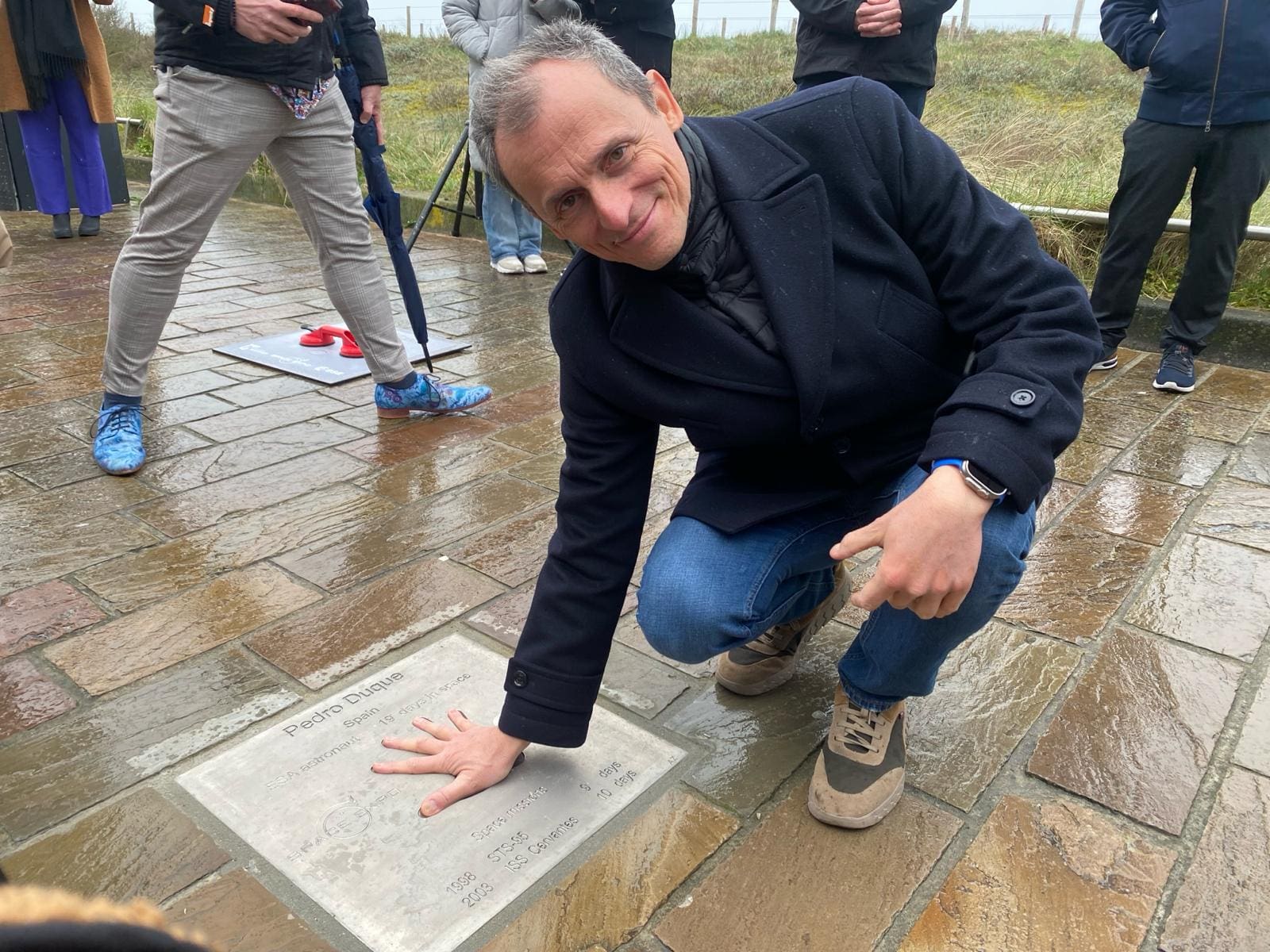 Noordwijk – Op de Koningin Wilhelmina Boulevard in Noordwijk is vrijdag de vijftiende tegel van de Walk of Space onthuld. De Spaanse Pedro Duque is de vijftiende astronaut die zijn afdruk heeft vereeuwigd in de boulevard van Noordwijk. Zijn handafdruk staat symbool voor ‘a hand to reach out to the people’.